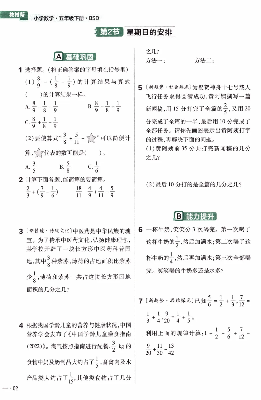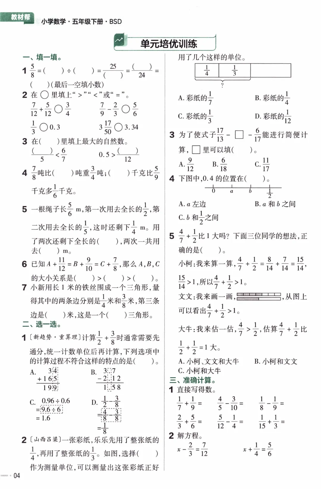 26年春北师大版数学五年级下《课本同步练习·一课一练》基础练习(附答案)高清完整电子版可打印