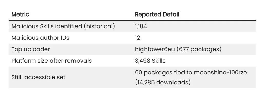 社区曝光了代号为 ClawHavoc 的 Skill 供应链投毒案例:恶意技能伪装成实用工具,内嵌后门与数据外泄逻辑,借助伪造热度进入热门列表,并在短时间内触发异常执行。