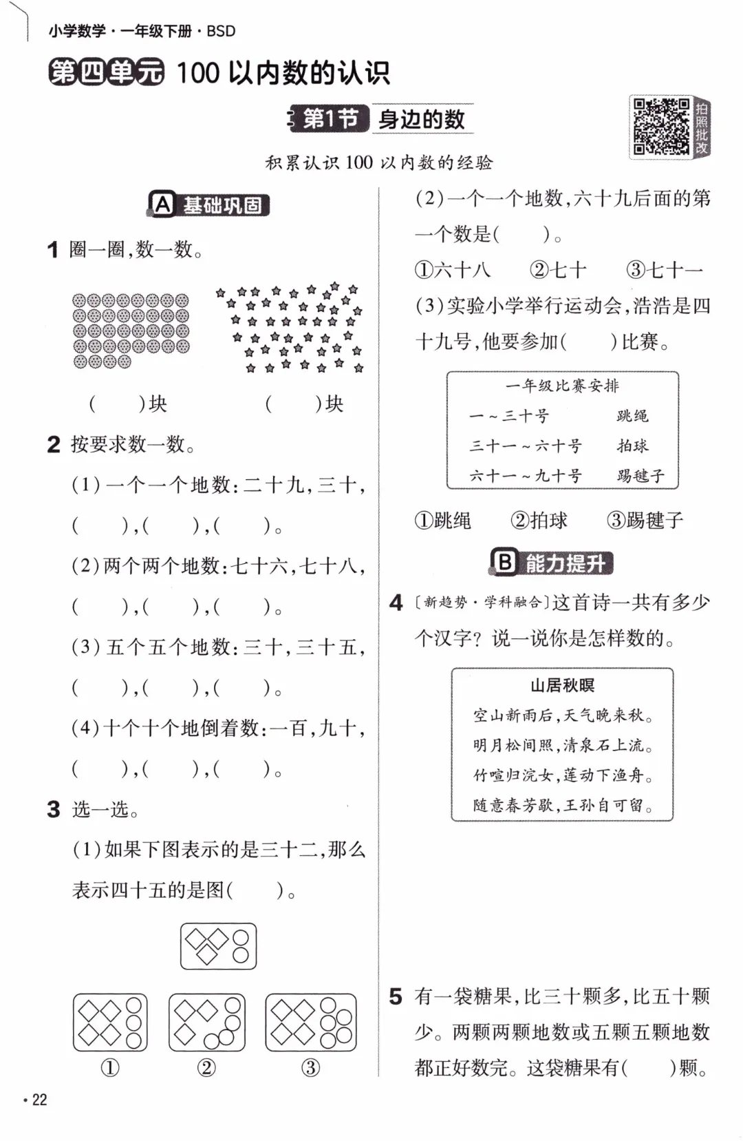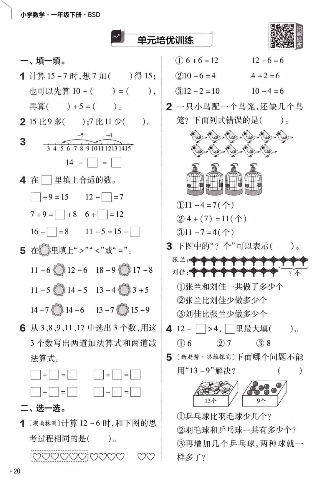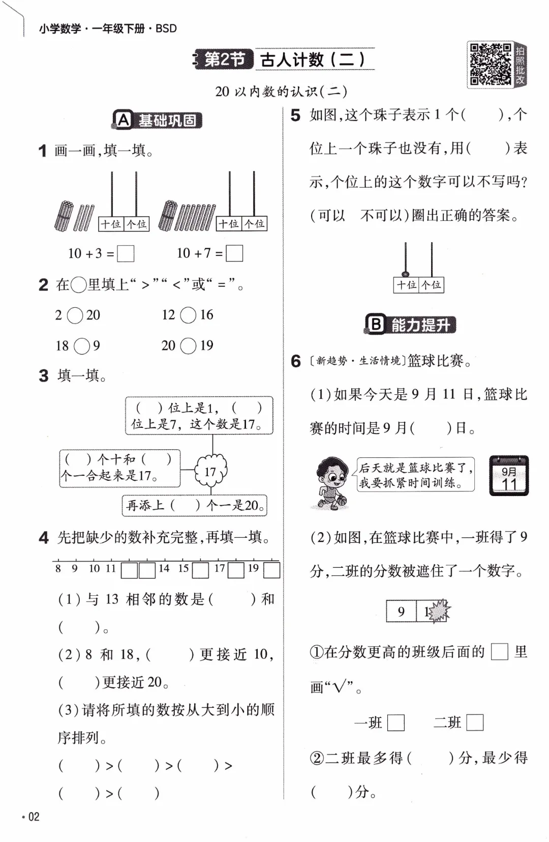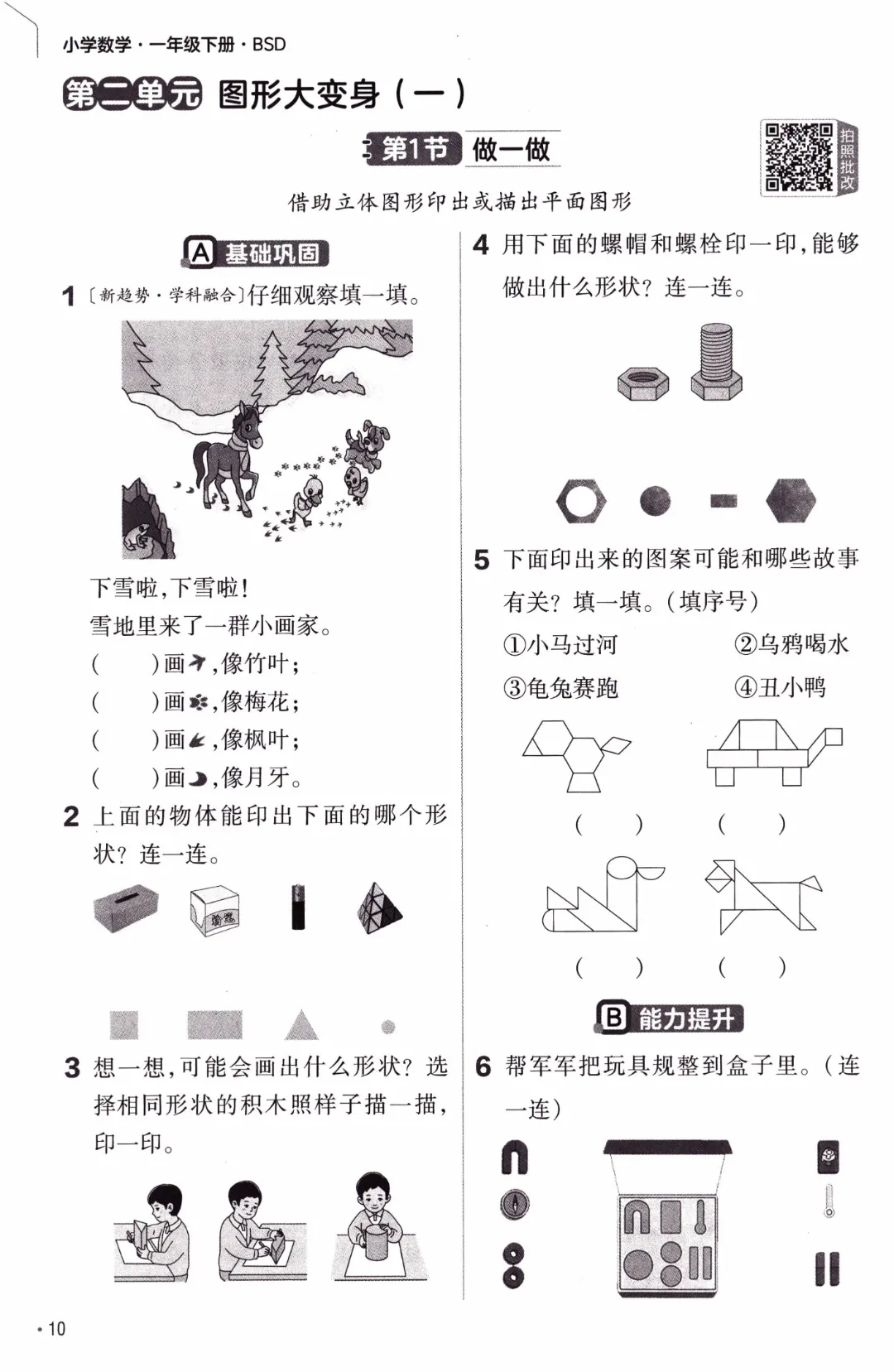 26年春北师大版数学一年级下《课本同步练习·一课一练》基础练习(附答案)高清完整电子版可打印