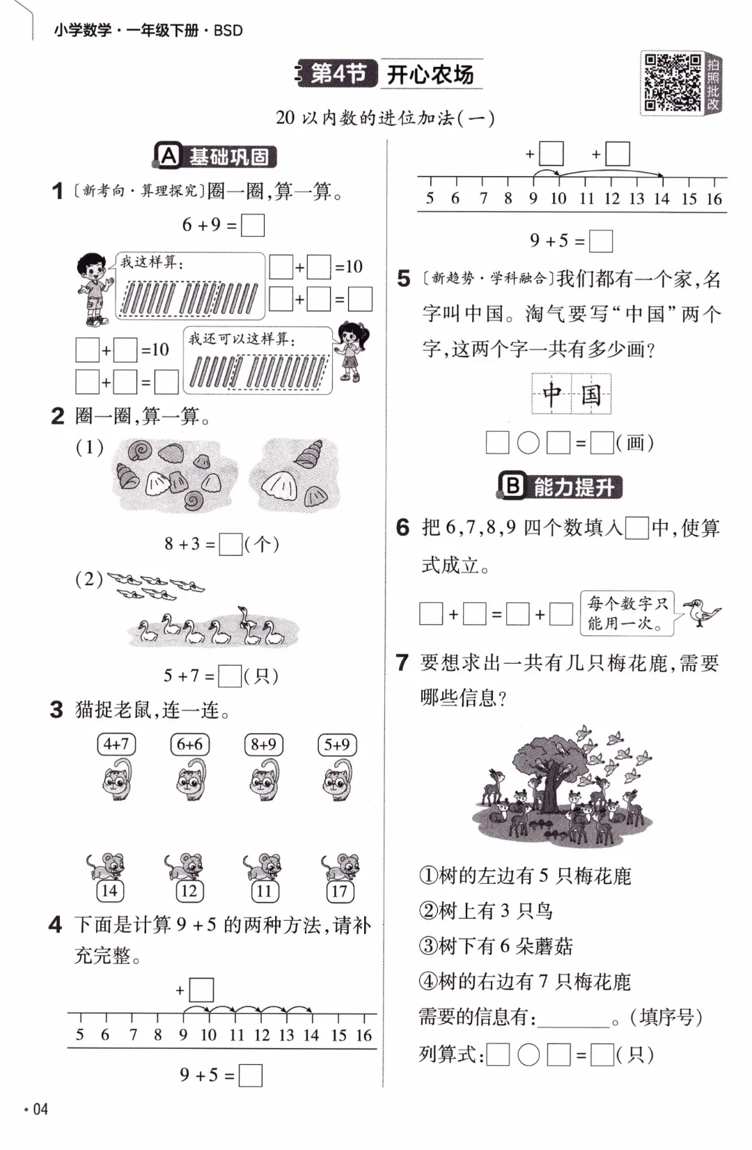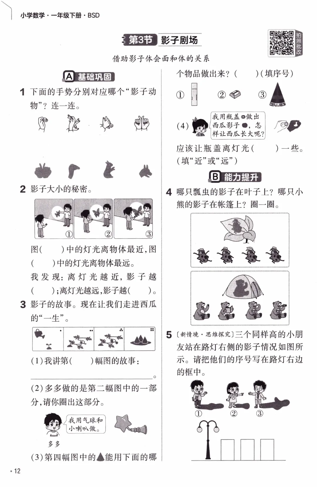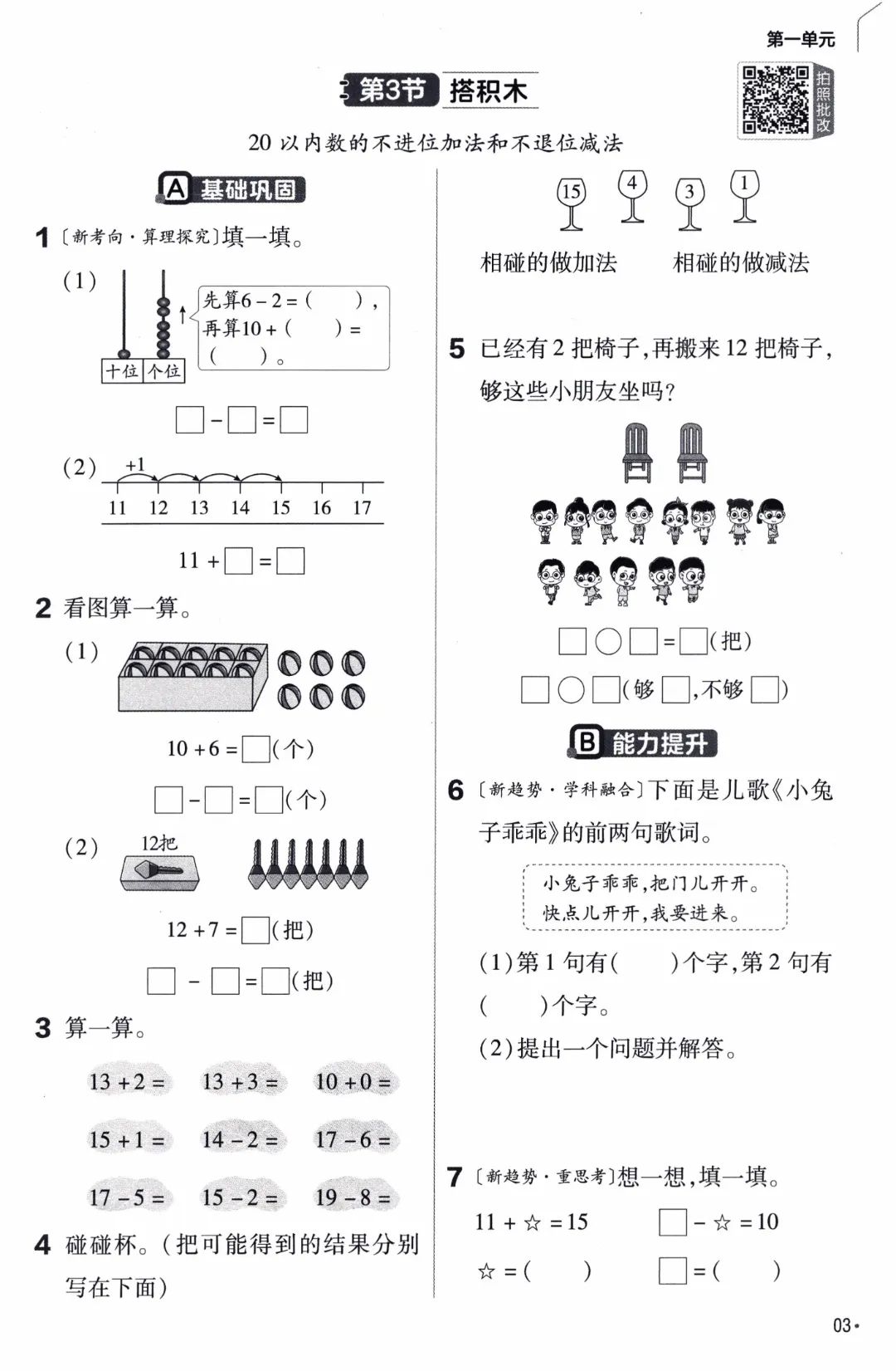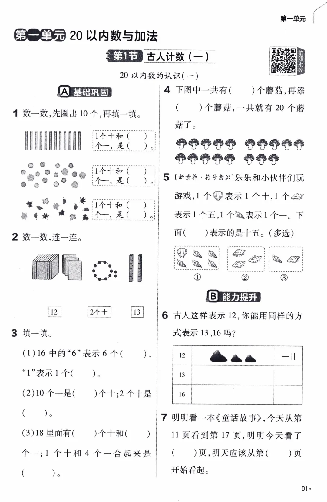 26年春北师大版数学一年级下《课本同步练习·一课一练》基础练习(附答案)高清完整电子版可打印