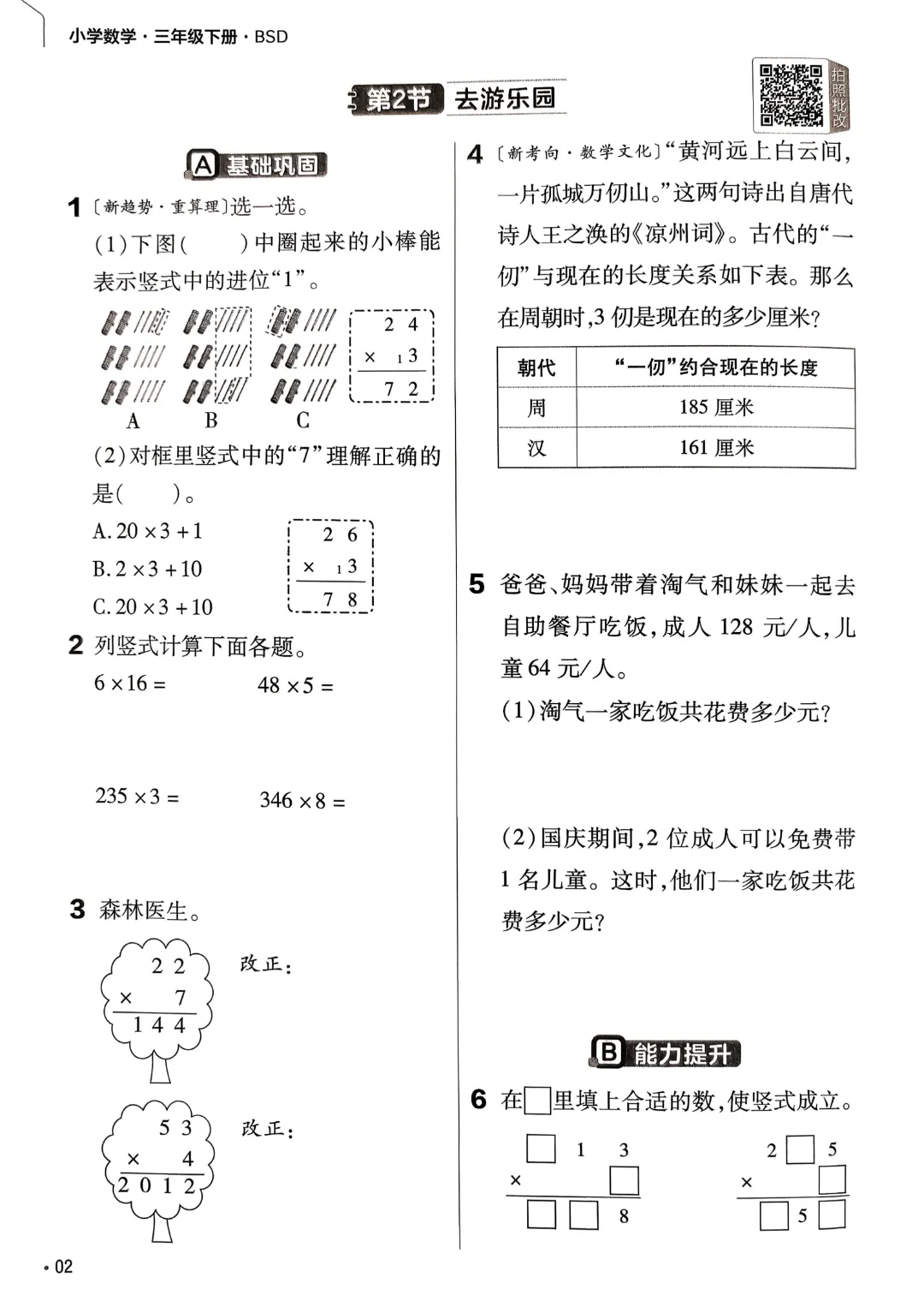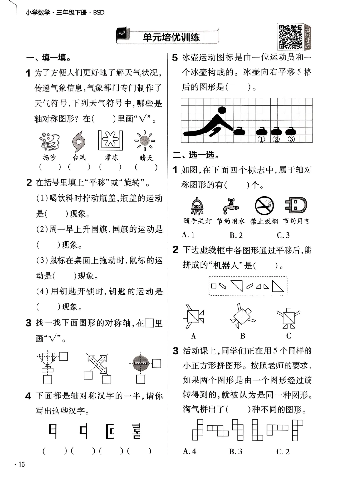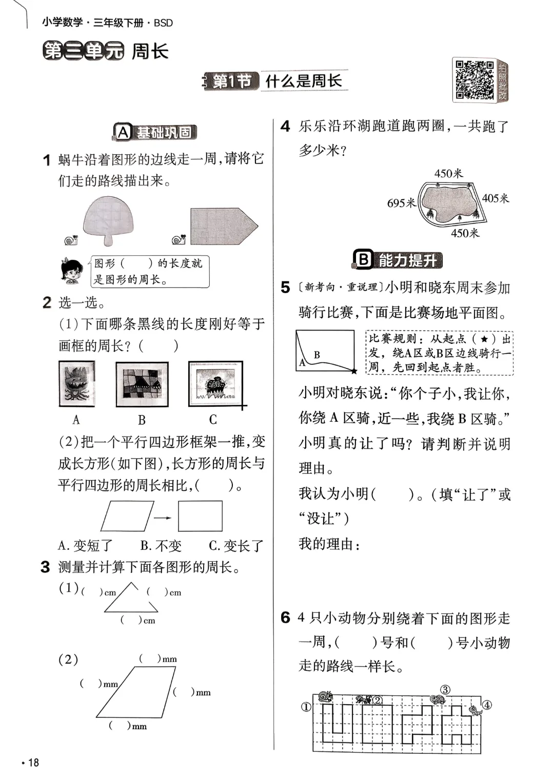 26年春北师大版数学三年级下《课本同步练习·一课一练》基础练习(附答案)高清完整电子版可打印