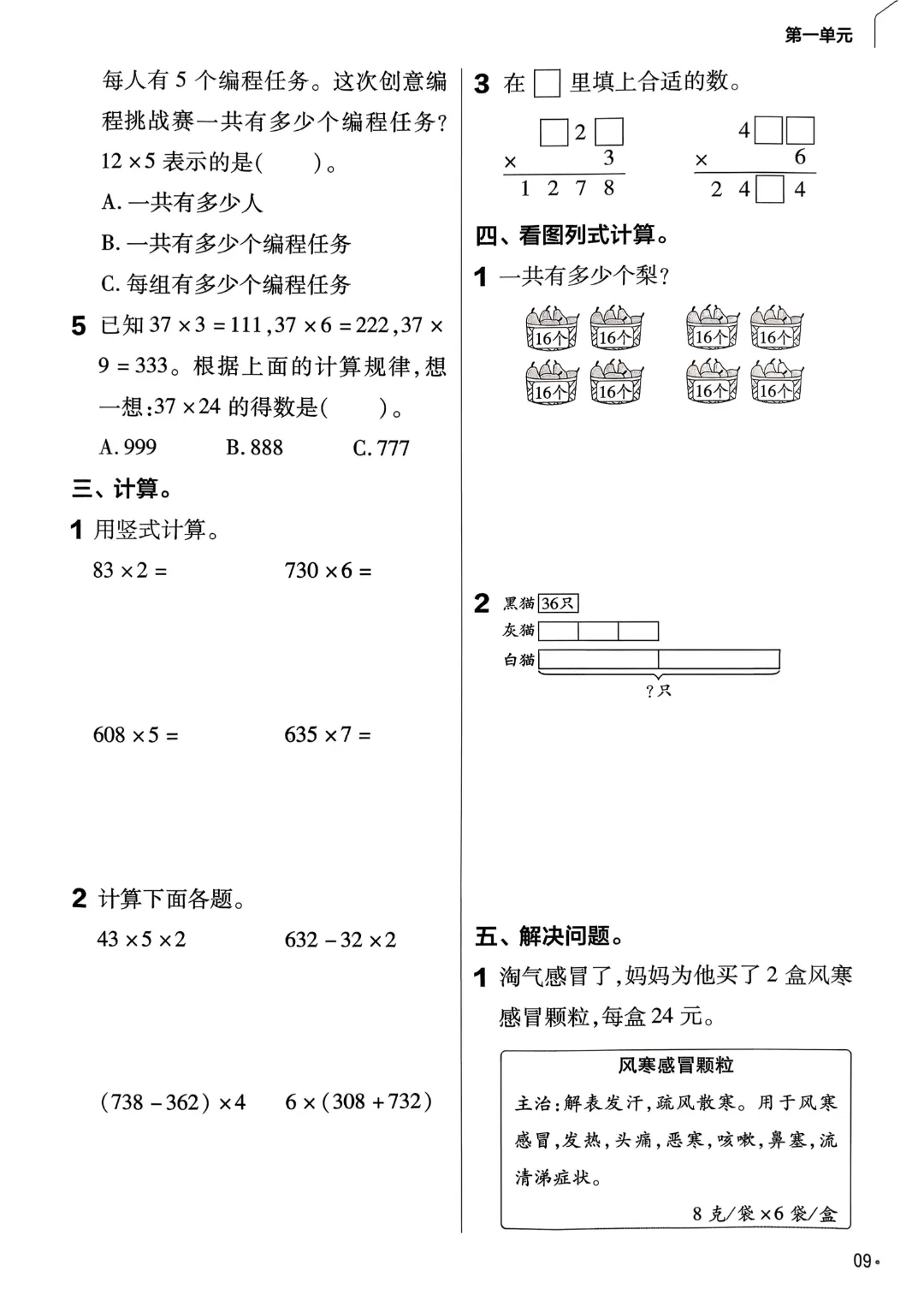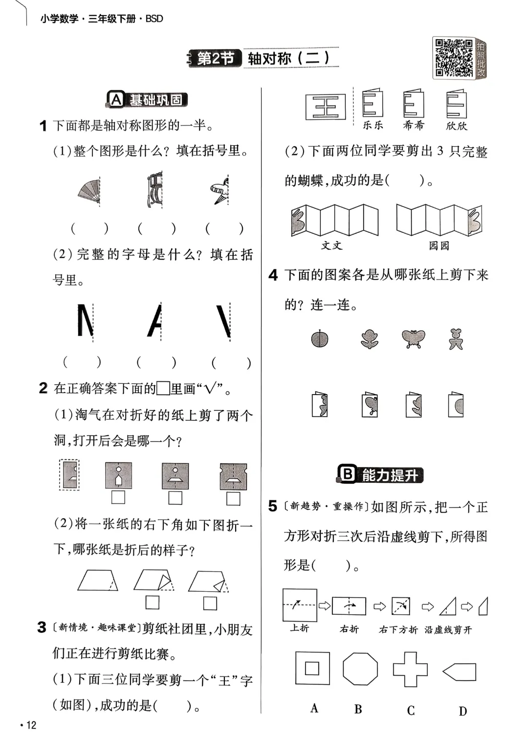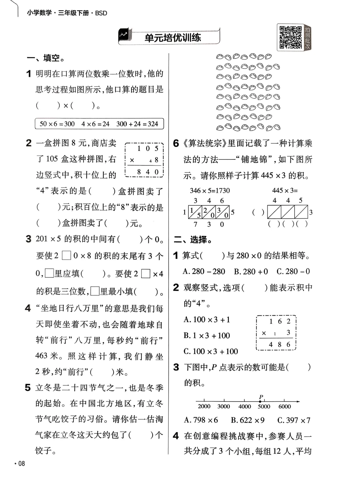 26年春北师大版数学三年级下《课本同步练习·一课一练》基础练习(附答案)高清完整电子版可打印
