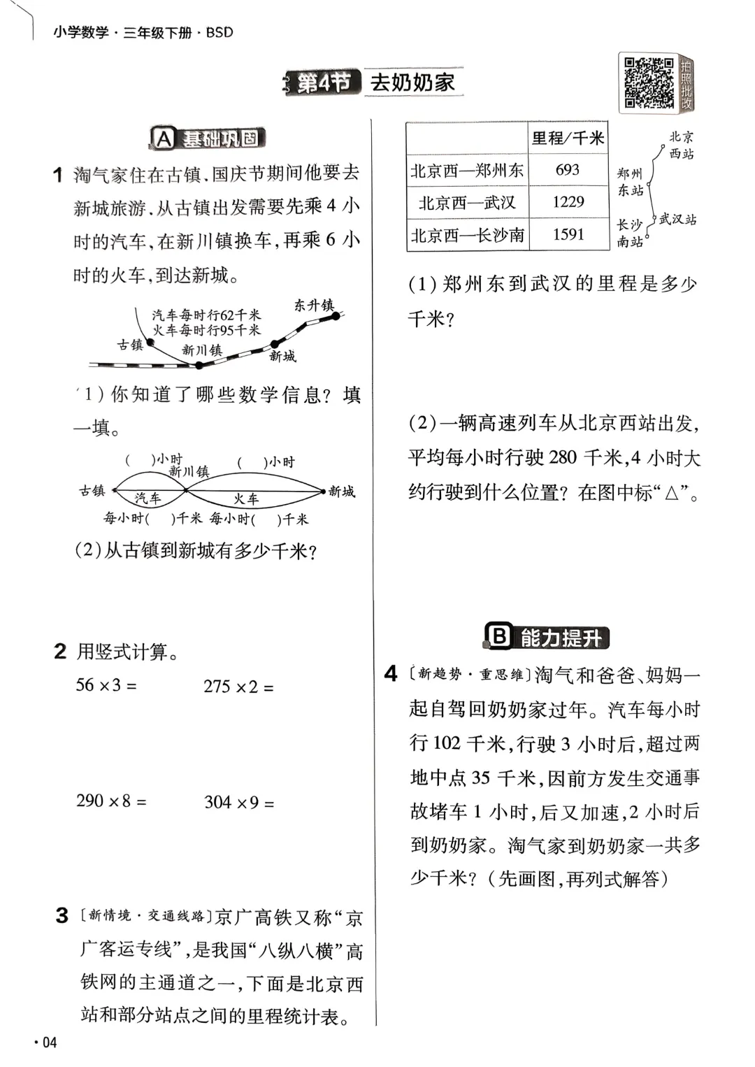 26年春北师大版数学三年级下《课本同步练习·一课一练》基础练习(附答案)高清完整可打印