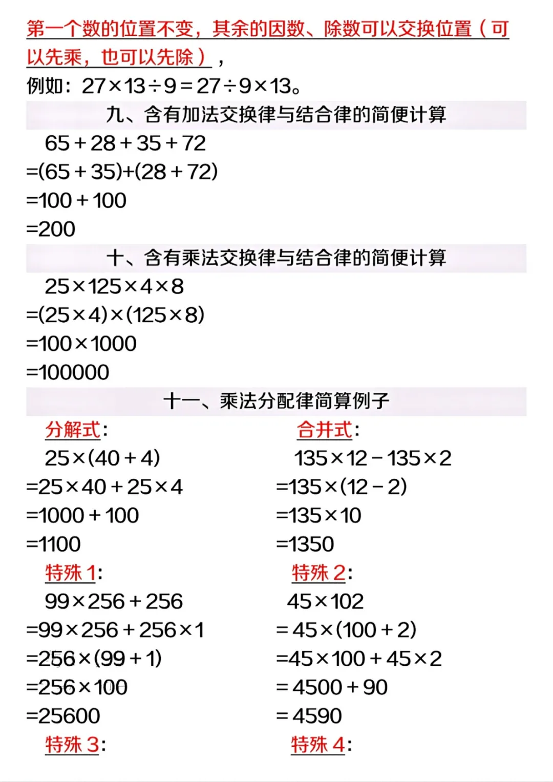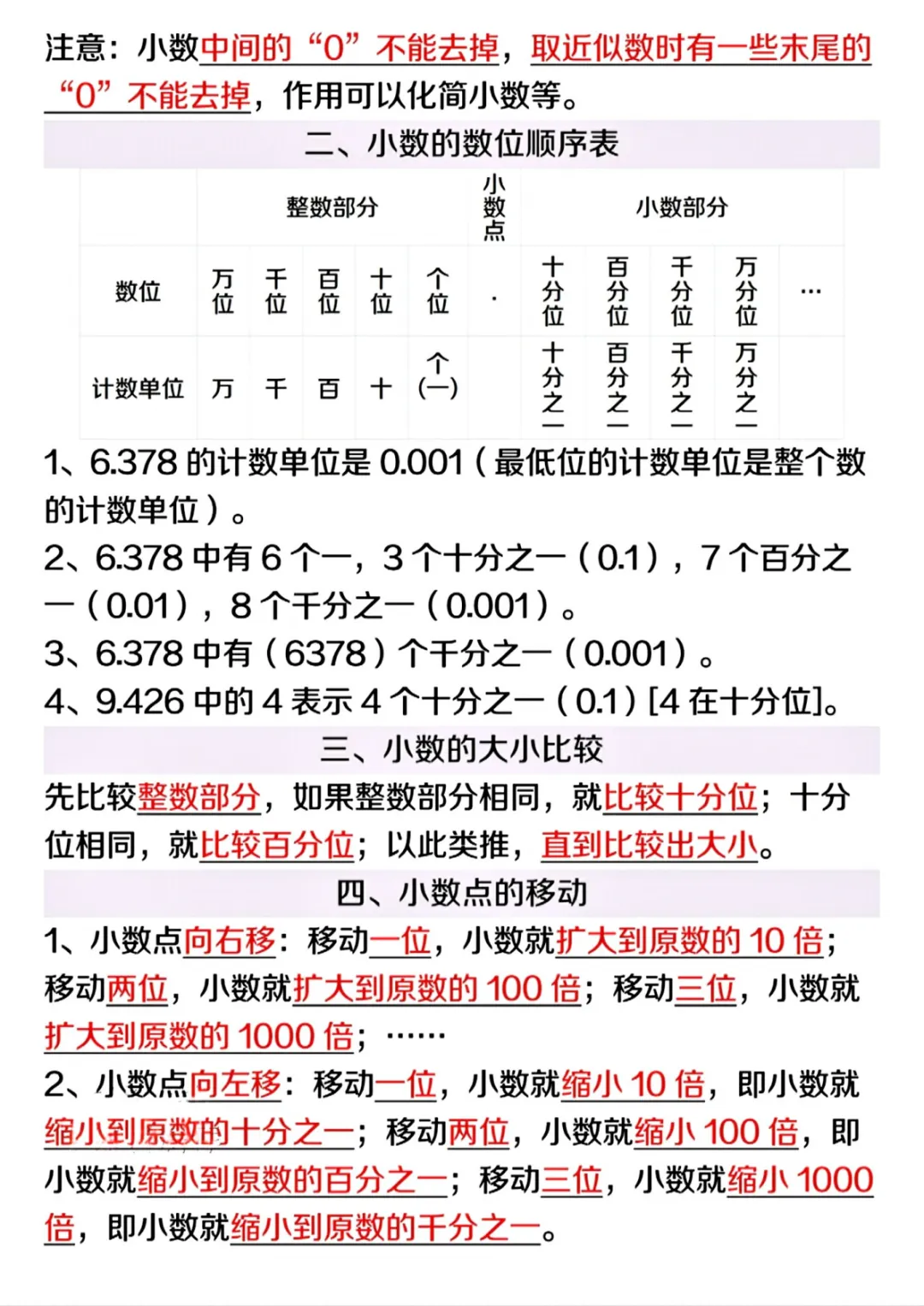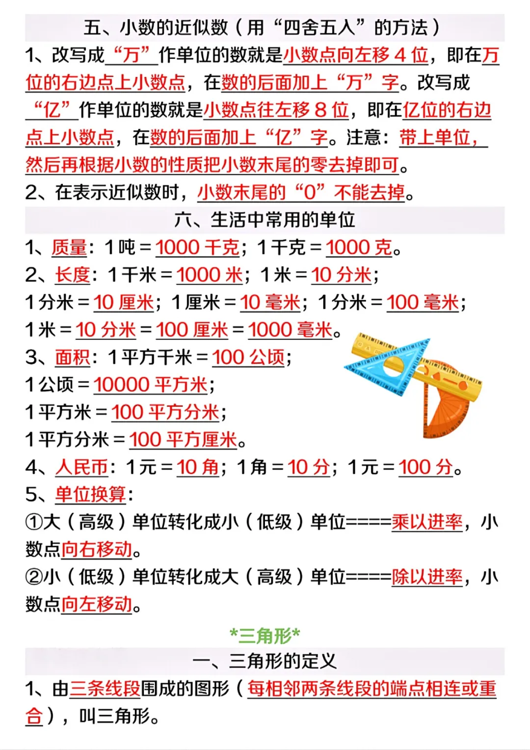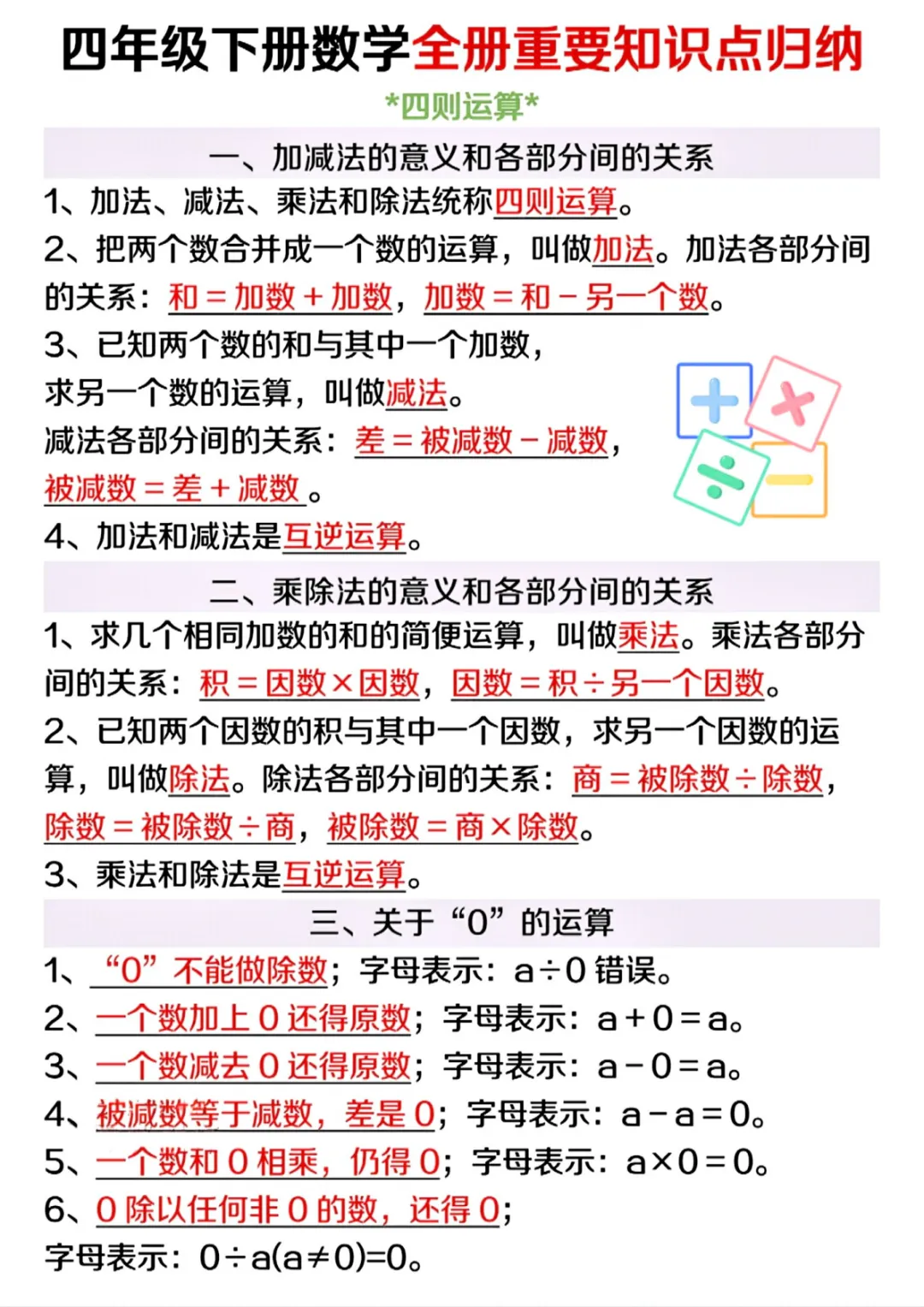 今日分享四年级数学下册全册重要知识点归纳;有完整电子版可打印!下滑到文末有领取方式🌹
