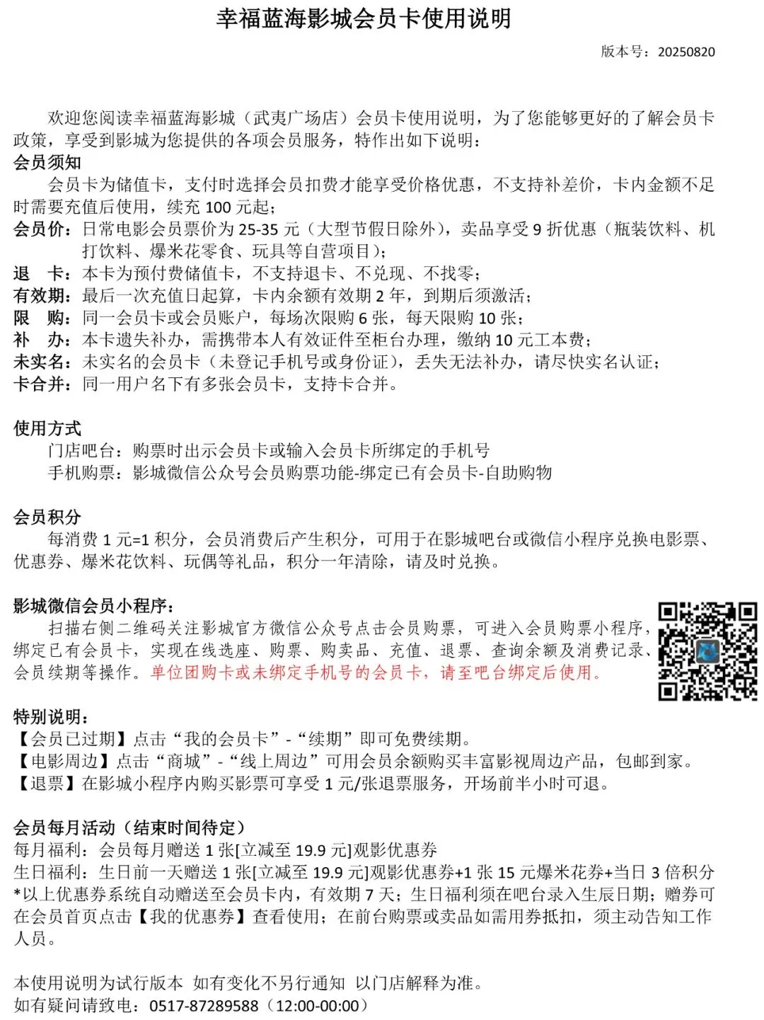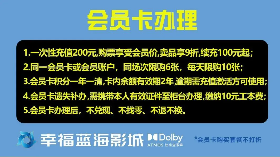 【会员卡】幸福蓝海影城会员卡使用说明