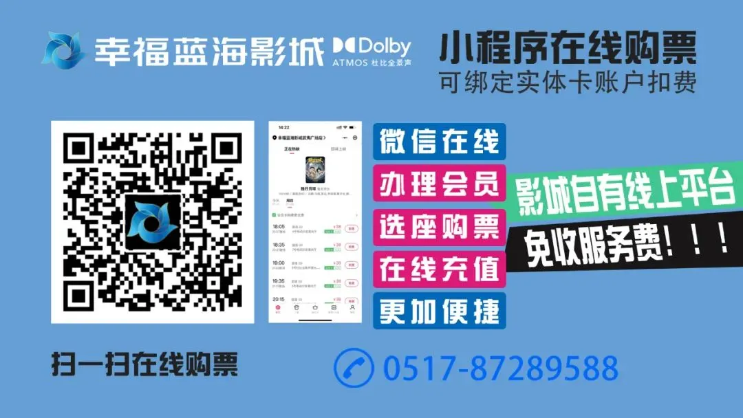1、购票时选择资质和购票规则透明的平台购票,首选影城自有平台,防止钱财损失。2、第三方平台票款由该平台收取,退改签亦会收取手续费,敬请知悉。3、因影票及对应的座位具有唯一性、时效性,不满足条件或错过场次将无法为您退款,请谨慎下单。 幸福蓝海影城武夷广场店 2024.2.19