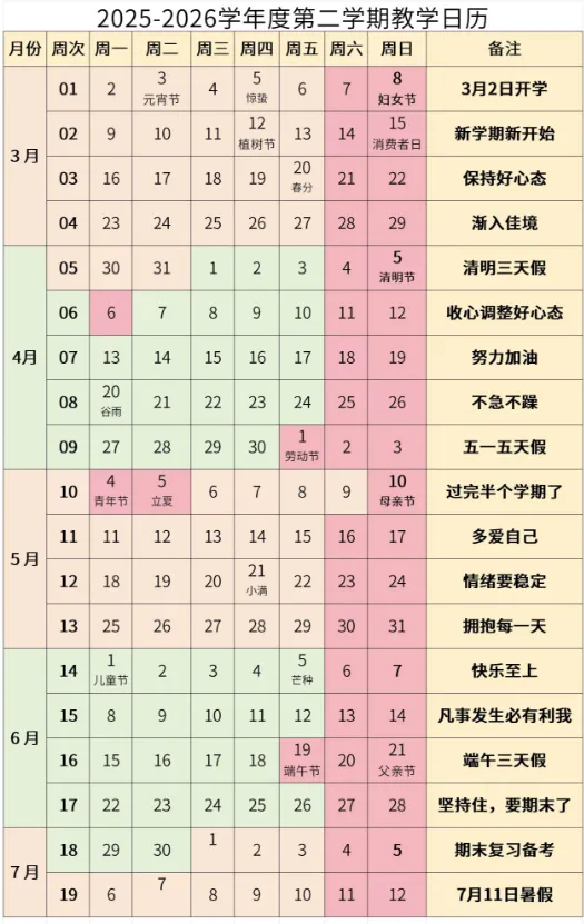 #2026年春期教学日历#2026年教师教学日历以下为部分模板展示