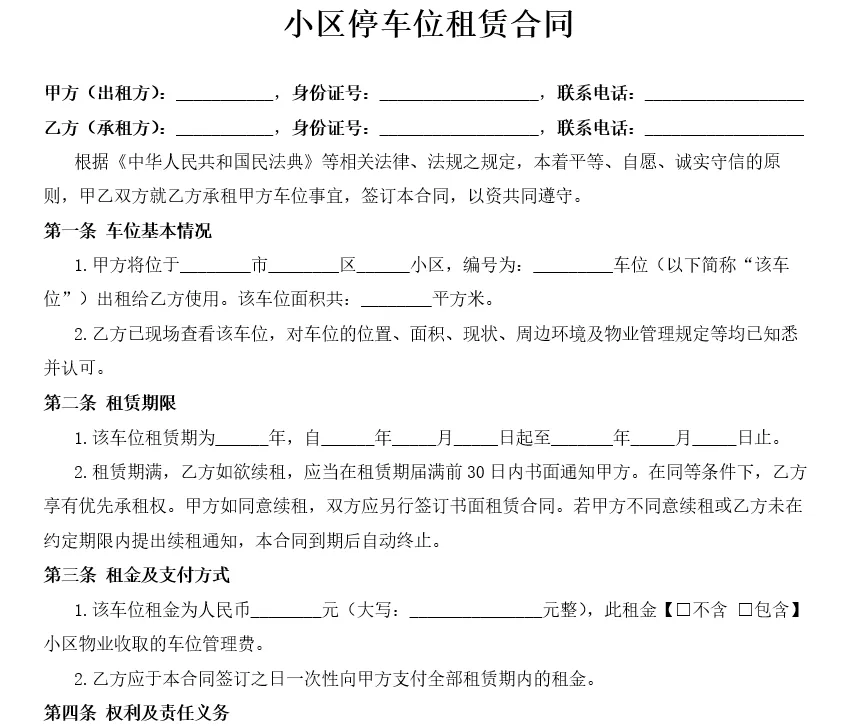 根据《民法典》等相关法律、法规之规定,本着平等、自愿、诚实守信的原则,甲乙双方就乙方承租甲方车位事宜,签订本合同,以资共同遵守。