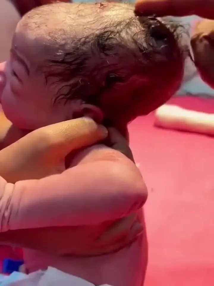 如果.是剖腹.产的宝.宝,头型通.常会.圆润很.多。但顺.产宝.宝这种“被挤扁”的头型,说明他经.历了.一场艰.难的跋.涉,他的.神经.系统和骨.骼系统在.抗压中完.成了第一.次“洗礼”。