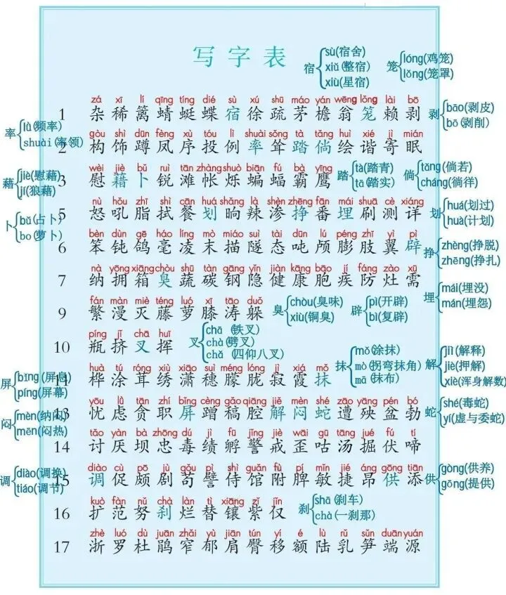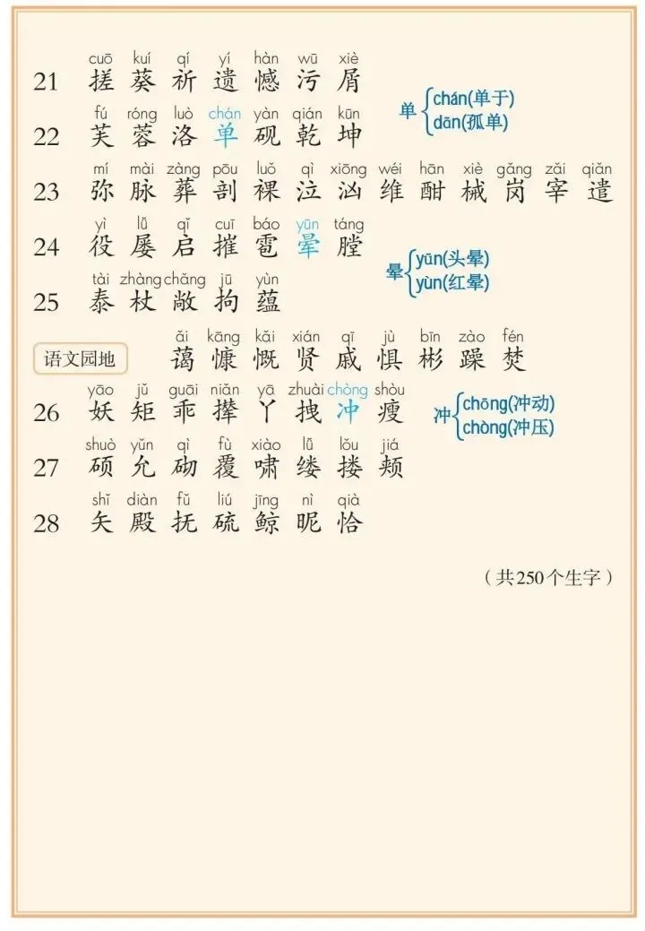 2025—2026学年春季部编版语文四年级下册《课后字词三表解析》,电子版可打印