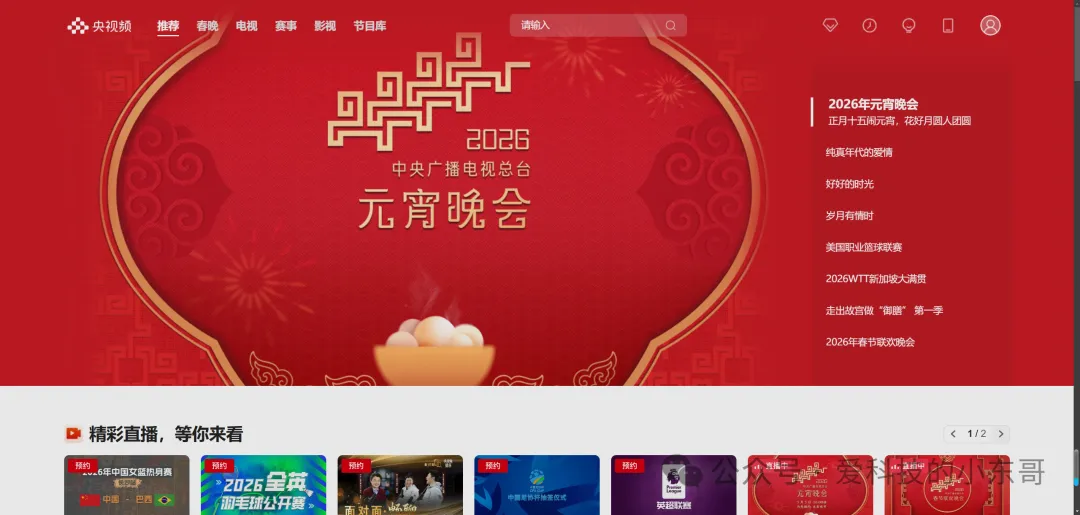国家级5G新媒体平台,国内首个“5G+4K/8K+AI”视听旗舰,免费看央视、卫视全频道节目,春晚、国庆晚会、元宵晚会等重大节目,高清无广告直播。