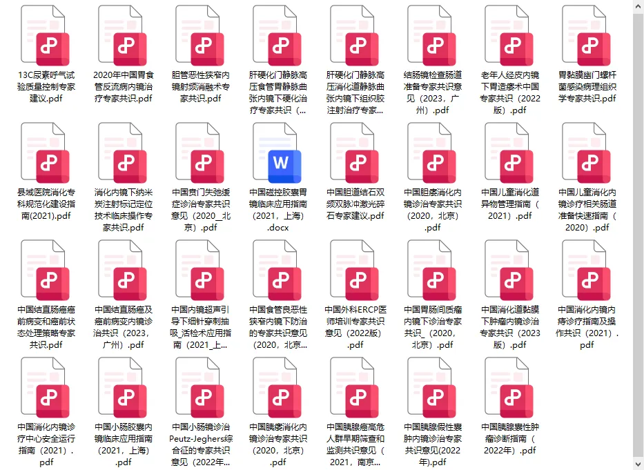 2023年消化内镜最新指南共识,免费下载! 本文汇总了近年来更新的消化内镜相关指南共识,免费供大家查阅下载! 部分预览如下 划至文末即可领取下载,随时随地查阅 免费领取方式 1.点击下方名片关注公众号:胃镜时间 2.在公众号内发送数字“25”领取!
