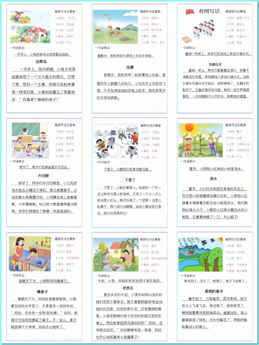 2026年部编版一年级下册语文《看图写话》经典优秀范文,电子版打印