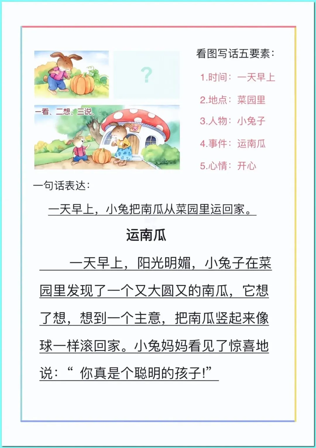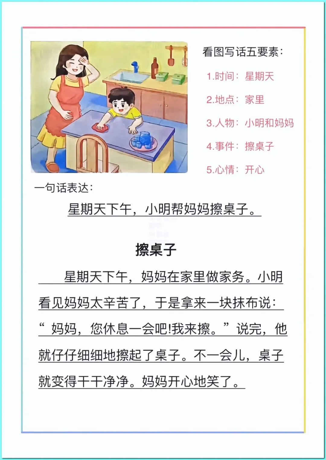 今天分享的是2026年部编版一年级下册语文《看图写话》经典优秀范文关注我,每天持续分享更多的优质学习资料。