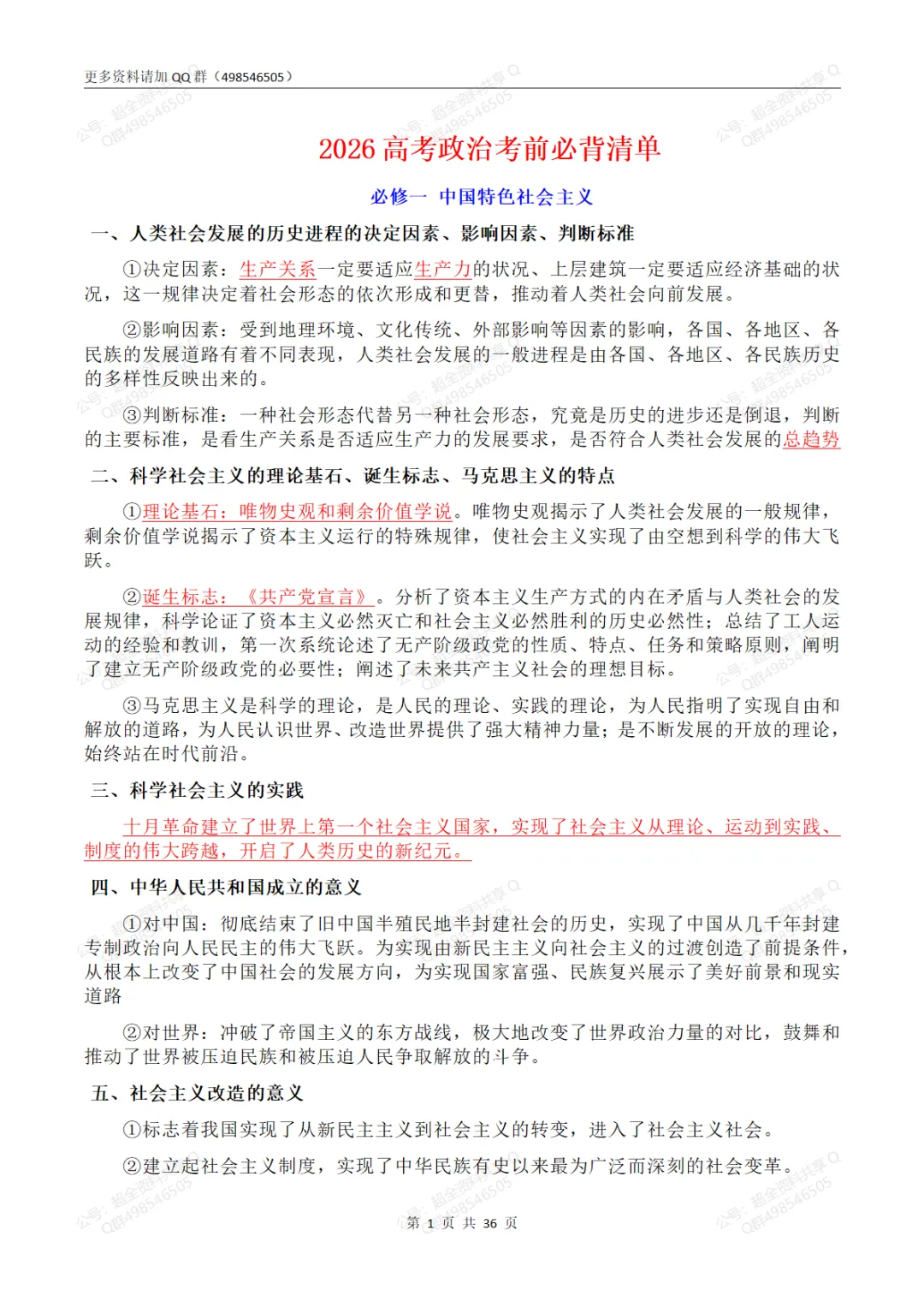 2026高考政治考前必背清单(pdf分享) 【最新试卷】 2024北京东城高三【一模】全科试题及答案(pdf分享) 2024北京西城高三【一模】全科试题及答案(pdf分享) 2024北京海淀高三【一模】全科试题及答案(pdf分享) 2025北京海淀区高一(上)期末卷合集及答案(pdf分享) 2025北京海淀区高二(上)期末卷合集及答案(pdf分享) 2025北京海淀区高三(上)期末卷合集及答案(pdf分享) 2025北京东城区高一(上)期末卷合集及答案(pdf分享) 2025北京东城区高二(上)期末卷合集及答案(pdf分享) 2025北京东城区高三(上)期末卷合集及答案(pdf分享) 2025北京朝阳区高一(上)期末卷合集及答案(pdf分享) 2025北京朝阳区高二(上)期末卷合集及答案(pdf分享) 2025北京朝阳区高三(上)期末卷合集及答案(pdf分享) 2025届高三八省八校联考(全九科)试题及答案(pdf分享) 看文末有获取打印版方式 (完整版36页,部分展示) 上文和下面资料在QQ群498546505下载 【高中政治知识总结】 1.高中政治必修1知识点整理(2019最新版)(pdf分享) 2.高中政治必修2知识点整理(2019最新版)(pdf分享) 3.高中政治必修3知识点整理(2019最新版)(pdf分享) 4.高中政治必修4知识点整理(2019最新版)(pdf分享) 5.高中政治必修一《经济生活》知识结构图(pdf分享) 6.高中政治必修三《文化生活》知识结构图(pdf分享) 7.高中政治必修四《生活与哲学》知识结构图(pdf分享) 8.高考政治经济生活选择题精选100题(pdf分享) 9.高考政治文化生活选择题精选100题(pdf分享) 10.高中政治人教版选修3《国家和国际组织常识》知识提纲(pdf分享) 11.统编版高中政治必修三《政治与法治》知识点梳理(pdf分享) 12.高中政治必修3《政治与法治》核心考点+易错易混(共40页)(pdf分享) 13.高中政治必修4《哲学与文化》知识点+易错易混+答题模板(pdf分享) 14.高中政治统编版必修一《中国特色社会主义》知识点总结(pdf分享) 15.高中政治统编版必修三政治与法治知识梳理(pdf分享) 16.高中政治统编版必修四哲学与文化整理总结(pdf分享) 17.高中政治统编版选择性必修1《当代国际政治与经济》知识提纲(pdf分享) 18.高中政治统编版选修2《法律与生活》知识提纲(pdf分享) 19.高中政治统编版必修2《经济与社会》知识梳理(pdf分享) 20.高中政治统编版选修3《逻辑与思维》知识提纲(pdf分享) 21.人教版高中政治必修一《经济生活》主观题答题常用句总结(pdf分享) 22.高中政治必修1-4选择题必背“易错点”300条(pdf分享) 23.高中政治必修1-4超全易错点总结(pdf分享) 24.新教材高中政治主观题知识问答整理(共30页)(pdf分享) 25.新教材高中政治必修三《政治与法治》核心考点+易错易混(共40页)_01(pdf分享) 26.新教材高中政治必修四《哲学与文化》核心考点+易错易混(pdf分享) 27.高中政治考试中的时政术语归纳(pdf分享) 28.高考政治各部分常考点大整理(pdf分享) 29.高中政治答题模板全套整理(pdf分享) 30.(超详)高中政治知识点归纳汇总(pdf分享) 31.2023高考政治备考热点术语答题模板(pdf分享) 32.高中政治知识点总结(必修一到必修四)(pdf分享) 33.高三政治必背知识点(精华版)(pdf分享) 34.人教版高中政治复习资料[全套](pdf分享) 35.人教版高中政治会考复习资料全套(pdf分享) 36.高中政治必修一至四知识点总结(经济、政治、文化、哲学生活)(pdf分享) 37.高考政治主观题背诵清单(pdf分享) 38-2023高考政治四本教科书主干知识总结(pdf分享) 39.高中政治易错易混点整理(pdf分享) 40.高中政治必修1 《中国特色社会主义》(易混易错)(pdf分享) 41.高中政治选择性必修2《法律与生活》主干知识(pdf分享) 42.人教版高中政治会考复习资料(pdf分享) 43.高中政治知识总结(经济+政治+文化+成就)(pdf分享) 44.2023年高中政治学业水平备考主干知识汇编(pdf分享) 45.高考政治统编版必修1-4知识点总结(pdf分享) 46.高中政治教材7本书主要线索指引(pdf分享) 47.高中政治选必一《当代国际政治与经济》选择题精练(pdf分享) 48.高中政治选必二《法律与生活》主观题精练(pdf分享) 49.高中政治必修三《政治与法治》选择题精练(pdf分享) 50.高中政治学业水平考试简明复习提纲(精华版)(pdf分享) 51.北京市高考知识点梳理(政治)(pdf分享) 52.高中政治总复习主观题知识点汇总(pdf分享) 53.高中政治《中国特色社会主义》核心考点(pdf分享) 54.高中政治必修一《中国特色社会主义》主干知识(pdf分享) 55.高中合格考政治知识点精简版(统编版必修1-4)(pdf分享) 56.高中政治教材7本书主要线索指引(pdf分享) 57.新教材高中政治必修一《中国特色社会主义》知识梳理(pdf分享) 58.新教材高中政治必修二《经济与社会》知识点梳理(pdf分享) 59.新教材高中政治必修三《政治与法治》知识归梳理(pdf分享) 60.新教材高中政治必修四《哲学与文化》知识点梳理(pdf分享) 61.新教材高中政治选择性必修1《当代国际政治与经济》知识梳理(pdf分享) 62.新教材高中政治选择性必修2《法律与生活》知识提纲(pdf分享) 63.新教材高中政治选择性必修3《逻辑与思维》知识提纲(pdf分享) 64.高考政治核心知识点总结(pdf分享) 65.高考政治重要时政热点词汇总结(pdf分享) 66.高考政治全套知识点总结(pdf分享) 67.高中政治知识点背诵提纲(经济、政治、文化、哲学生活)(pdf分享) 68.高三政治知识点最全归纳(pdf分享) 69.高中政治学科体系思维导图(pdf分享) 70.高中政治新教材知识点思维导图梳理(pdf分享) 71.高中必修3《政治