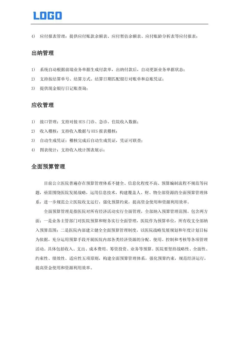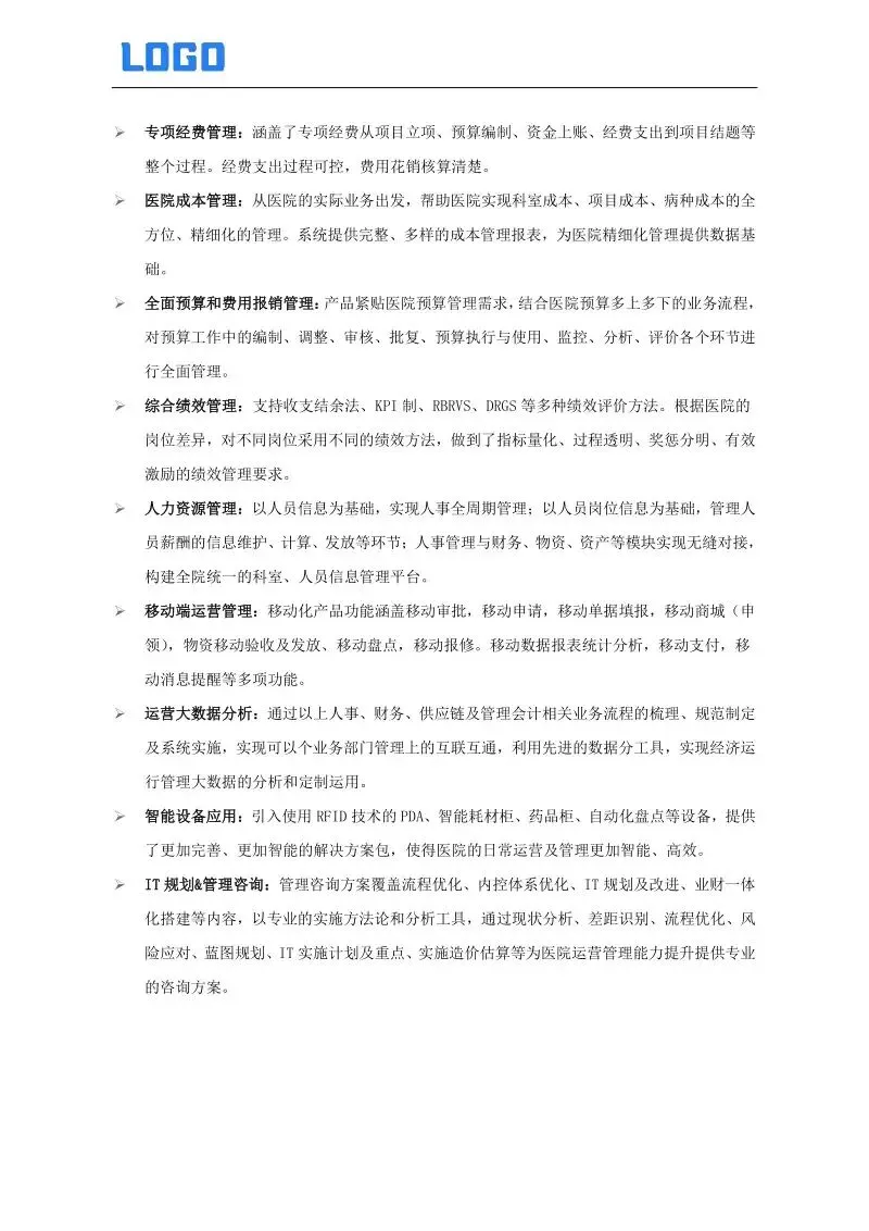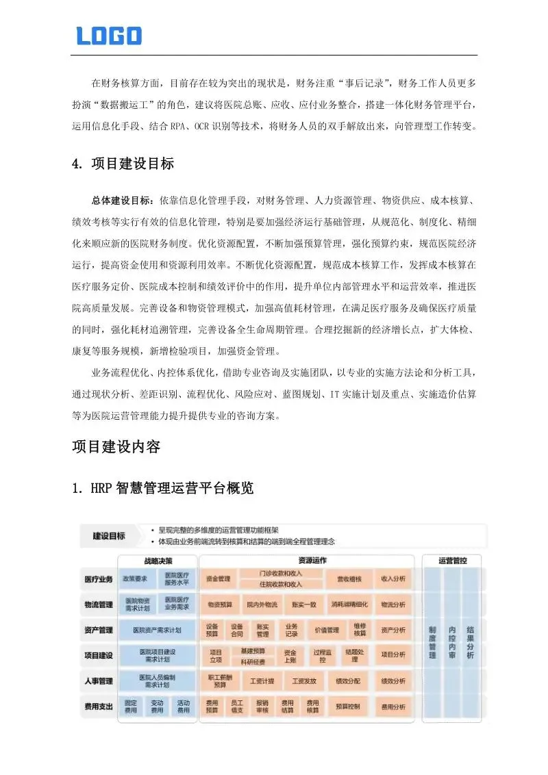 优化业务流程与内控体系,引入专业咨询与实施团队,依托科学的实施方法与分析工具,按照现状分析、差距识别、流程再造、风险防控、蓝图设计、IT规划、成本测算等阶段,为医院量身定制专业化解决方案,全面提升运营管理效能。