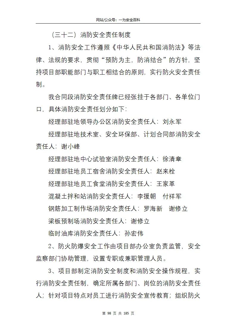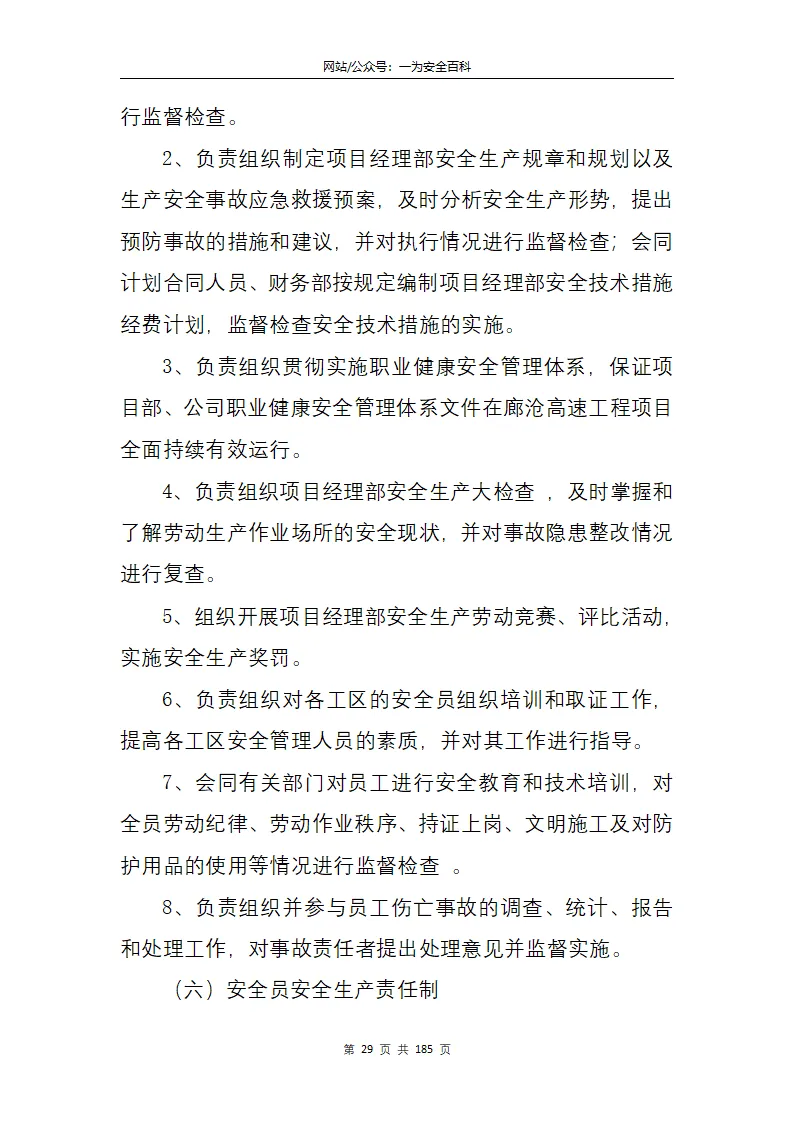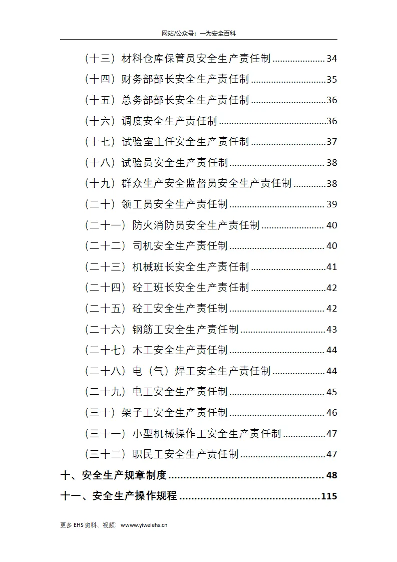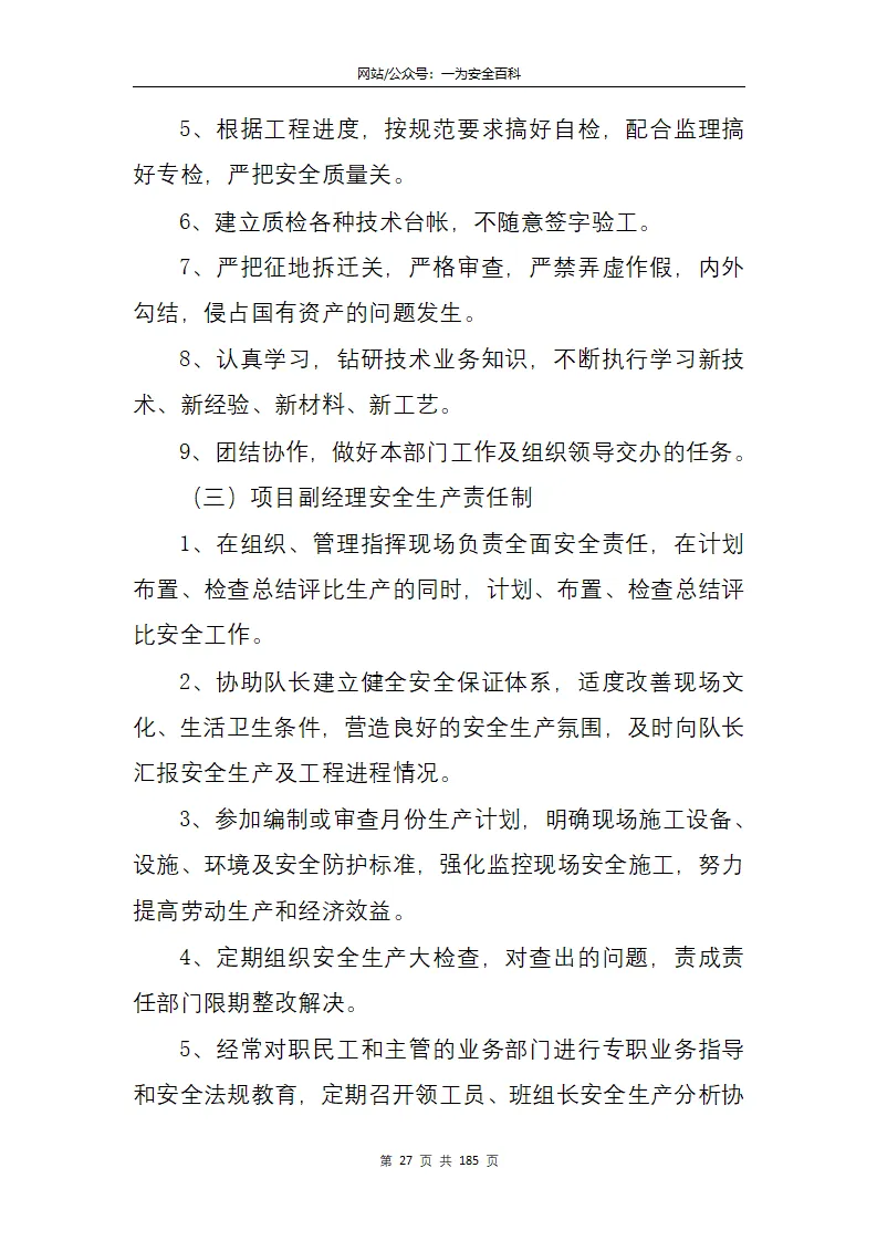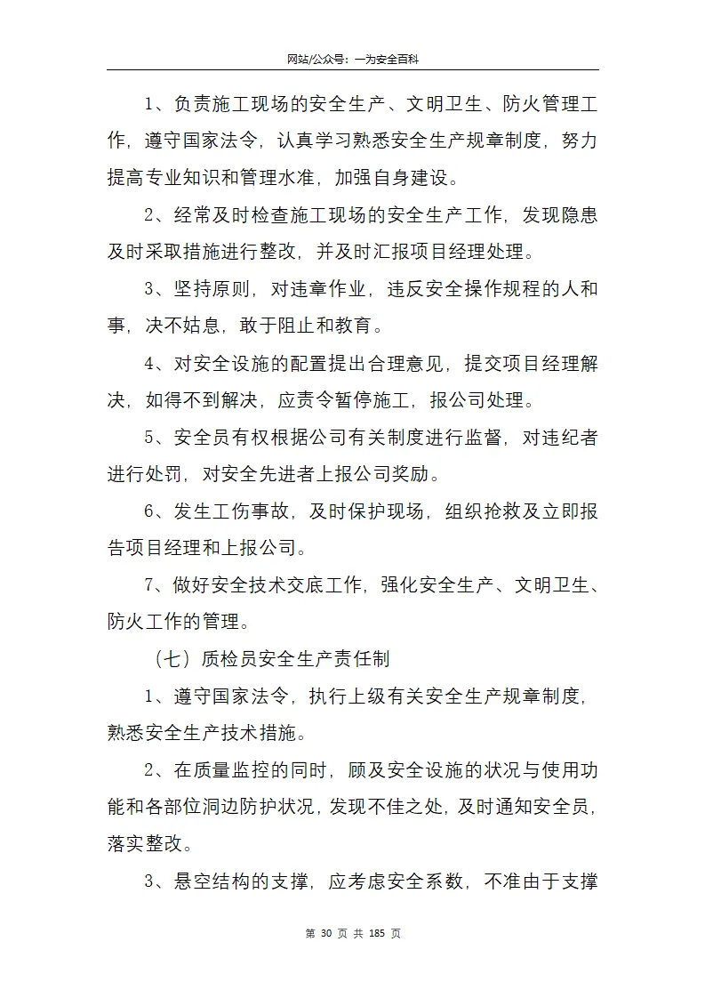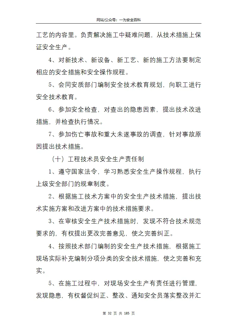 详细规定了从项目经理、书记、总工到各职能部门(安质、技术、物资、财务等)及一线班组(钢筋工、电工、架子工等)共32个岗位的安全生产责任制,实现了全员覆盖。