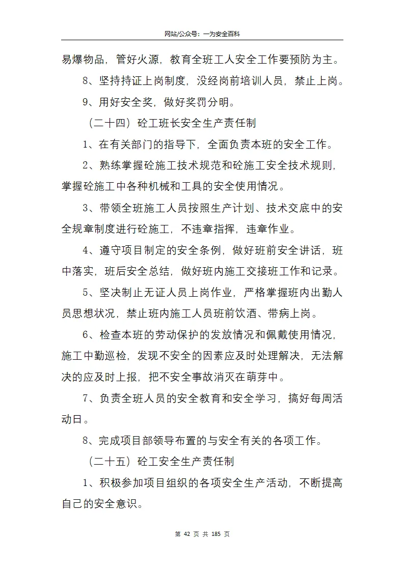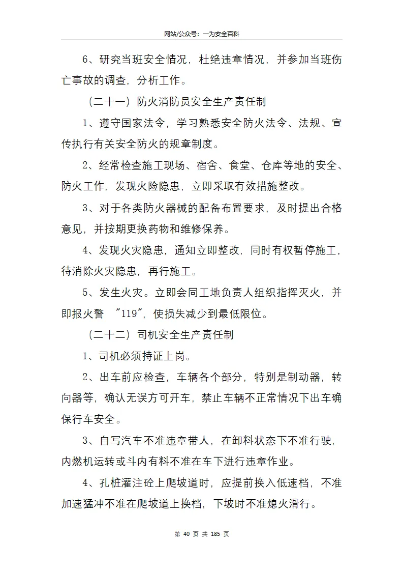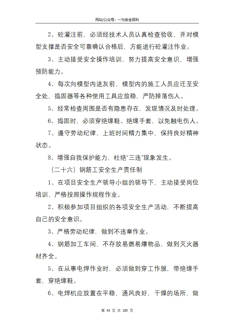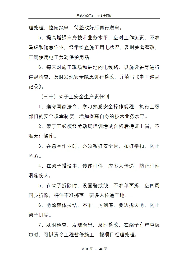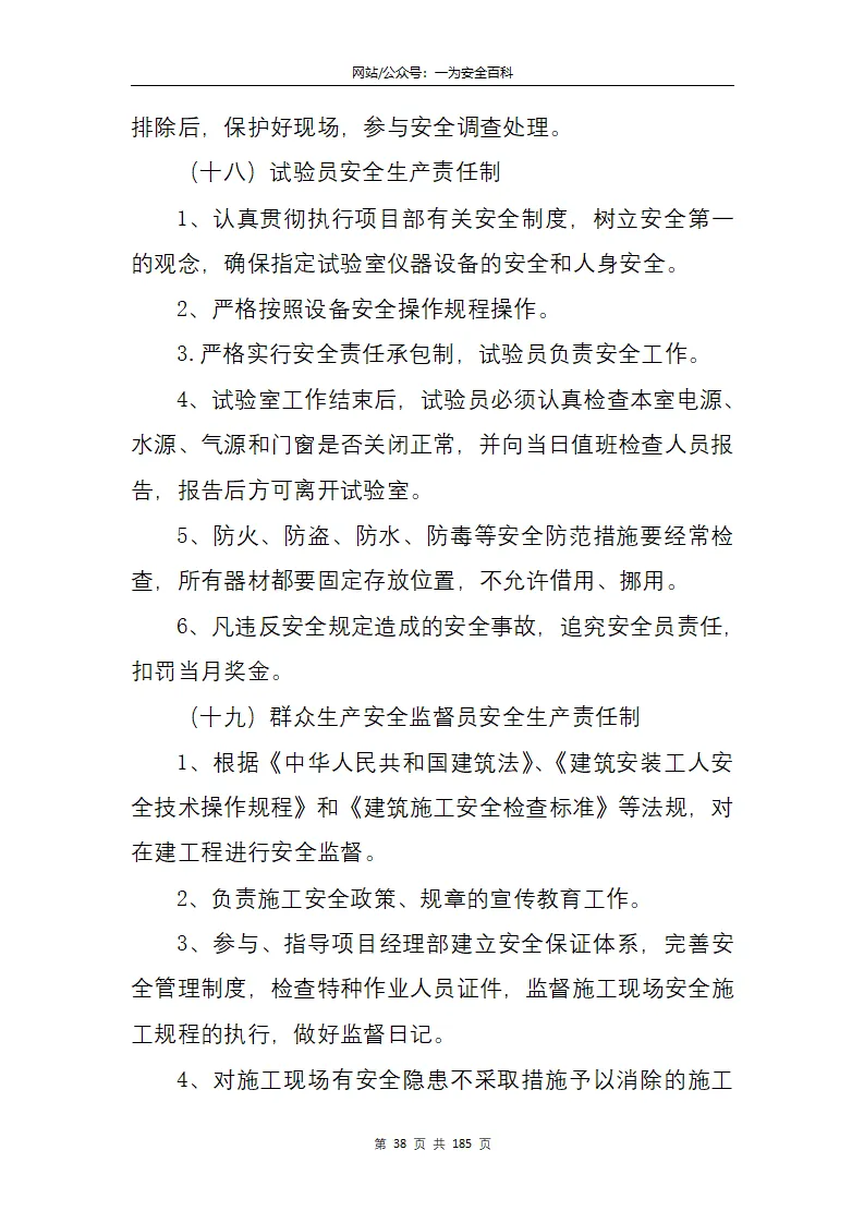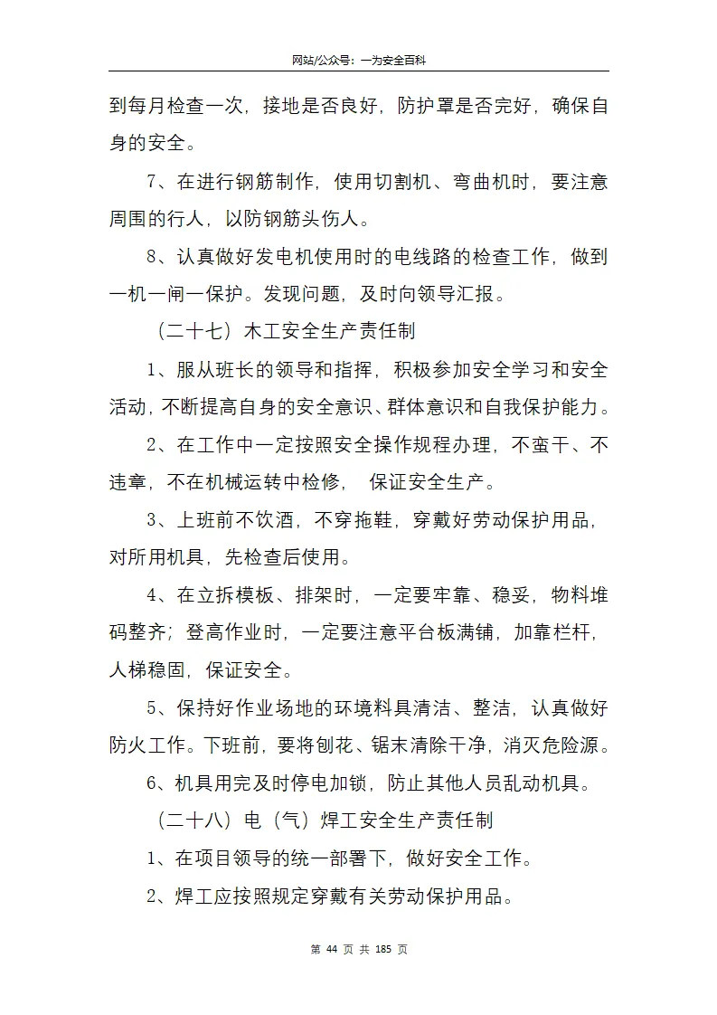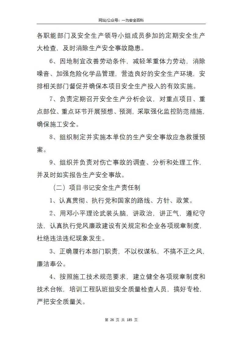 详细规定了从项目经理、书记、总工到各职能部门(安质、技术、物资、财务等)及一线班组(钢筋工、电工、架子工等)共32个岗位的安全生产责任制,实现了全员覆盖。