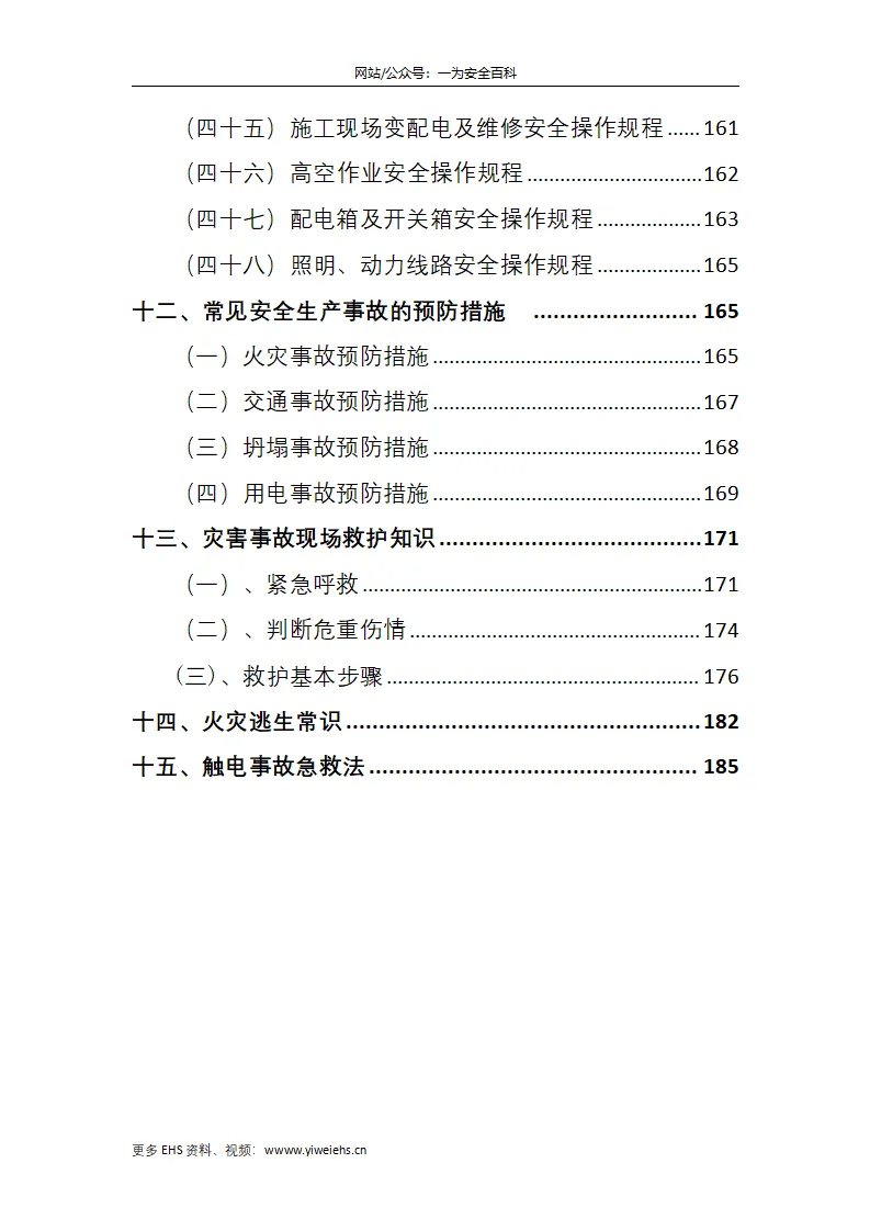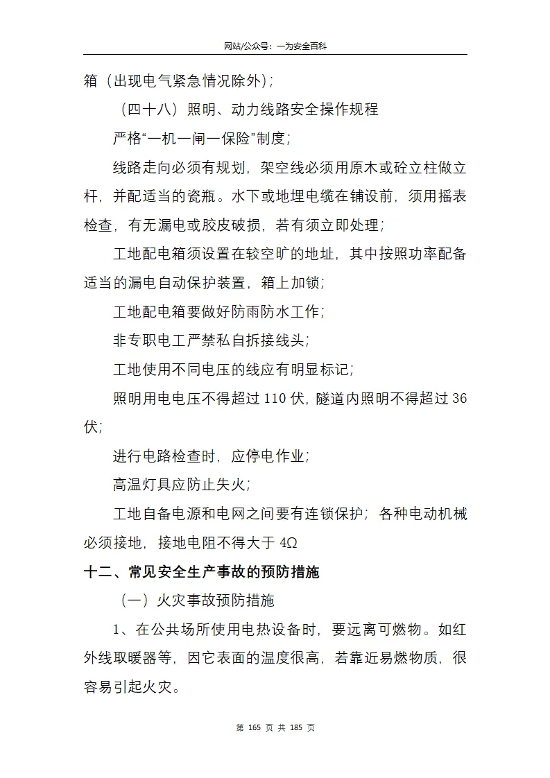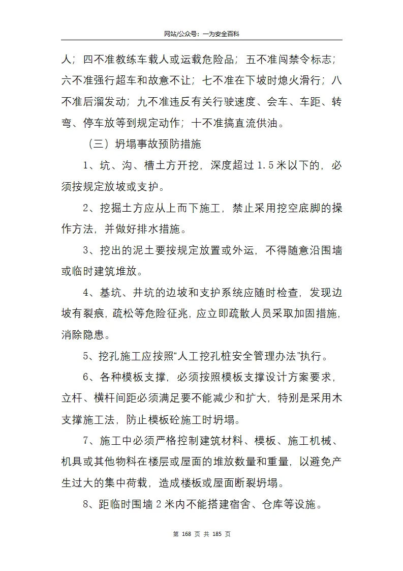 针对火灾、交通、坍塌、用电等常见事故提出了具体的预防措施。