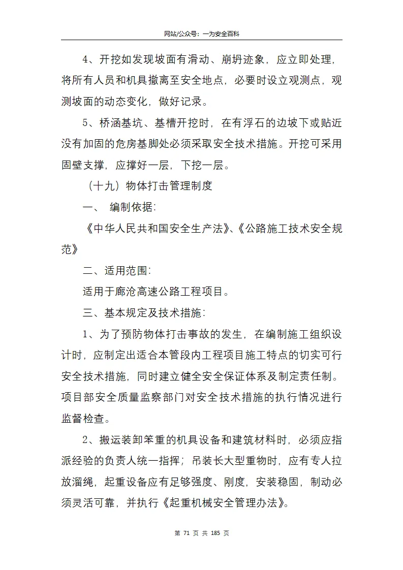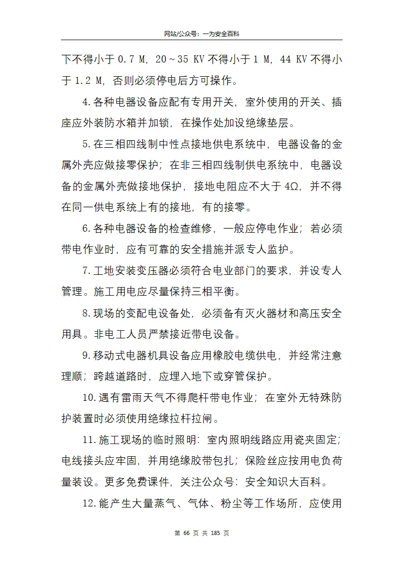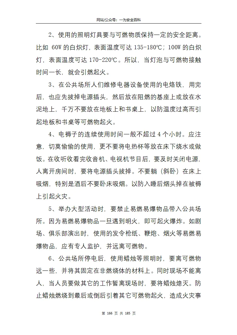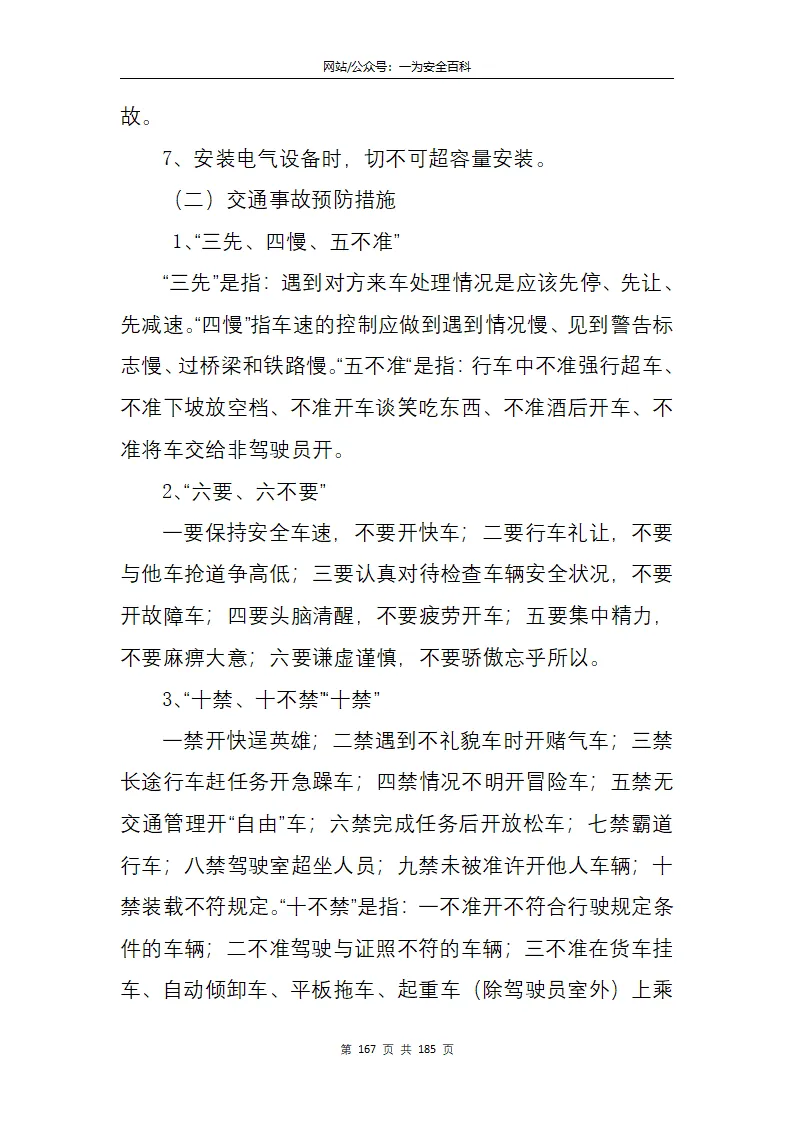 针对火灾、交通、坍塌、用电等常见事故提出了具体的预防措施。