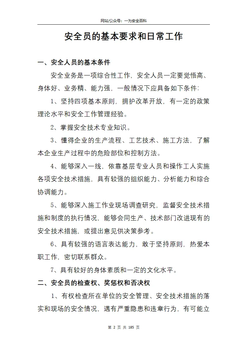 明确了安全员应具备的政治觉悟、专业知识、身体素质和协调能力等基本条件。