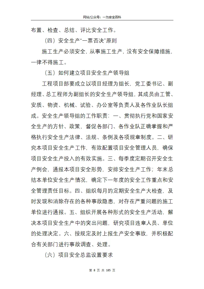 阐述了安全生产管理的核心原则,如“五同时”、“一票否决”、“四不放过”等。