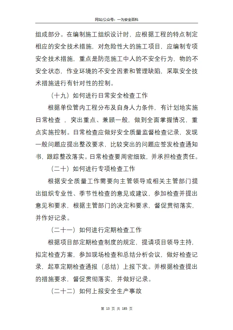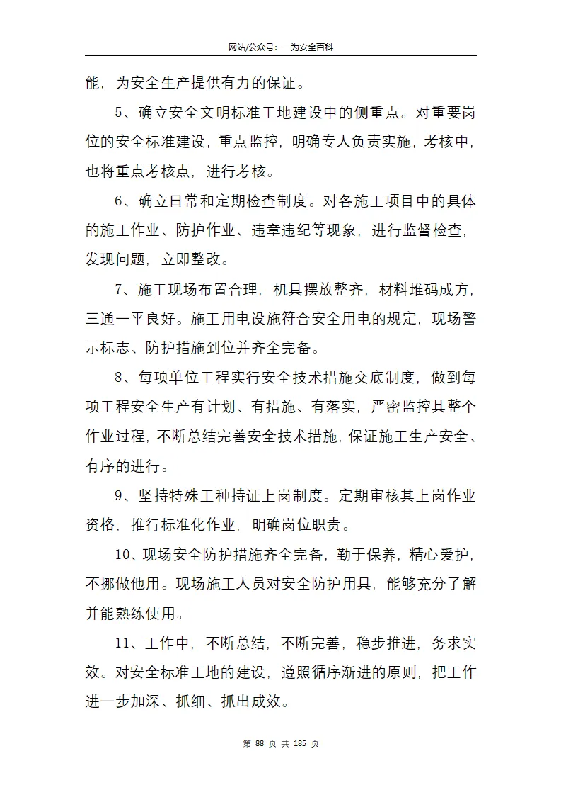 总体而言,该手册是建筑施工企业实现标准化、规范化安全管理的实操工具书,强调了“安全第一、预防为主、综合治理”的方针。