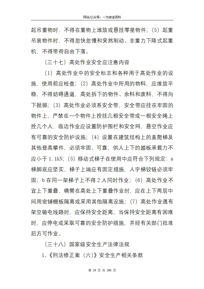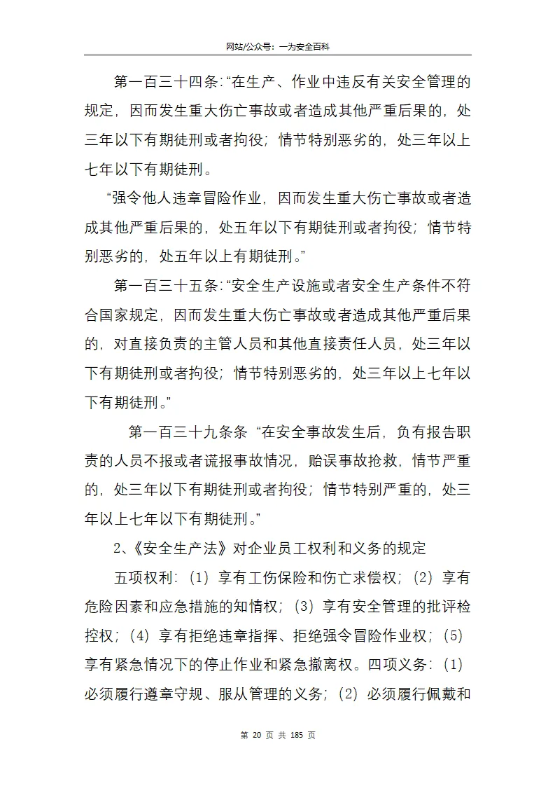 列举了国家级安全生产法律法规要点,包括刑法修正案相关条款及员工权利义务。