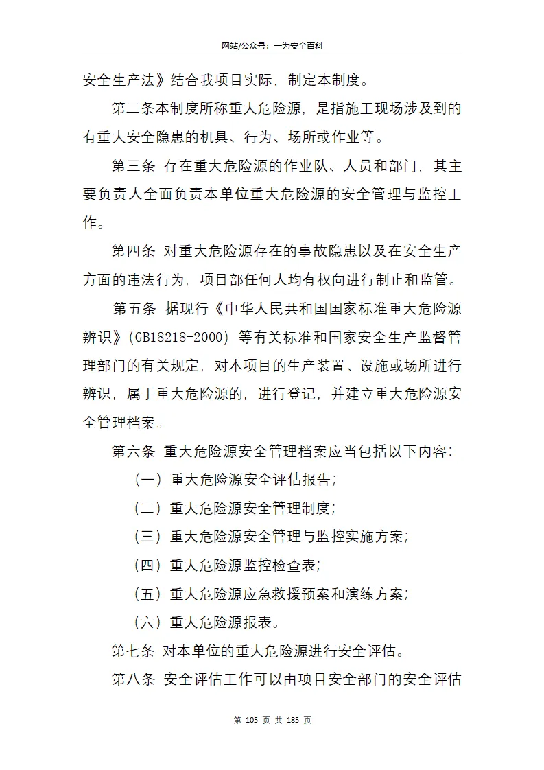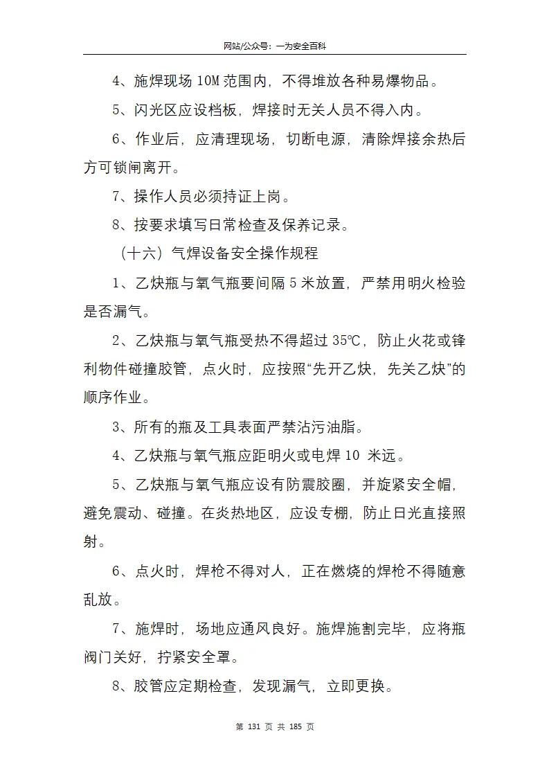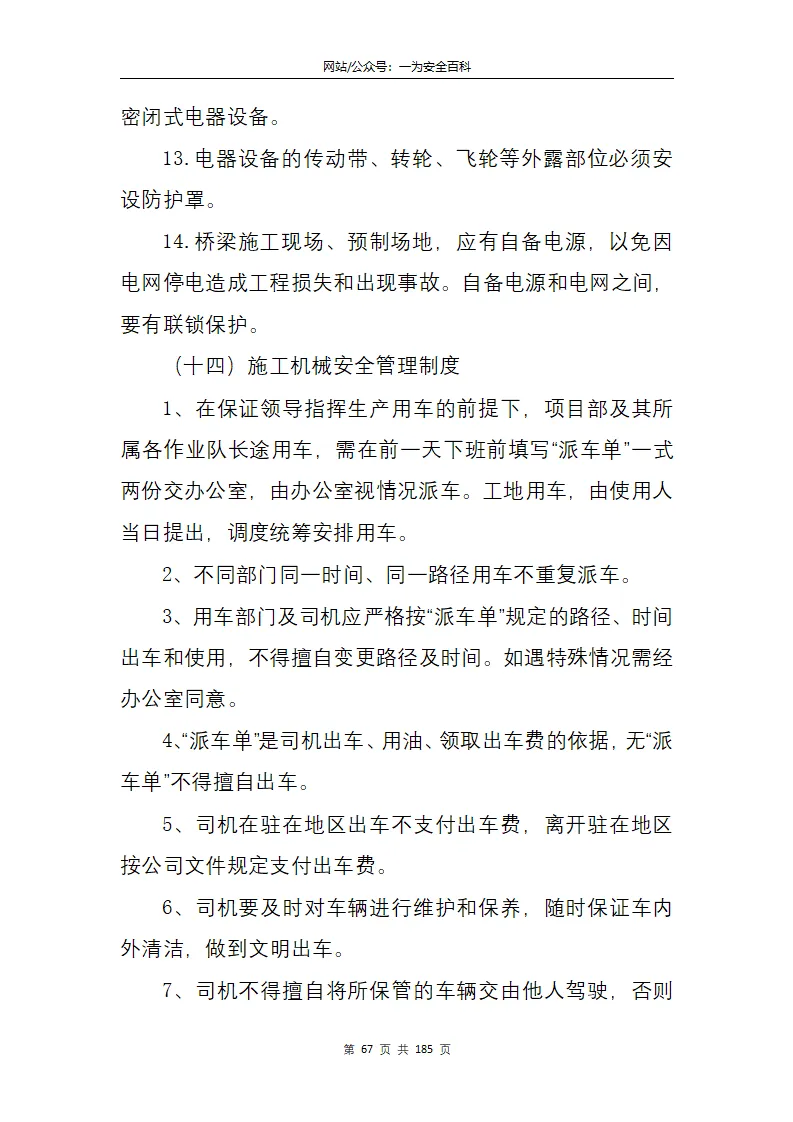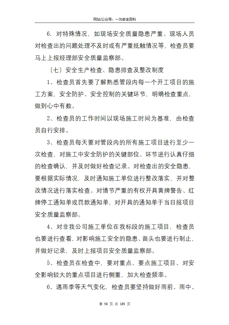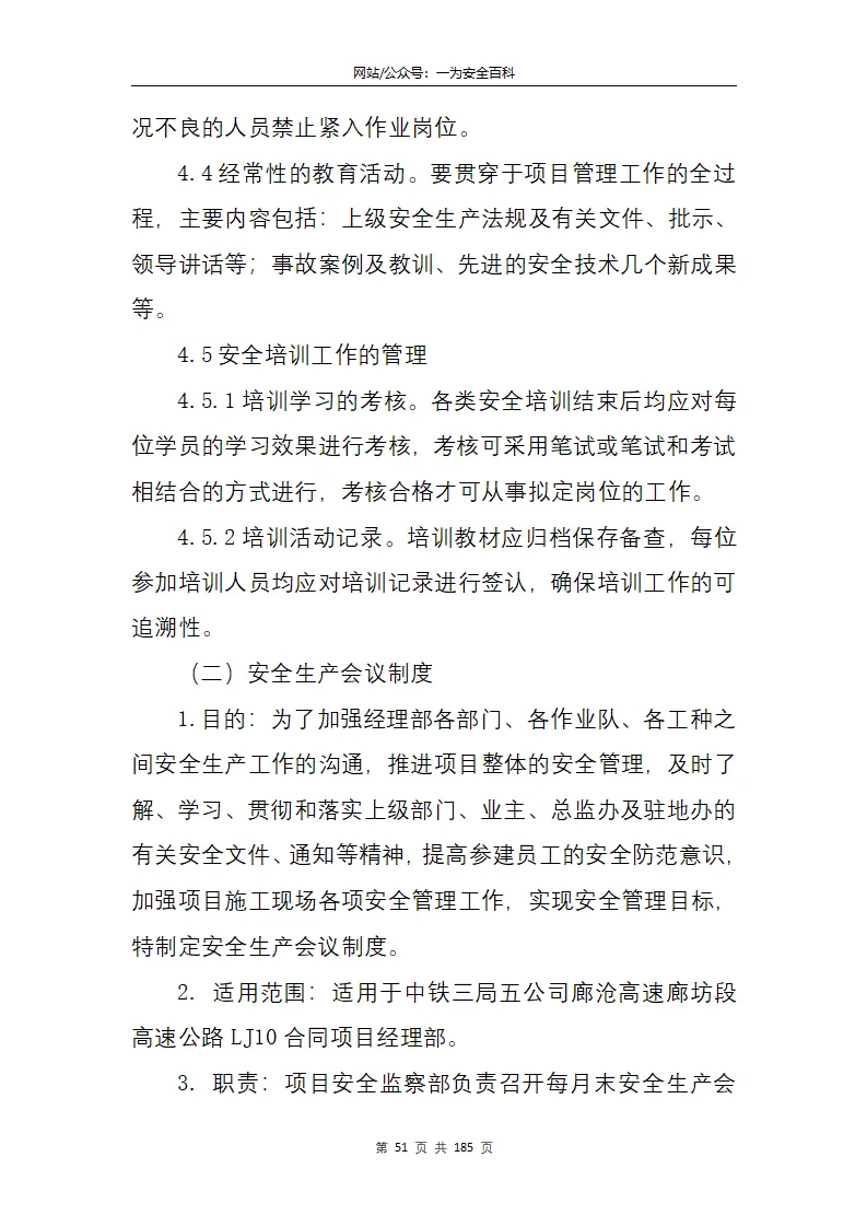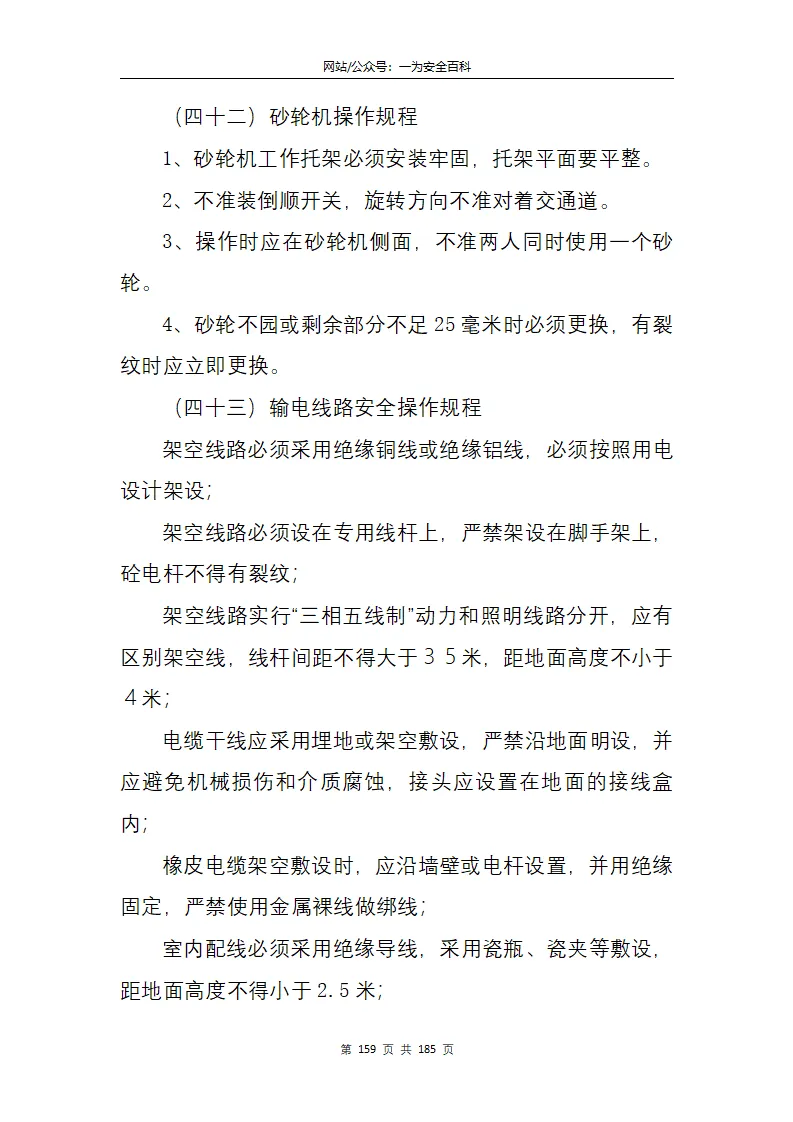 建立了全套管理制度,包括全员培训、会议制度、各类检查制度(日常、定期、专项、季节)、隐患排查整改、事故报告与调查处理、奖惩制度、安全技术交底、特种作业持证上岗、安全防护用品管理、消防责任、危险源监控、应急预案演练及意外伤害保险等近四十项制度。