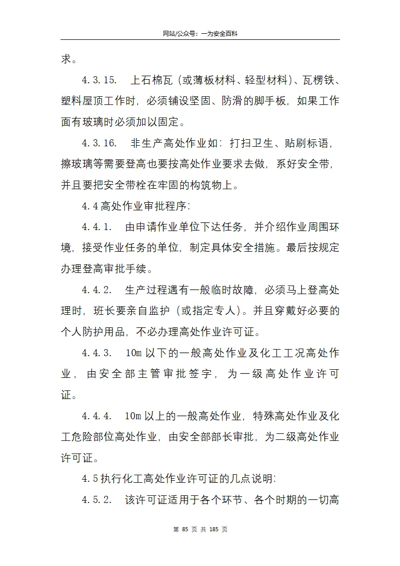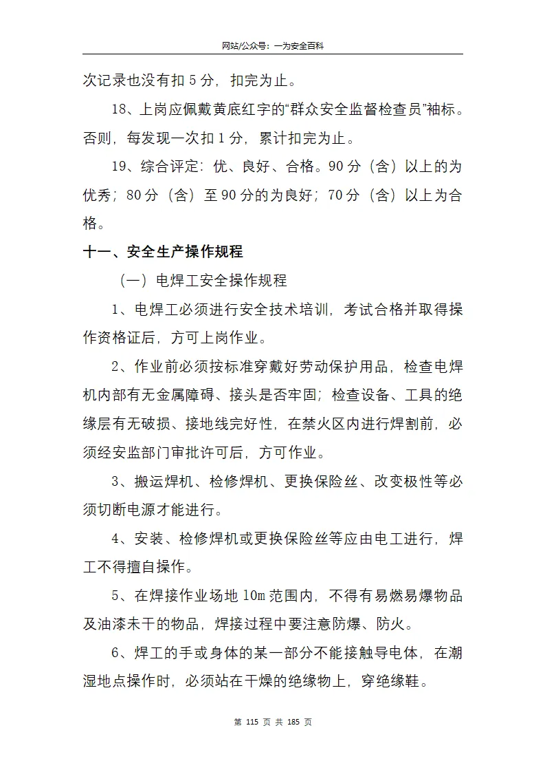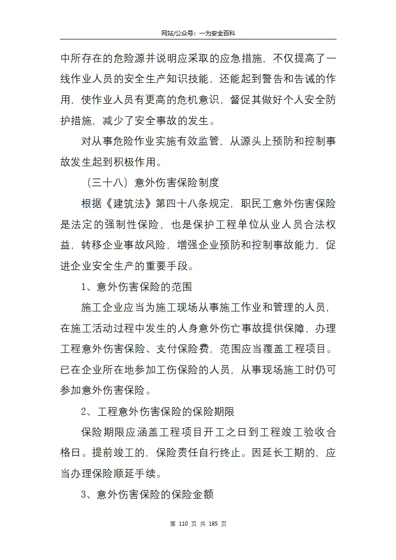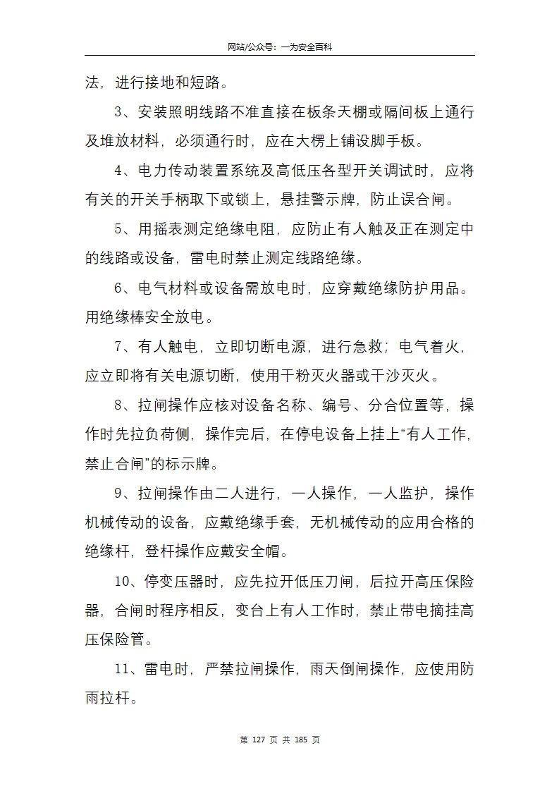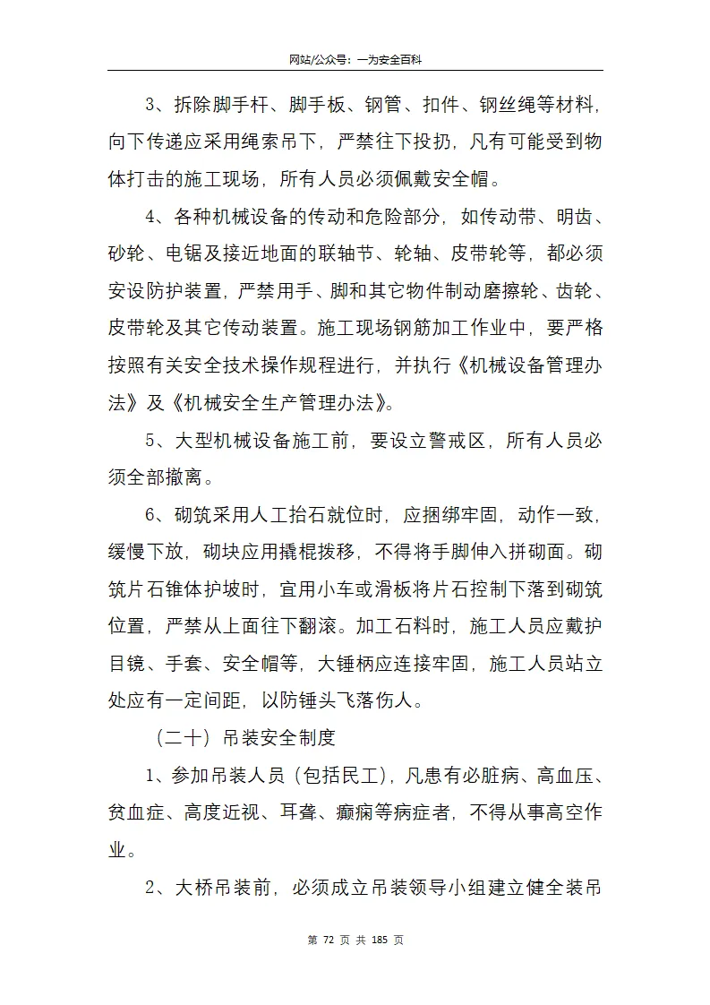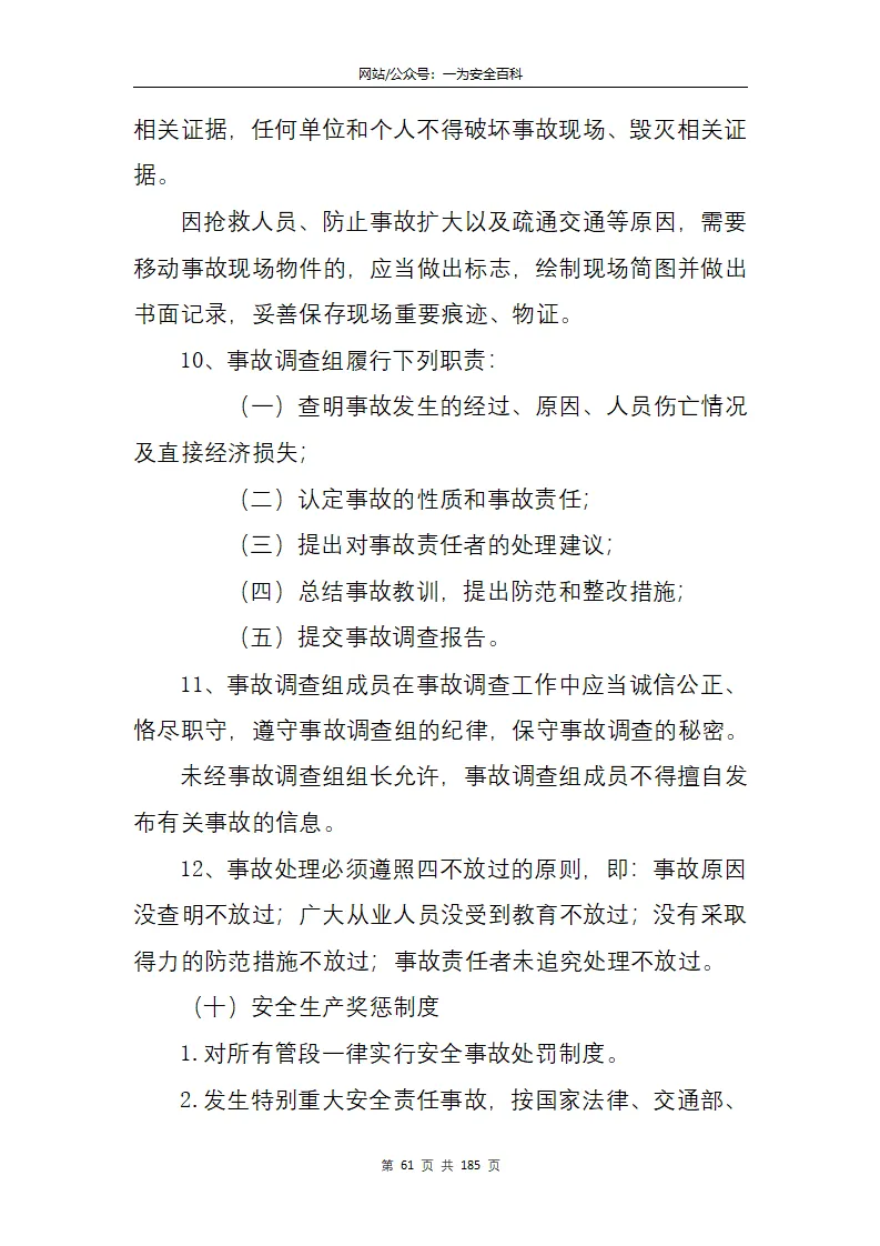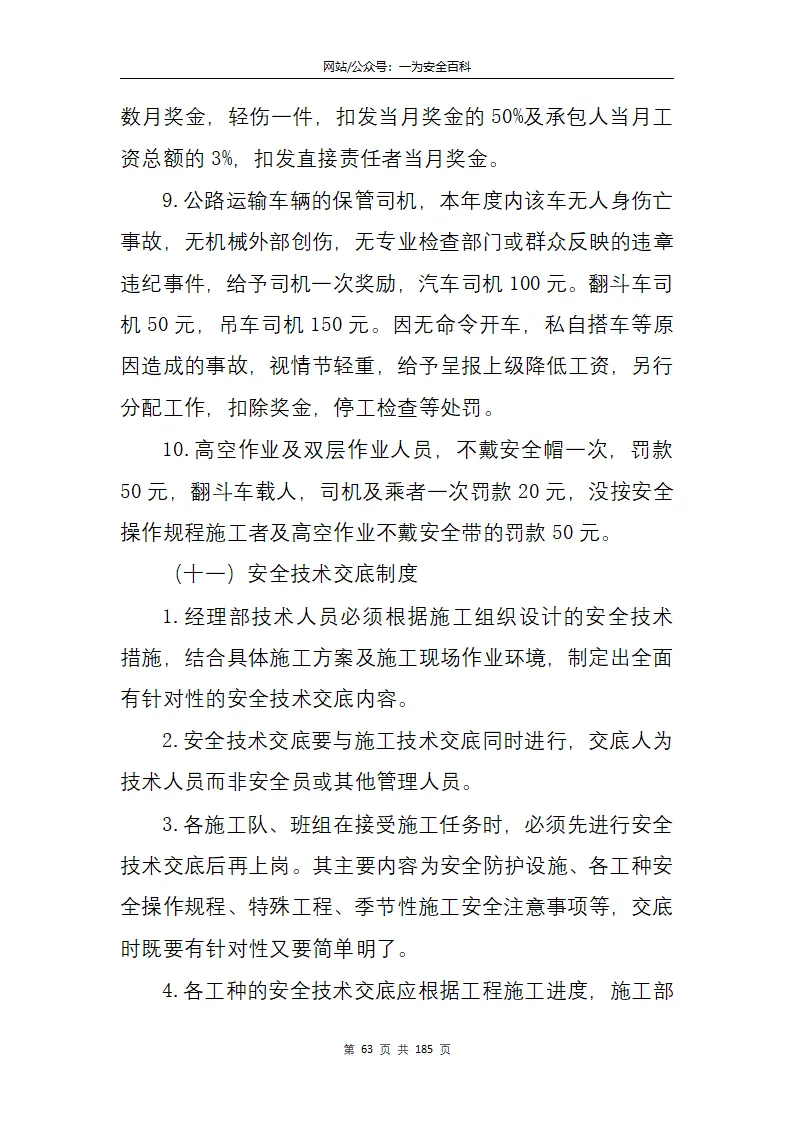 建立了全套管理制度,包括全员培训、会议制度、各类检查制度(日常、定期、专项、季节)、隐患排查整改、事故报告与调查处理、奖惩制度、安全技术交底、特种作业持证上岗、安全防护用品管理、消防责任、危险源监控、应急预案演练及意外伤害保险等近四十项制度。