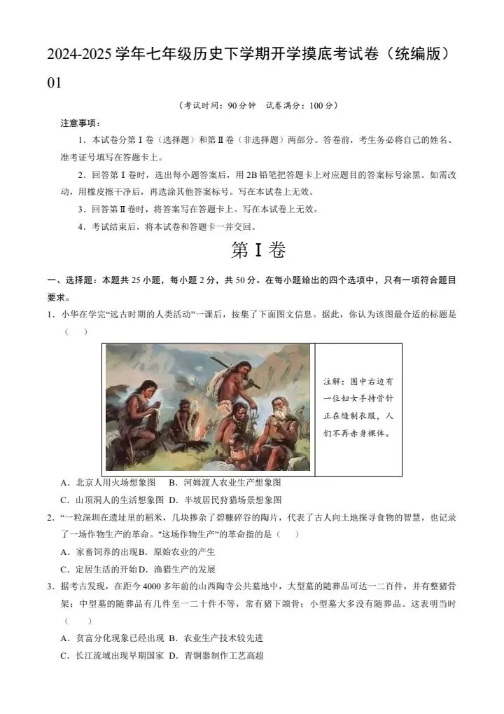 本站文章均为手工撰写未经允许谢绝转载:夜雨聆风 » 2024-2025学年部编版七下历史开学摸底测试卷(含答案),完整可下载打印