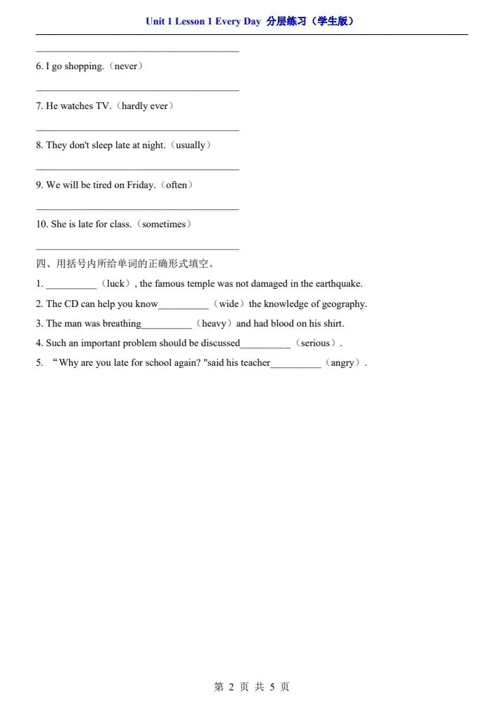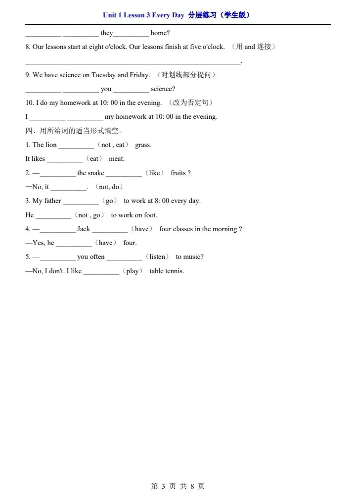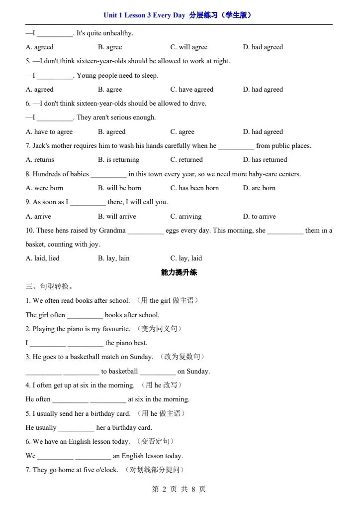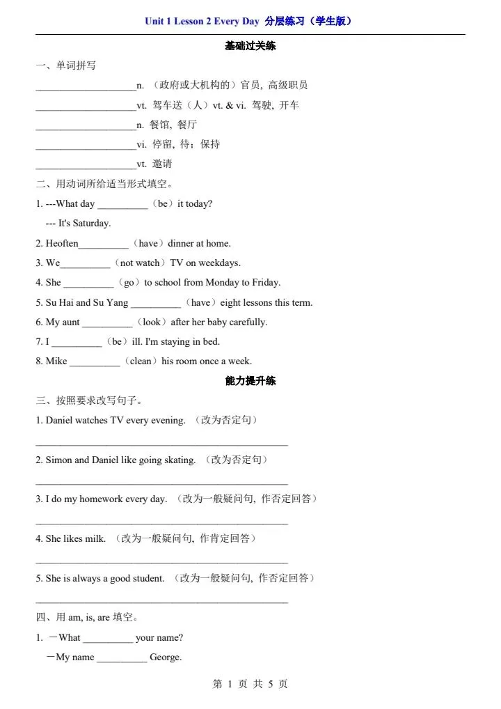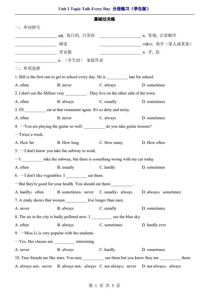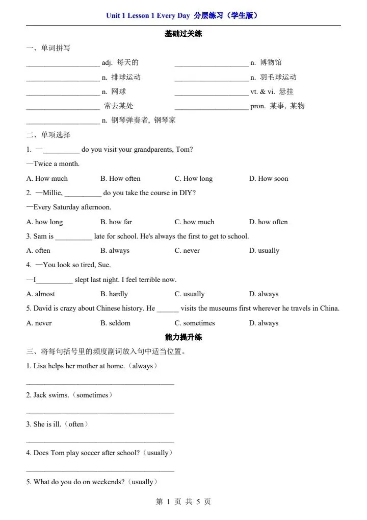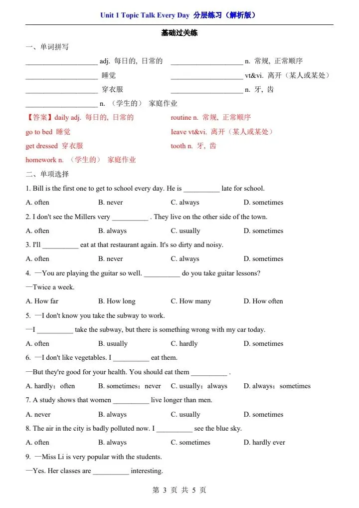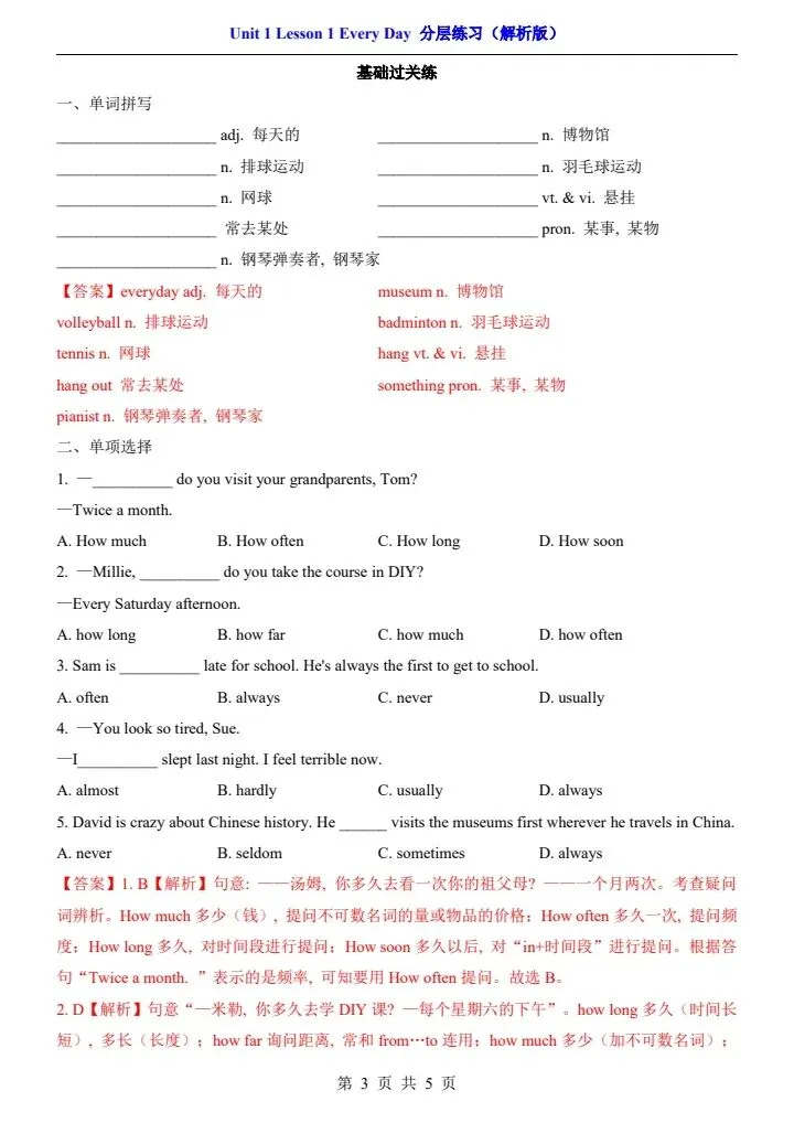 【北师版】七年级下册英语一课一练·分层练习(含解析) 完整电子版可打印