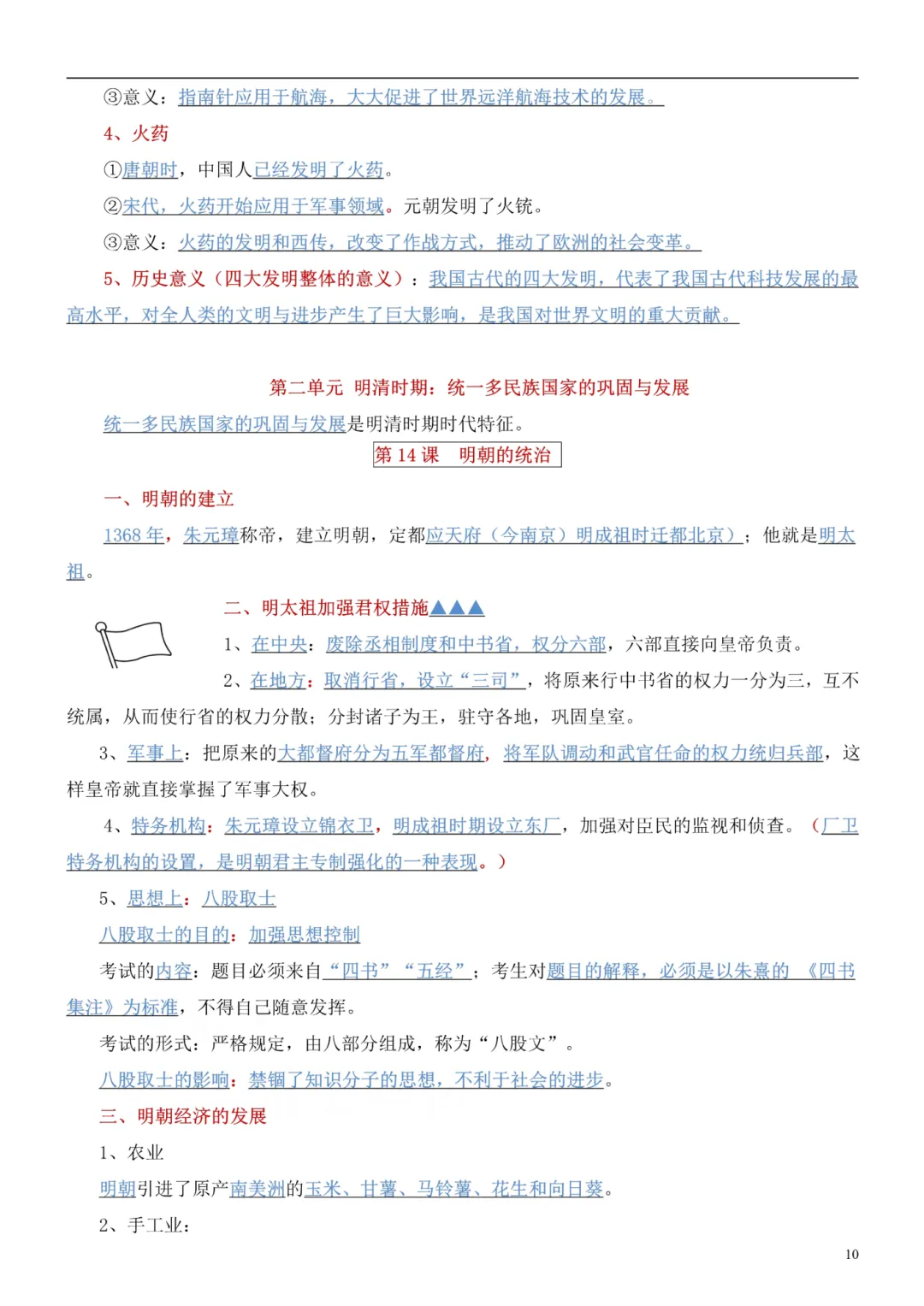 七下历史知识点总结(人教版)完整版可打印!