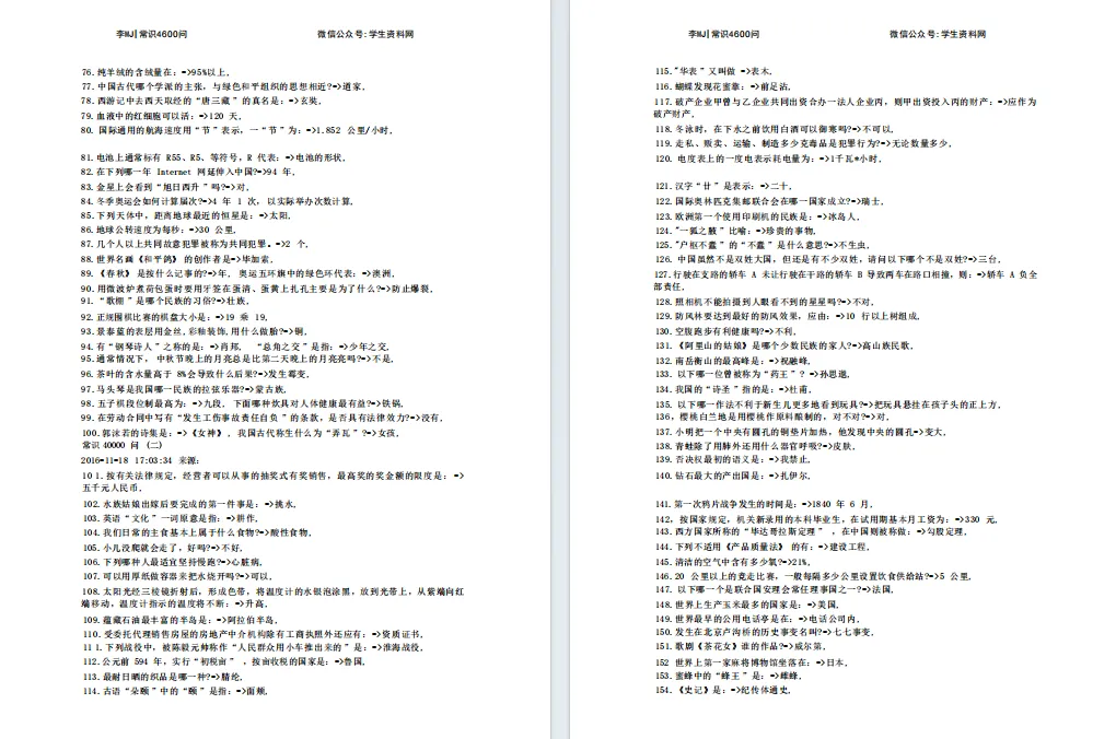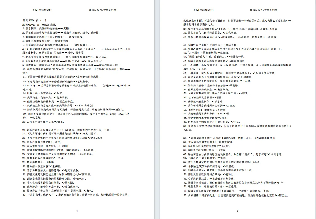 公考资料 | 李梦娇常识4600问,可下载打印 学生资料网| 你的考编考证资料我承包了! 小颜学长今天给大家 整理了公考常识资料 本文件包含: 李梦娇常识4600问(115页,很全) 行测常识判断,看这个就够了哦! 免费领取方式 1、点文章底部“在看” 2、在公众号后台回复 “常识”即可 【以下是部分资料展示】 李梦J常识4600问(115页,很全) 免费领取方式 1、点文章底部“在看” 2、在公众号后台回复 “常识”即可