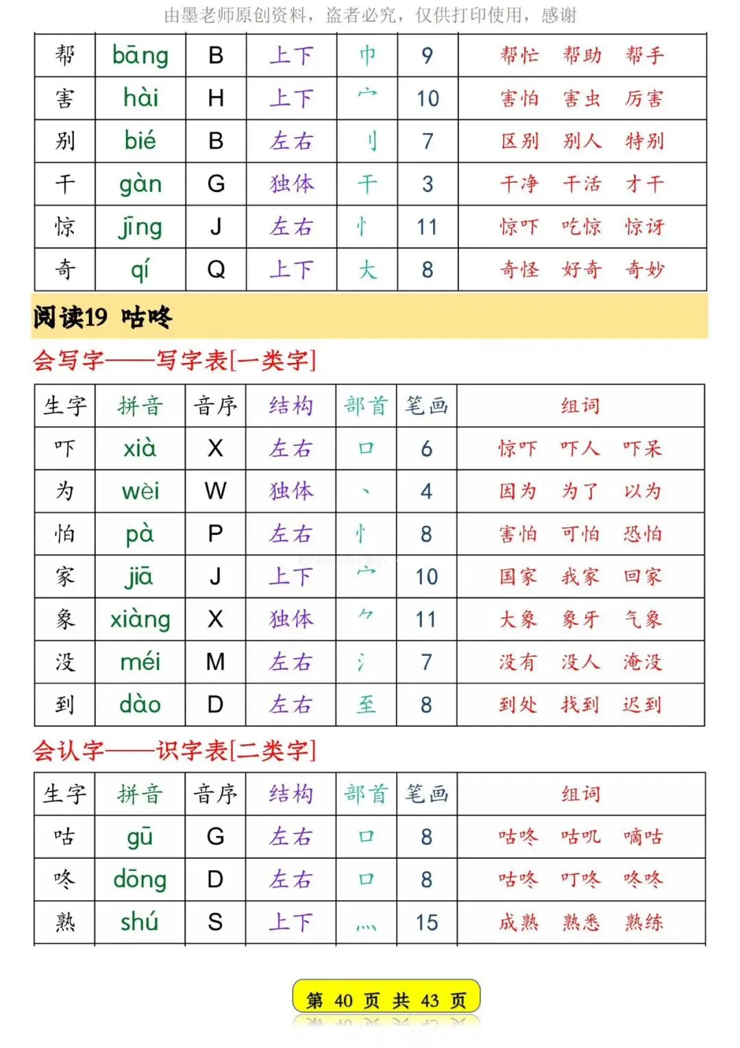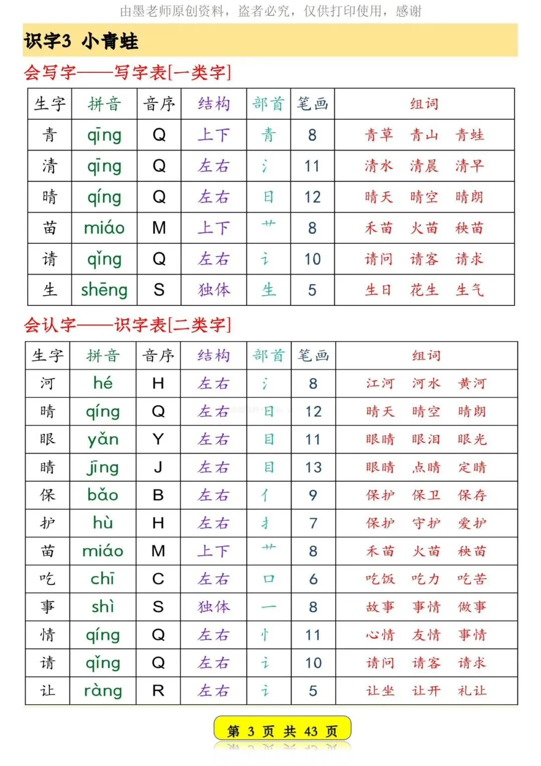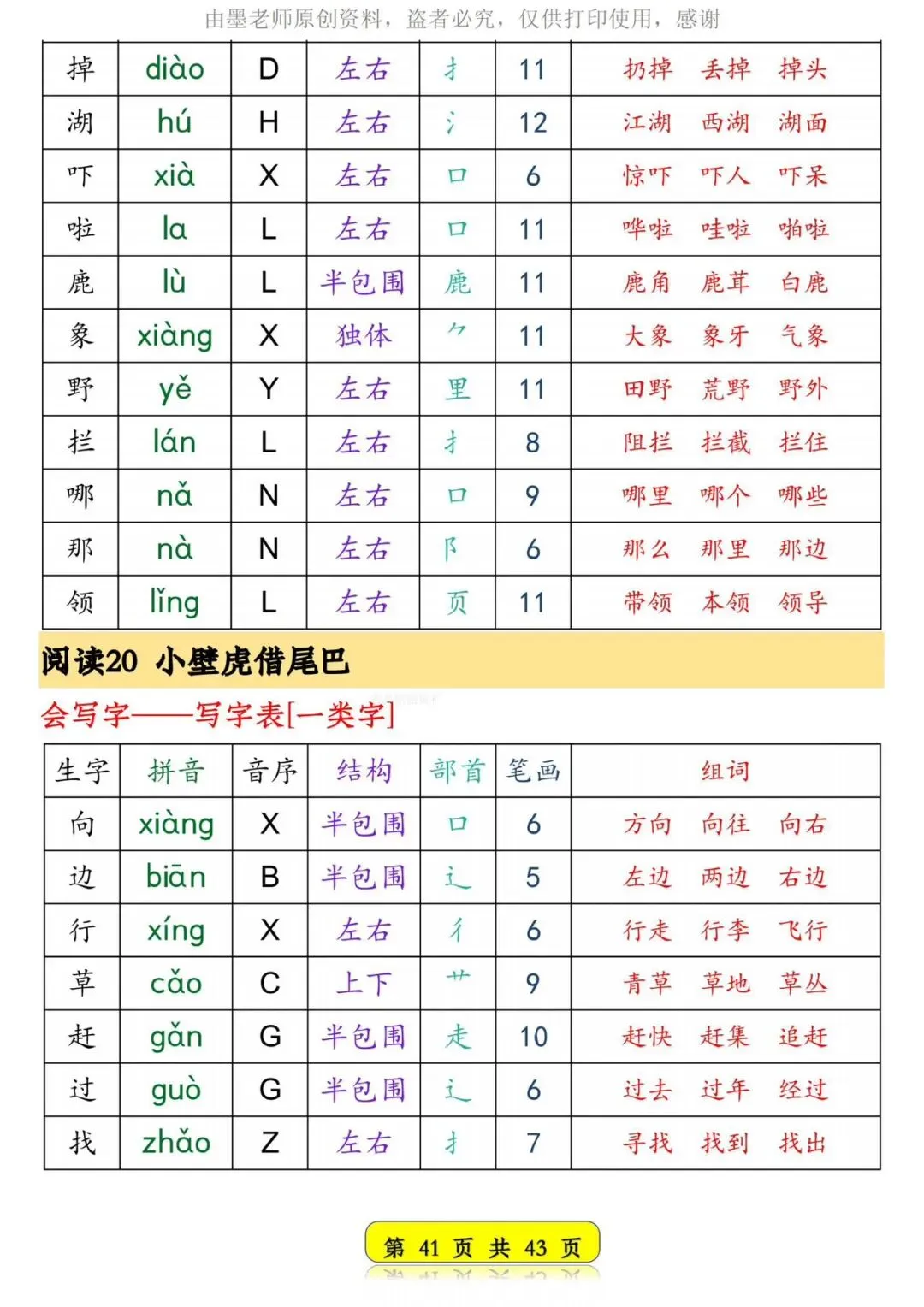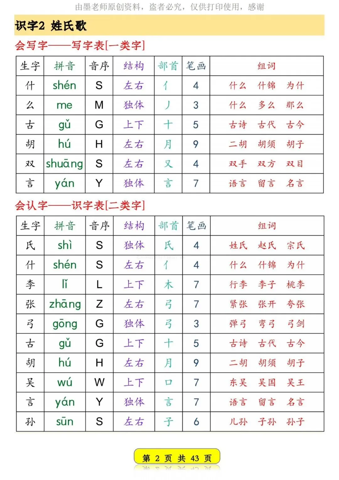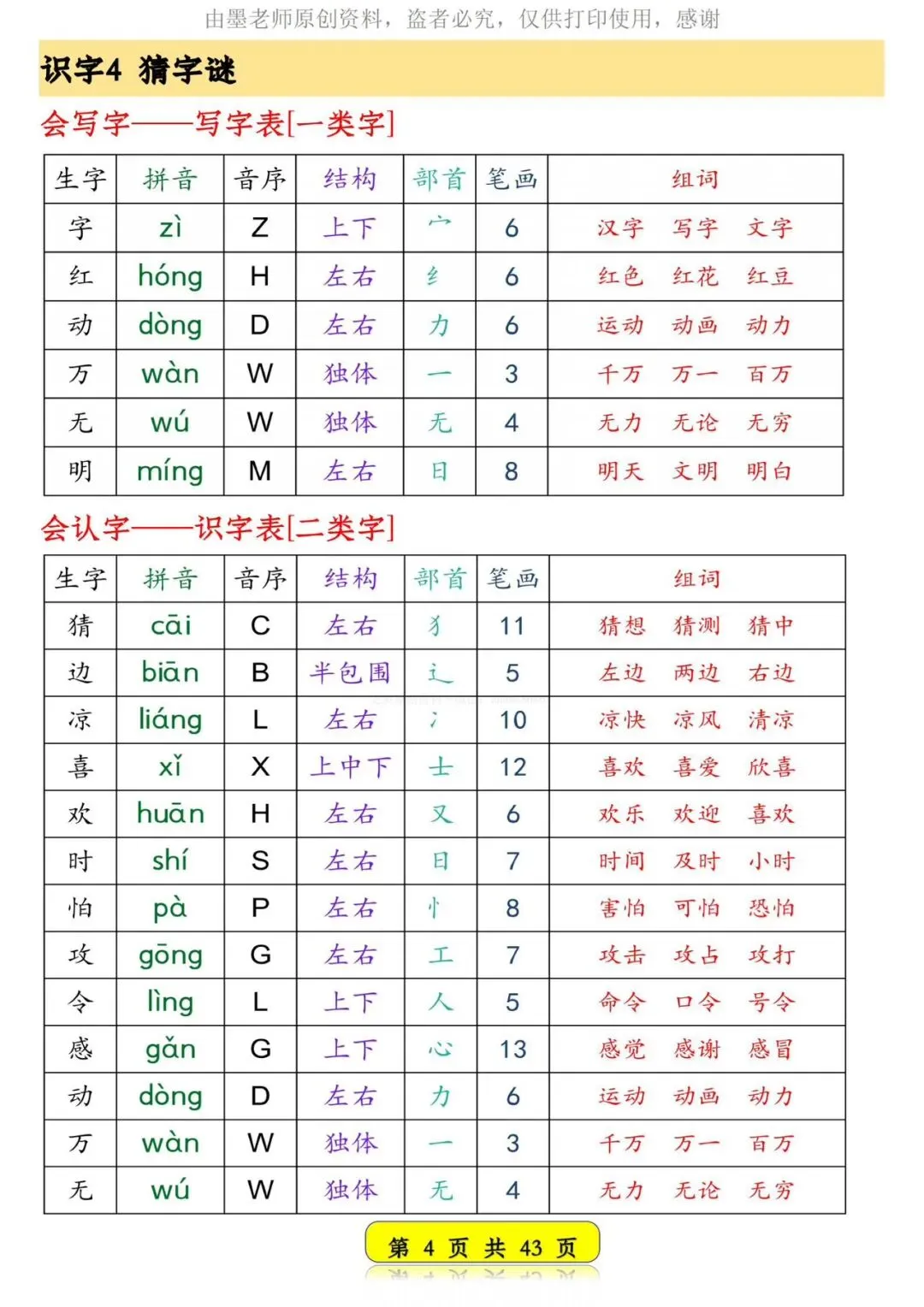 26春新版一年级语文下册生字音序预习卡【可打印】