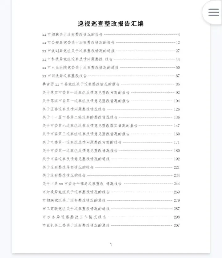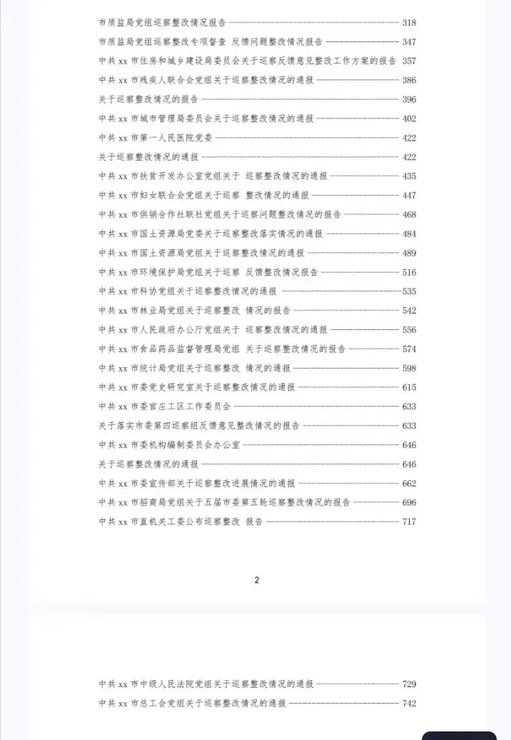 内容包括各地区、部门、单位的巡视巡察整改报告、通报、方案等,共766页,41万字,适合纪检监察、内控、合规、审计、学习参考。