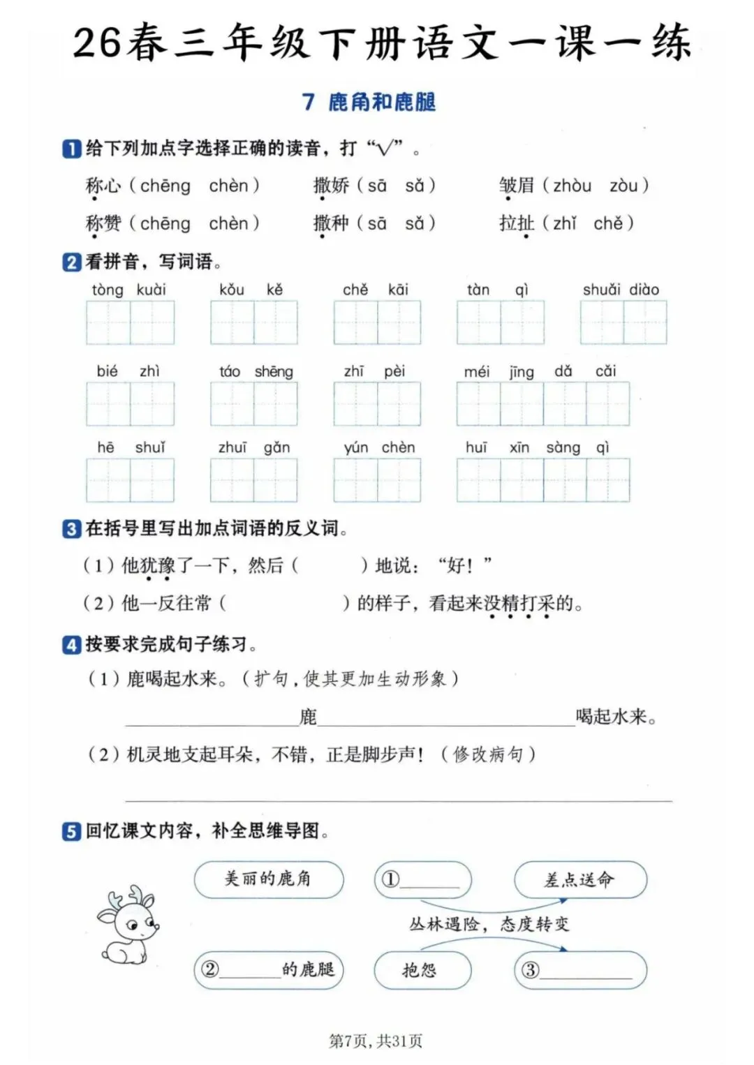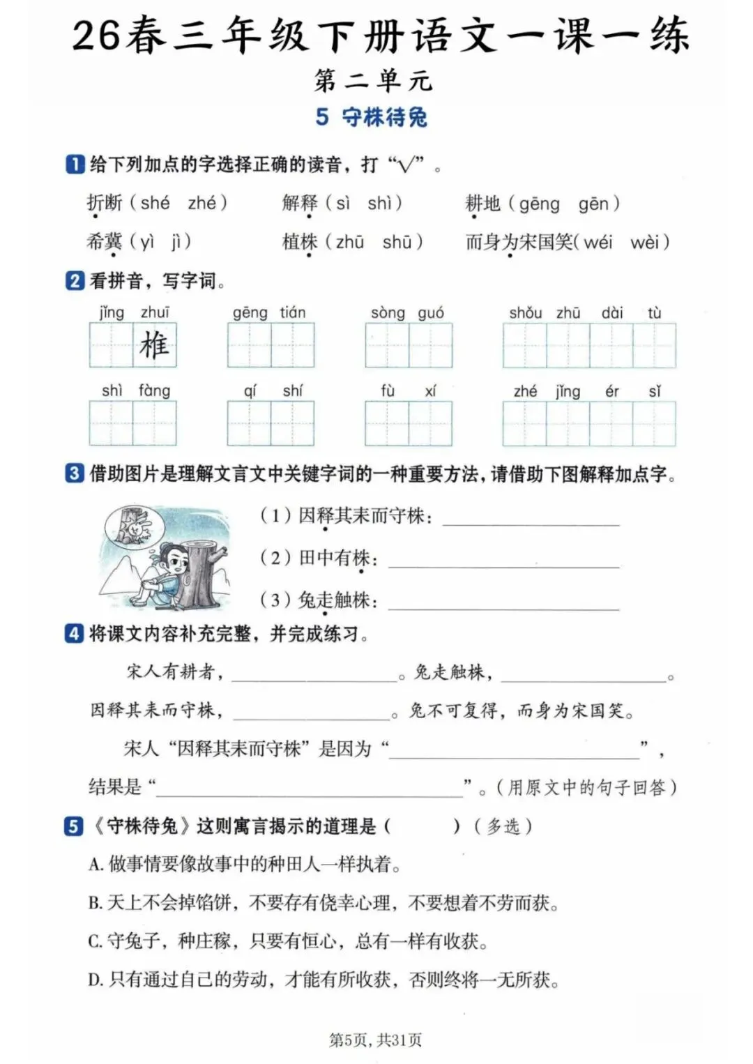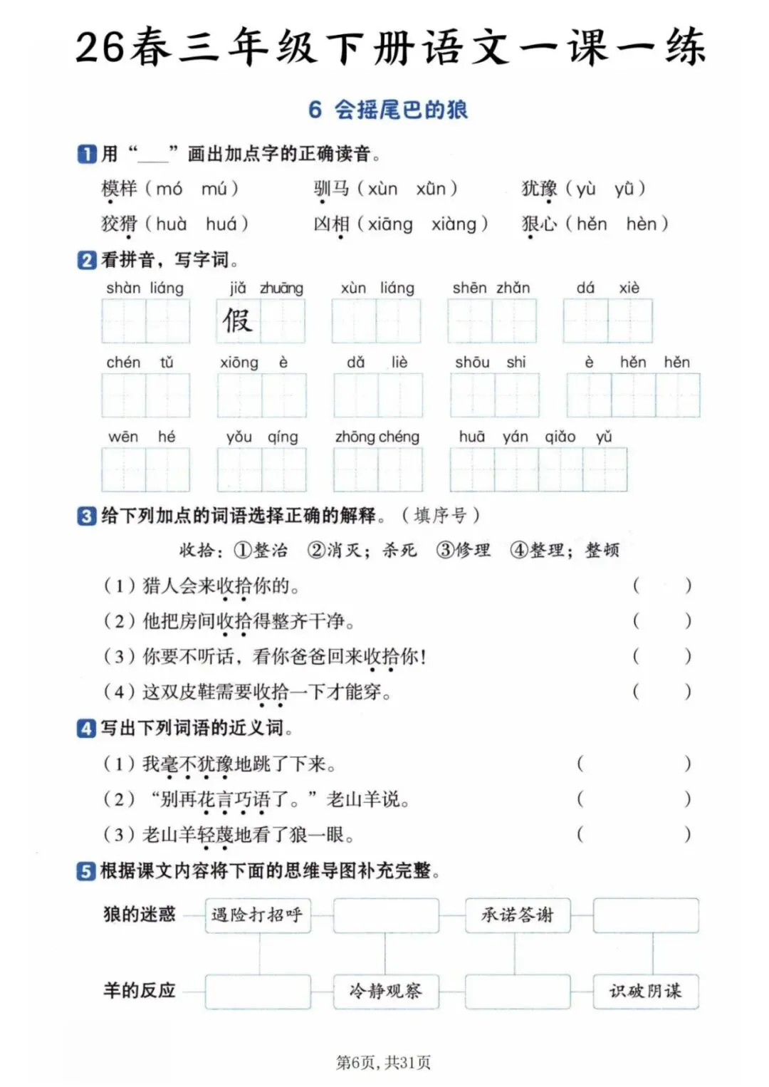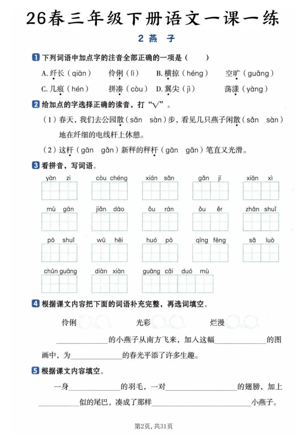 2026年春《三年级下册语文一课一练》电子版可打印