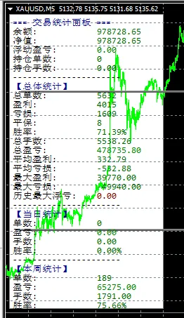 //+------------------------------------------------------------------+//| StatsPanel.mq4 |//| Generated by MetaEditor |//| https://www.mql5.com |//+------------------------------------------------------------------+#property copyright "狼人统计EA"#property link "https://www.example.com"#property version "1.00"#property strict#property description "交易统计面板 - 显示每日/每周/总体统计、胜率、手数、最大浮亏等 (MT4版)"// --- 输入参数 ---input int EA_MagicNumber = 20250306; // 唯一标识(用于保存历史最大浮亏)input int RefreshInterval = 1; // 刷新间隔(秒,0=随tick更新)input int PanelCorner = 0; // 角落(0左上,1右上,2左下,3右下)input int Xoffset = 10; // X偏移input int Yoffset = 20; // Y偏移input int FontSize = 9; // 字体大小input color TextColor = clrBlack; // 文字颜色input color PanelBgColor = C'245,245,245'; // 面板背景色input color TitleColor = clrDarkBlue; // 标题颜色input color ValueColor = clrDarkGreen; // 数值颜色// --- 全局变量 ---string Prefix; // 对象名前缀double gPeakBalance; // 历史最高余额double gMaxDrawdown; // 历史最大浮亏(金额)datetime gLastUpdate; // 上次更新时间(用于tick限流)//+------------------------------------------------------------------+//| 初始化函数 |//+------------------------------------------------------------------+intOnInit(){Prefix = "StatsPanel_" + IntegerToString(EA_MagicNumber) + "_";DeleteAllObjects(); // 清除旧对象// 读取或初始化峰值余额与最大浮亏string gvPeak = Prefix + "PeakBalance";string gvDD = Prefix + "MaxDrawdown";if(GlobalVariableCheck(gvPeak))gPeakBalance = GlobalVariableGet(gvPeak);elsegPeakBalance = AccountBalance();if(GlobalVariableCheck(gvDD))gMaxDrawdown = GlobalVariableGet(gvDD);elsegMaxDrawdown = 0.0;// 创建面板背景和所有标签CreatePanel();// 设置定时器if(RefreshInterval > 0)EventSetTimer(RefreshInterval);gLastUpdate = 0;return(INIT_SUCCEEDED);}//+------------------------------------------------------------------+//| 退出函数 |//+------------------------------------------------------------------+voidOnDeinit(constint reason){if(RefreshInterval > 0)EventKillTimer();DeleteAllObjects();}//+------------------------------------------------------------------+//| Timer 事件 |//+------------------------------------------------------------------+voidOnTimer(){RefreshStats();}//+------------------------------------------------------------------+//| Tick 事件 |//+------------------------------------------------------------------+voidOnTick(){if(RefreshInterval <= 0){// 控制最小更新间隔0.5秒,避免过度消耗CPUif(TimeCurrent() - gLastUpdate >= 0.5){RefreshStats();gLastUpdate = TimeCurrent();}}}//+------------------------------------------------------------------+//| 刷新统计数据并更新面板 |//+------------------------------------------------------------------+voidRefreshStats(){// --- 更新峰值余额与最大浮亏 ---double balance = AccountBalance();double equity = AccountEquity();if(balance > gPeakBalance)gPeakBalance = balance; // 余额创新高double drawdown = (gPeakBalance > equity) ? (gPeakBalance - equity) : 0.0;if(drawdown > gMaxDrawdown)gMaxDrawdown = drawdown; // 更新最大浮亏// 保存到全局变量(持久化)GlobalVariableSet(Prefix + "PeakBalance", gPeakBalance);GlobalVariableSet(Prefix + "MaxDrawdown", gMaxDrawdown);// --- 计算统计 ---datetime now = TimeCurrent();// 当日0点MqlDateTime dt;TimeToStruct(now, dt);dt.hour = 0; dt.min = 0; dt.sec = 0;datetime day_start = StructToTime(dt);// 本周一0点int days_from_monday = (dt.day_of_week == 0) ? 6 : dt.day_of_week - 1; // 周日=0 -> 距周一6天datetime week_start = day_start - days_from_monday * 24 * 60 * 60;// --- 总体统计 (所有历史) ---int totalHist = OrdersHistoryTotal(); // MT4方式获取历史订单总数int totalTrades = 0, winTrades = 0, lossTrades = 0, breakEvenTrades = 0;double totalLots = 0.0, totalProfit = 0.0;double maxWin = 0.0, maxLoss = 0.0;double sumWin = 0.0, sumLoss = 0.0;for(int i = 0; i < totalHist; i++){if(OrderSelect(i, SELECT_BY_POS, MODE_HISTORY)){// 仅统计已平仓的市场单 (排除挂单)if(OrderCloseTime() > 0 && (OrderType() == OP_BUY || OrderType() == OP_SELL)){double profit = OrderProfit();double lots = OrderLots();totalTrades++;totalLots += lots;totalProfit += profit;if(profit > 0.0){winTrades++;sumWin += profit;if(profit > maxWin) maxWin = profit;}else if(profit < 0.0){lossTrades++;sumLoss += profit; // 负值if(profit < maxLoss) maxLoss = profit; // 更负}else{breakEvenTrades++;}}}}// 平均盈亏double avgWin = (winTrades > 0) ? sumWin / winTrades : 0.0;double avgLoss = (lossTrades > 0) ? sumLoss / lossTrades : 0.0;// 胜率double winRate = (winTrades + lossTrades > 0) ? (double)winTrades / (winTrades + lossTrades) * 100.0 : 0.0;// --- 当日统计 ---int dayCount = 0, dayWin = 0, dayLoss = 0;double dayLots = 0.0, dayProfit = 0.0;// 需要遍历所有历史订单,筛选出平仓时间在当日之后的for(int i = 0; i < OrdersHistoryTotal(); i++){if(OrderSelect(i, SELECT_BY_POS, MODE_HISTORY)){if(OrderCloseTime() > 0 && (OrderType() == OP_BUY || OrderType() == OP_SELL)){datetime closeTime = OrderCloseTime();if(closeTime >= day_start && closeTime <= now) // 确保在当日范围内{double p = OrderProfit();dayCount++;dayLots += OrderLots();dayProfit += p;if(p > 0) dayWin++;else if(p < 0) dayLoss++;}}}}double dayWinRate = (dayWin + dayLoss > 0) ? (double)dayWin / (dayWin + dayLoss) * 100.0 : 0.0;// --- 本周统计 ---int weekCount = 0, weekWin = 0, weekLoss = 0;double weekLots = 0.0, weekProfit = 0.0;for(int i = 0; i < OrdersHistoryTotal(); i++){if(OrderSelect(i, SELECT_BY_POS, MODE_HISTORY)){if(OrderCloseTime() > 0 && (OrderType() == OP_BUY || OrderType() == OP_SELL)){datetime closeTime = OrderCloseTime();if(closeTime >= week_start && closeTime <= now){double p = OrderProfit();weekCount++;weekLots += OrderLots();weekProfit += p;if(