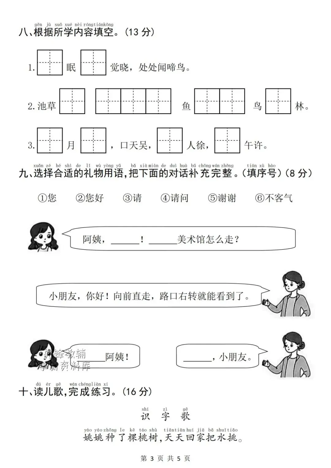 2026年春《一年级下册语文质量检测卷》电子版可打印 点击蓝字,关注我们 (温馨提示:文末有领取方式) (因篇幅有限,仅展示部分内容) 完整电子版: 左下角点击“关zhu “ 点我头像,在对话框输入:0306
