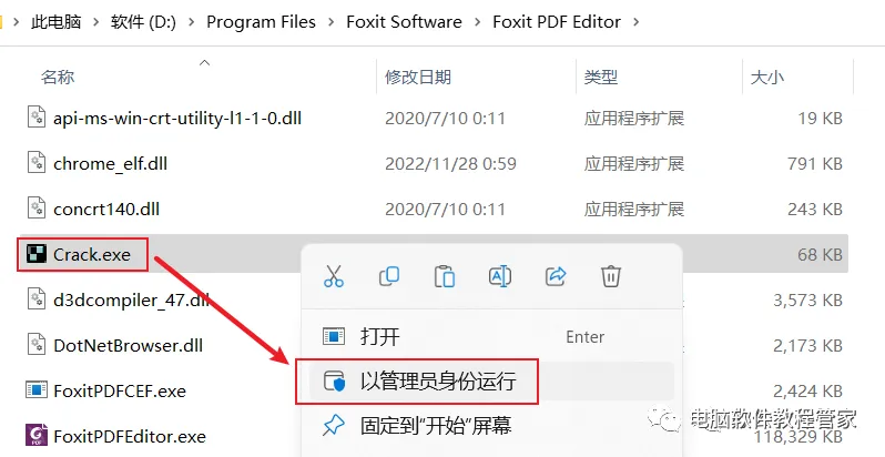 2、选中”Foxit PDF Editor Pro v12.1.exe“右键以管理员身份运行
