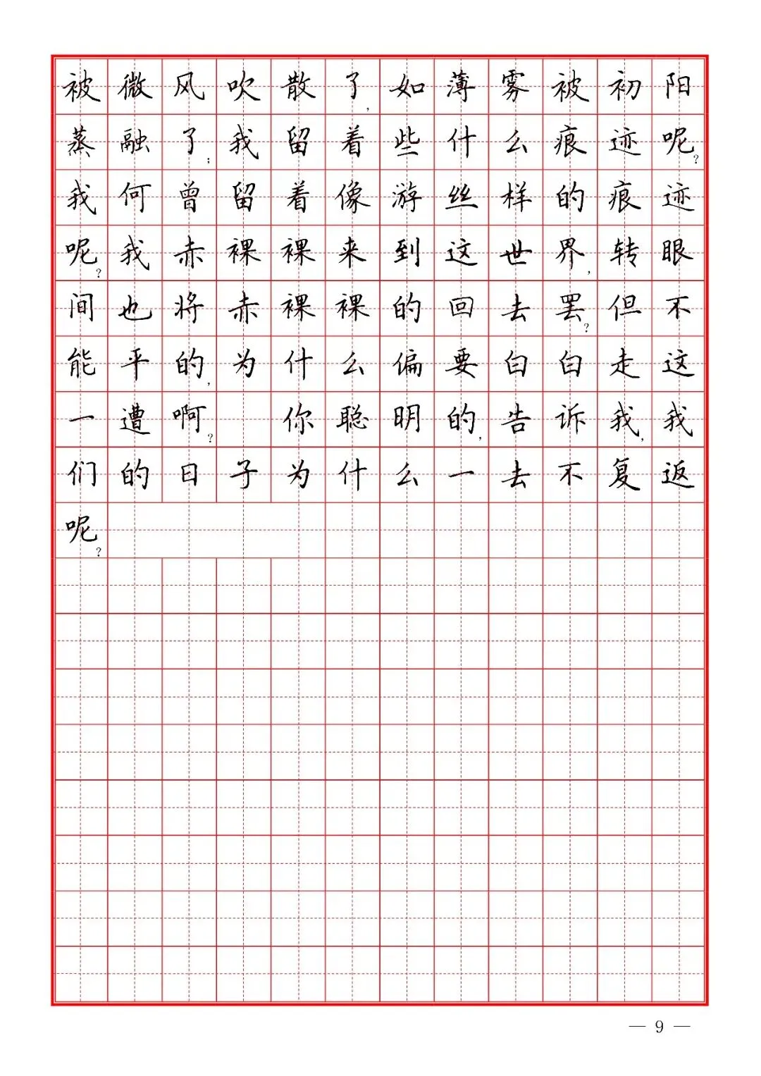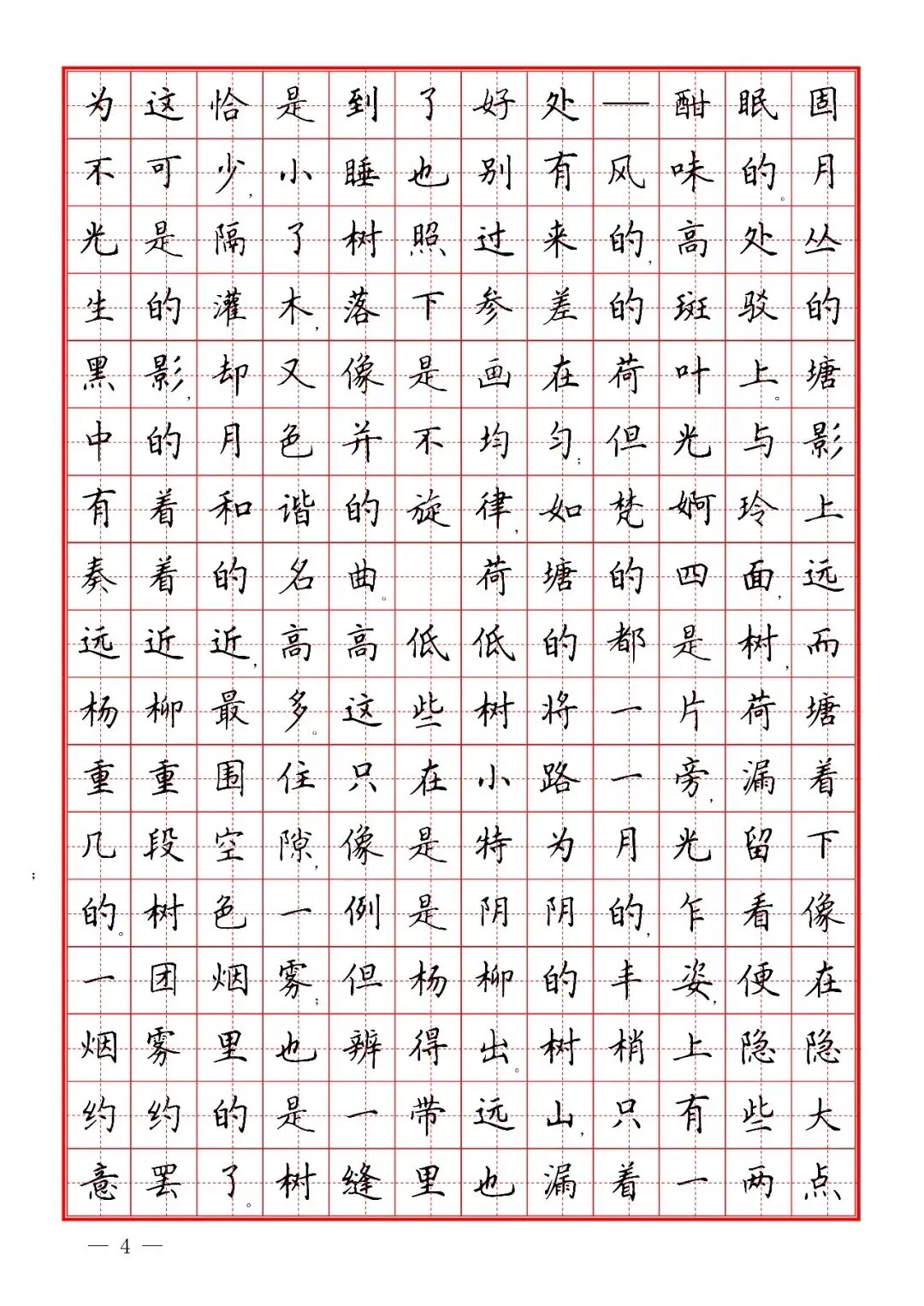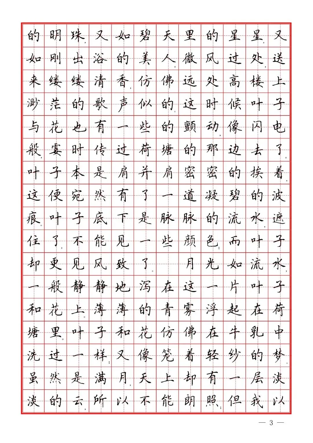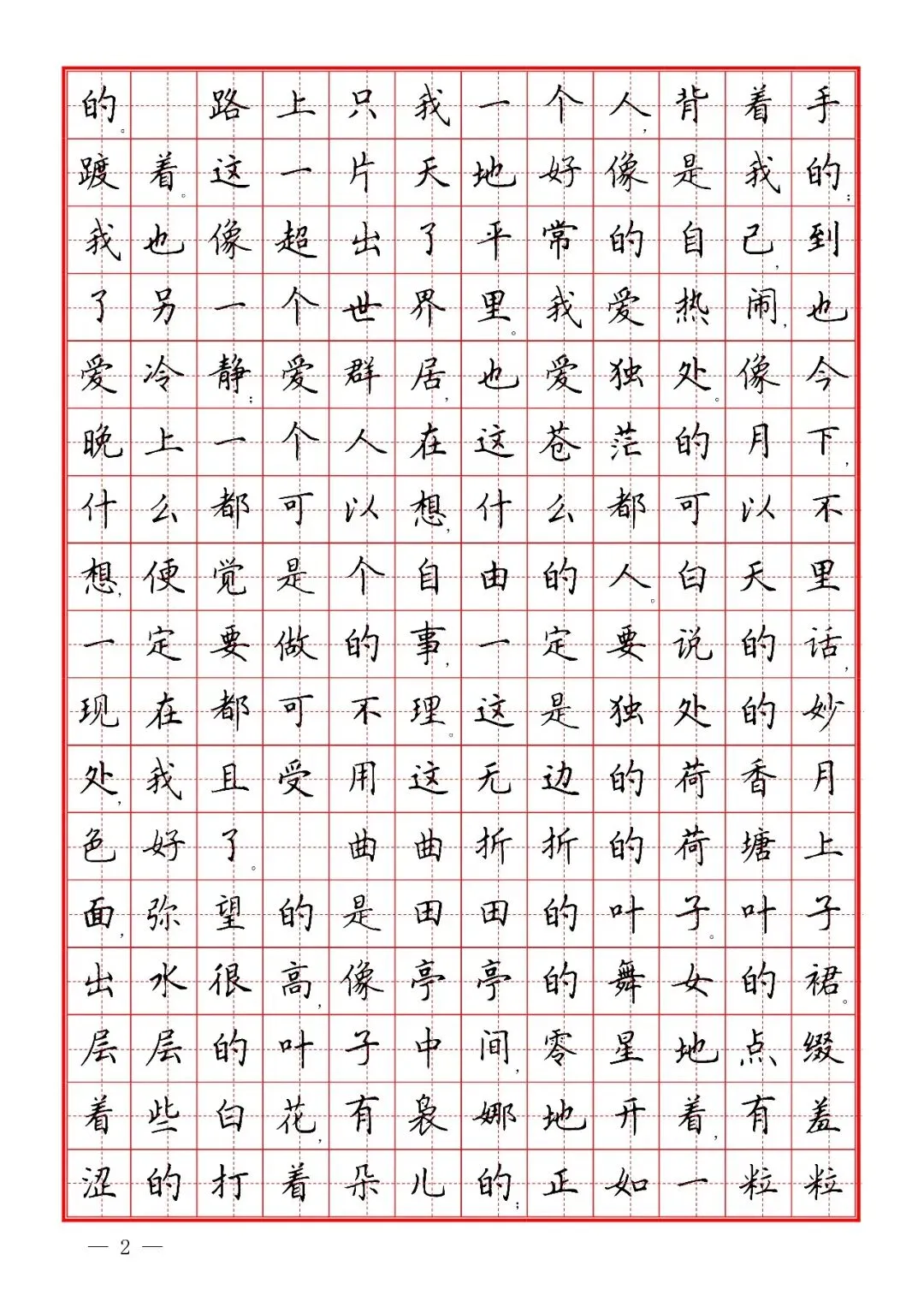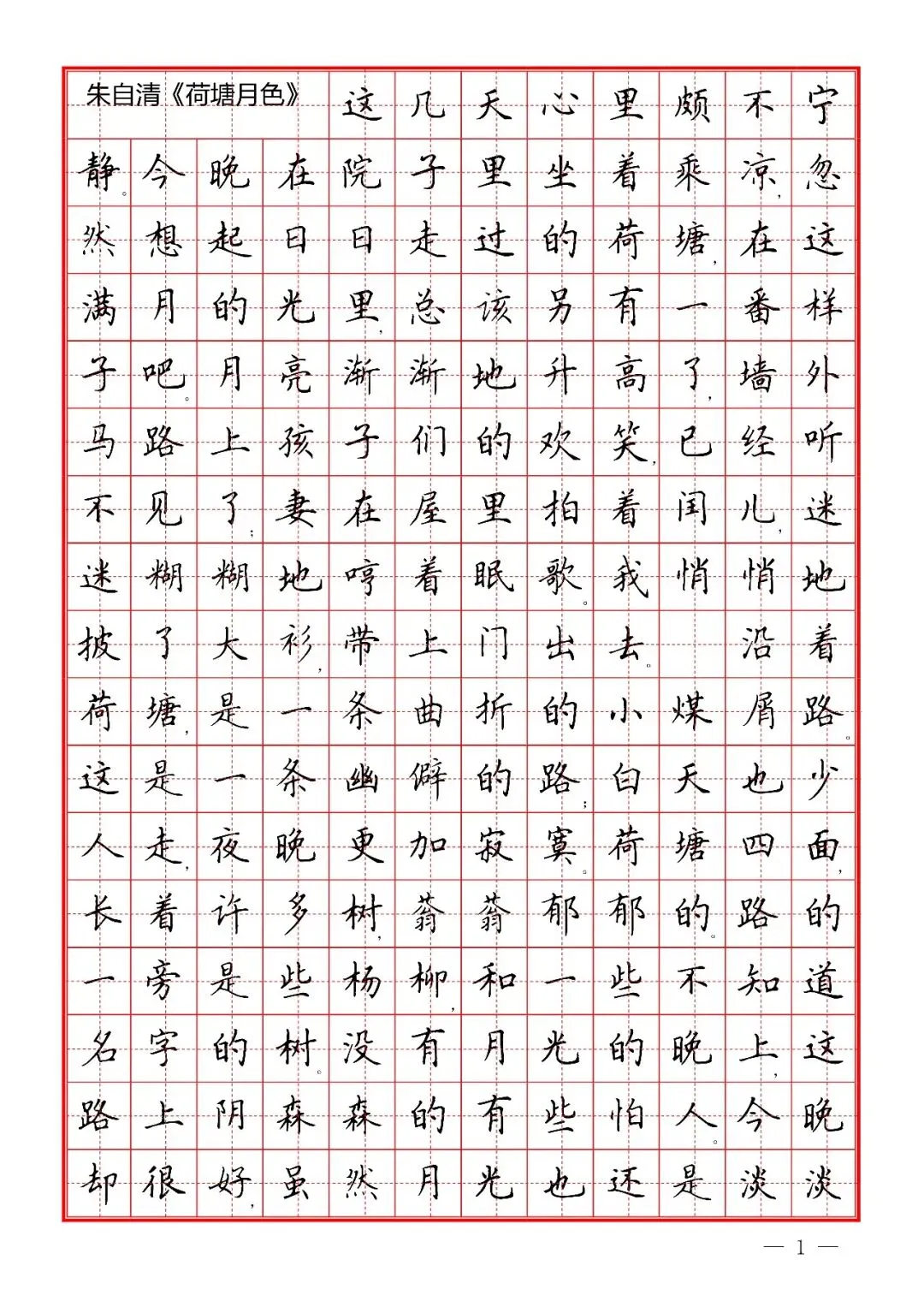 朱自清《荷塘月色》楷书字帖,PDF免费下载 通过网盘分享的文件:02 楷书散文字帖.pdf 链接: https://pan.baidu.com/s/1f1xCgVyx7PsNLZQsbIc1Ag 提取码: urpy