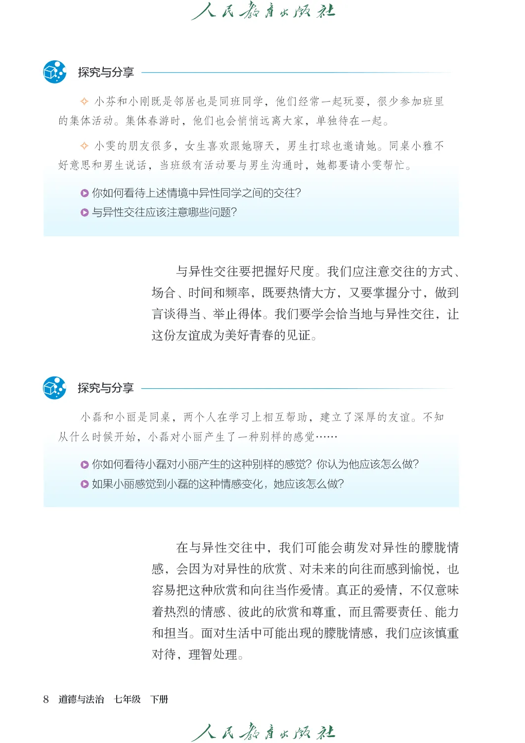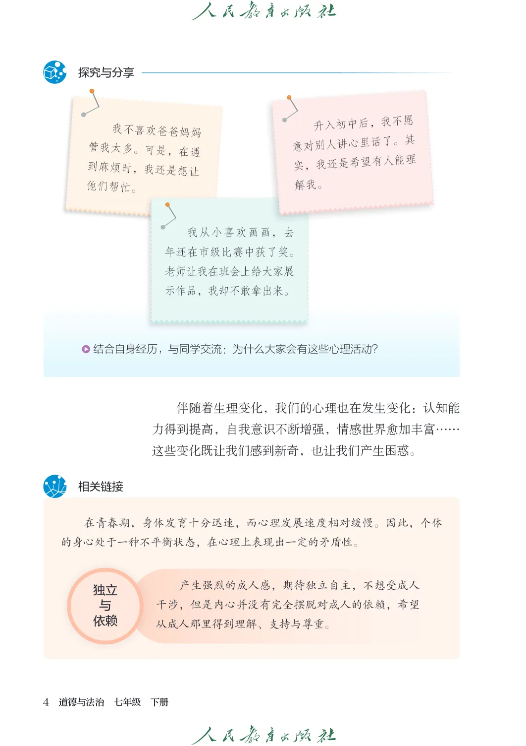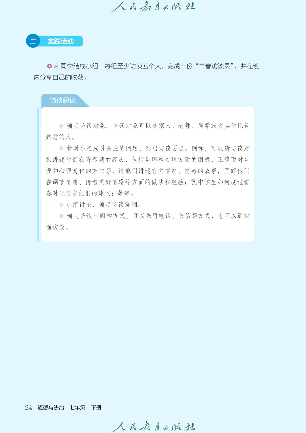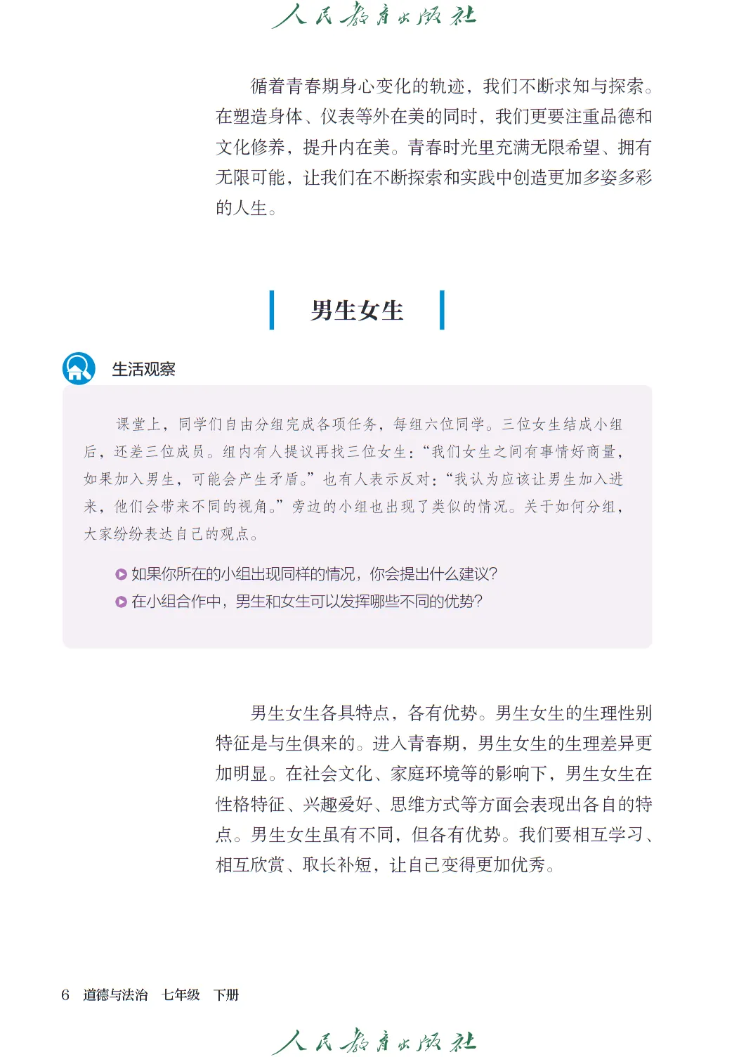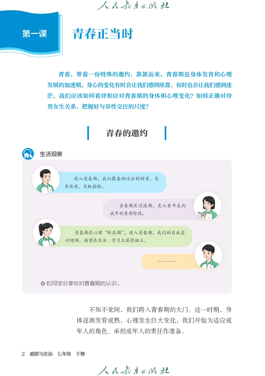 【道德与法治 电子课本(人教版 )】七年级下册,2025版(免下载,完整版) 人教版 道德与法治七年级下册 关注本公众号,可以查看7-9年级 道德与法治课本 人教版 道德与法治七年级下册 关注本公众号,可以查看7-9年级 道德与法治课本 (本文内容来源于网络,仅供学习交流,版权归原作者所有!如有侵权请后台联系,感恩您的包容和理解!)