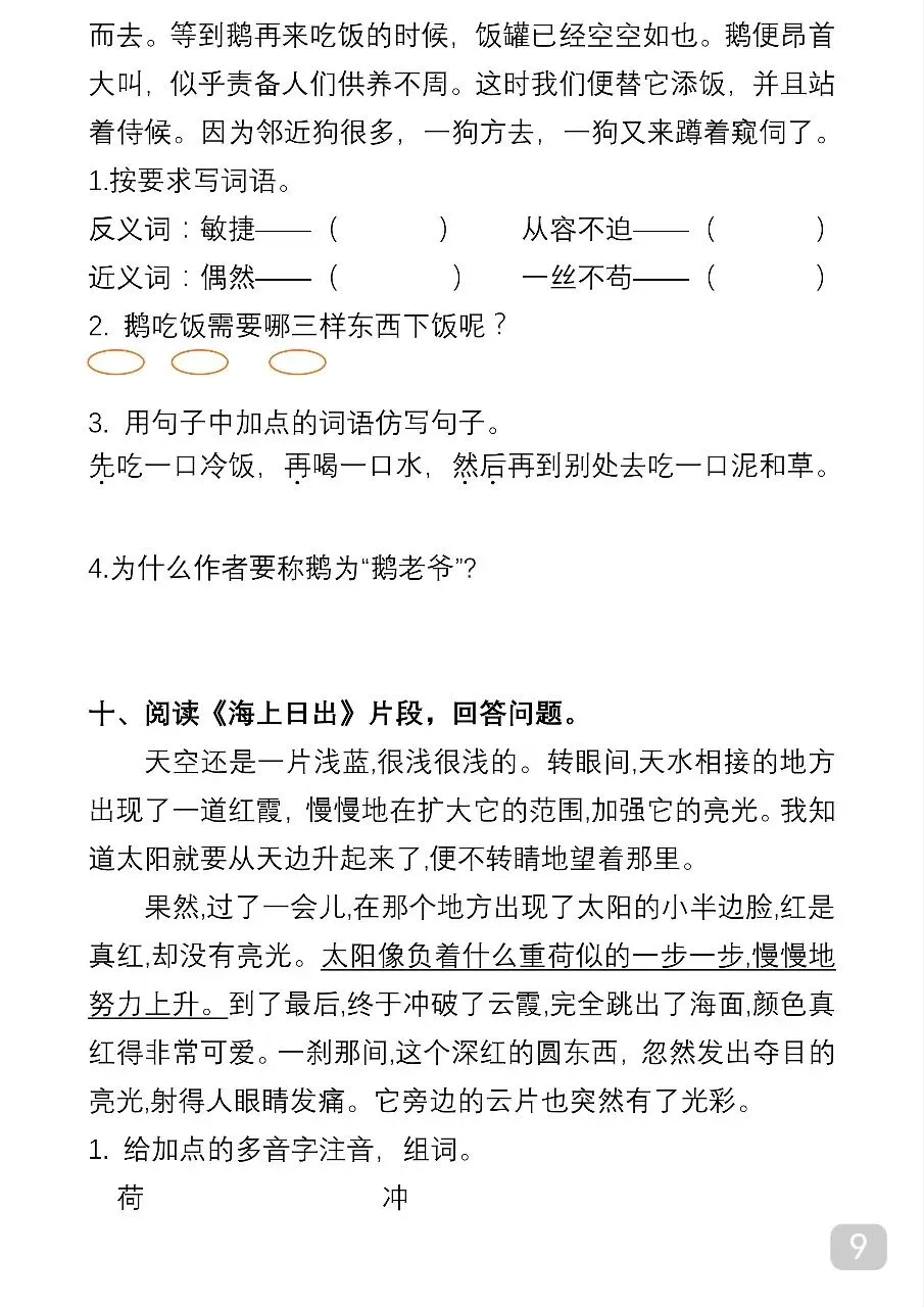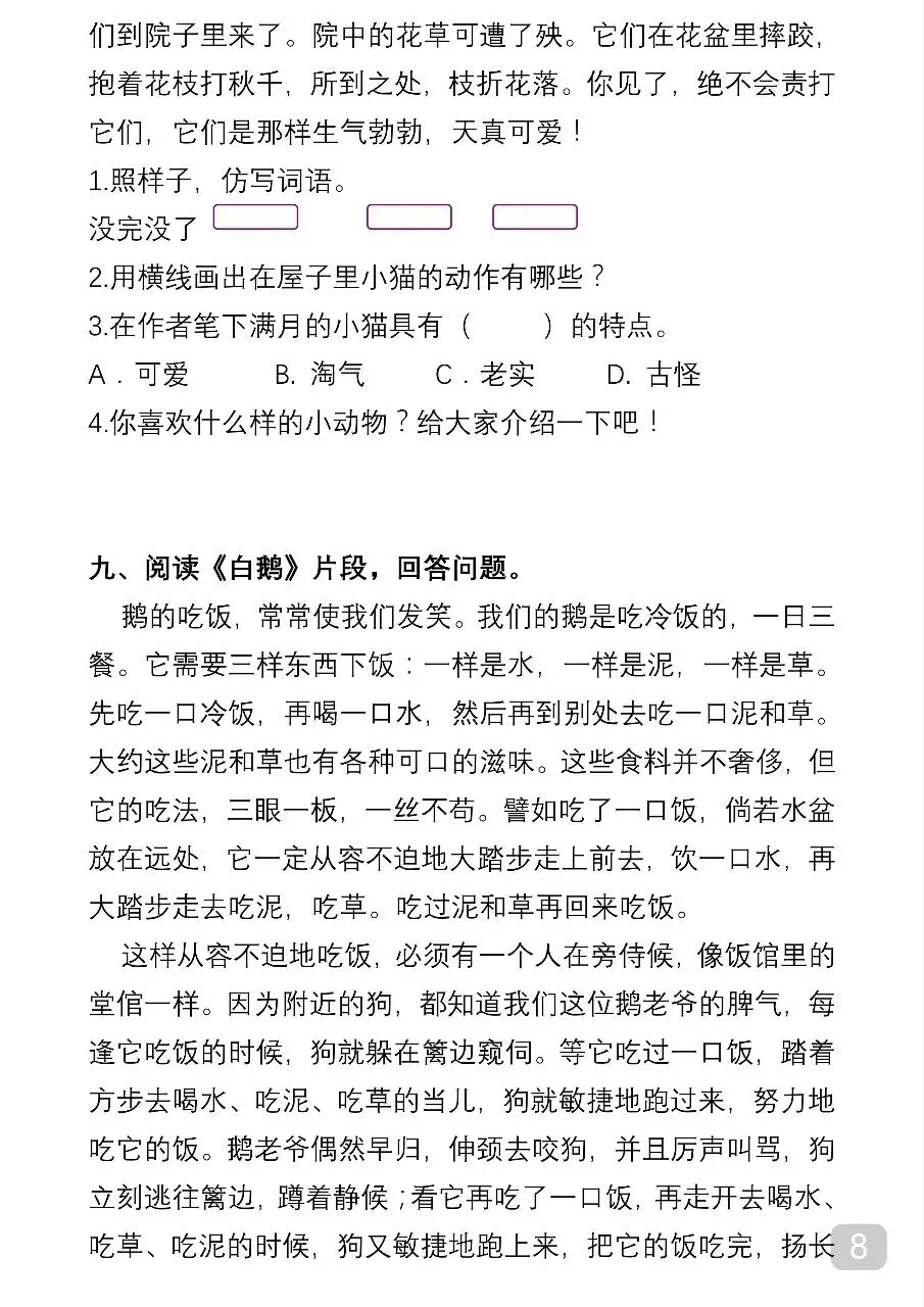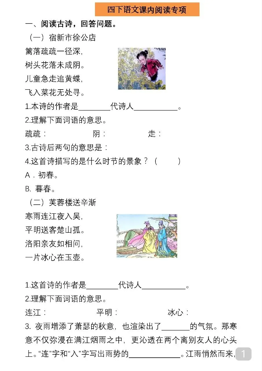 四年级(下)语文 课内阅读理解专项.pdf
