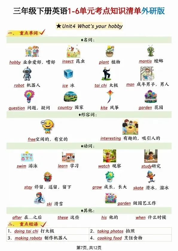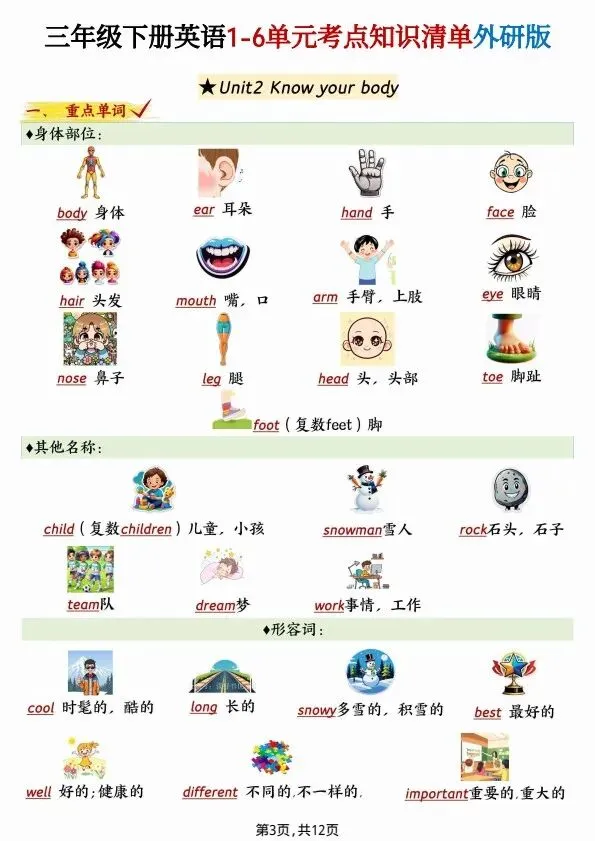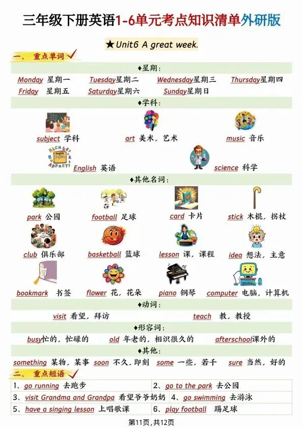 今日分享2026新三年级下册英语(外研版)1-6单元考点知识清单(完整电子版可打印)!高清电子版可直接打印,排版规整适配练习,不用费心整理,孩子每日一练夯实基础,家长辅导省心!