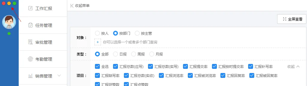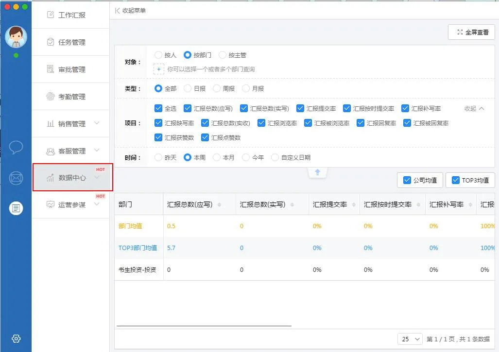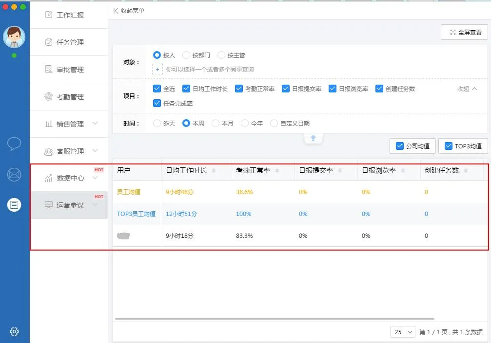 据哨子CEO海爷介绍,他们让大数据办公系统中的统计报表自动、实时生成,比如管理层想查看各部门考勤情况,就可以直接打开“运营参谋”,从中勾选选择“考勤正常率”,就可以实时查看数据。