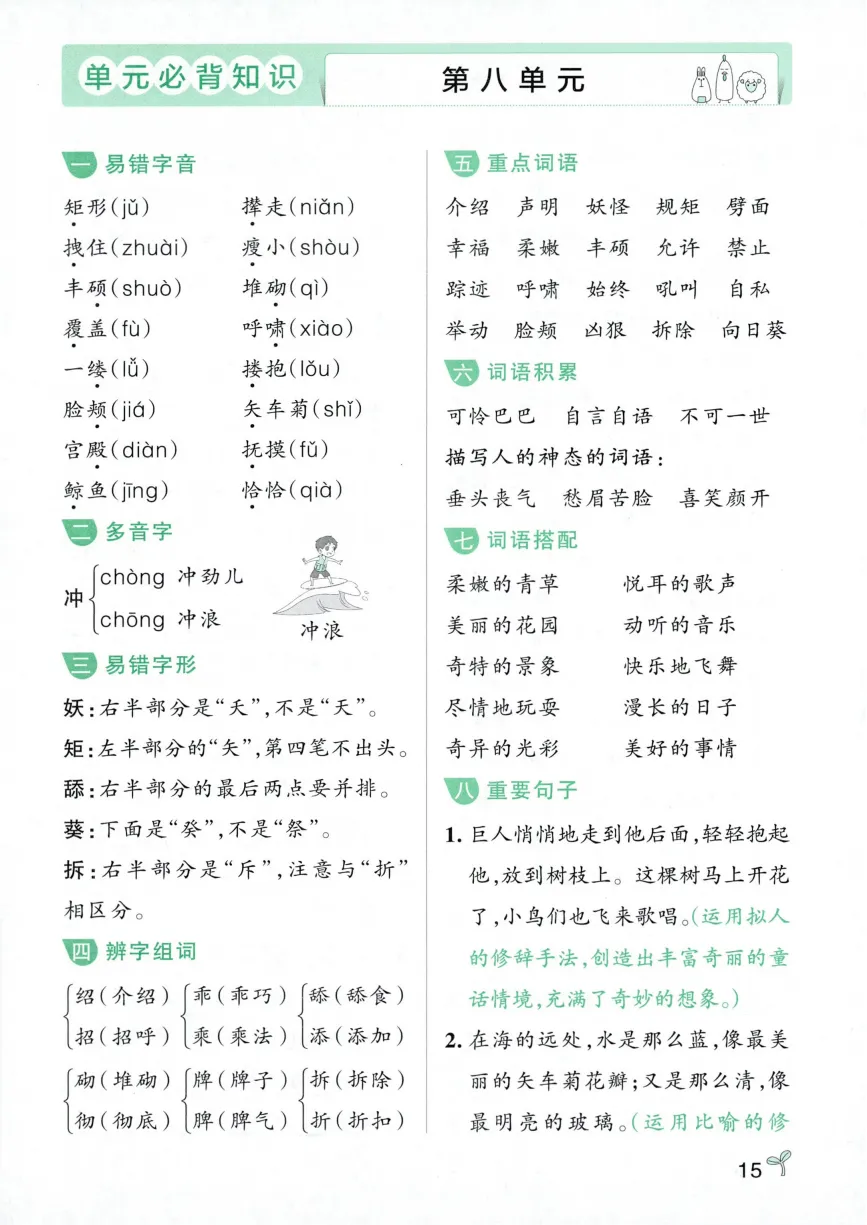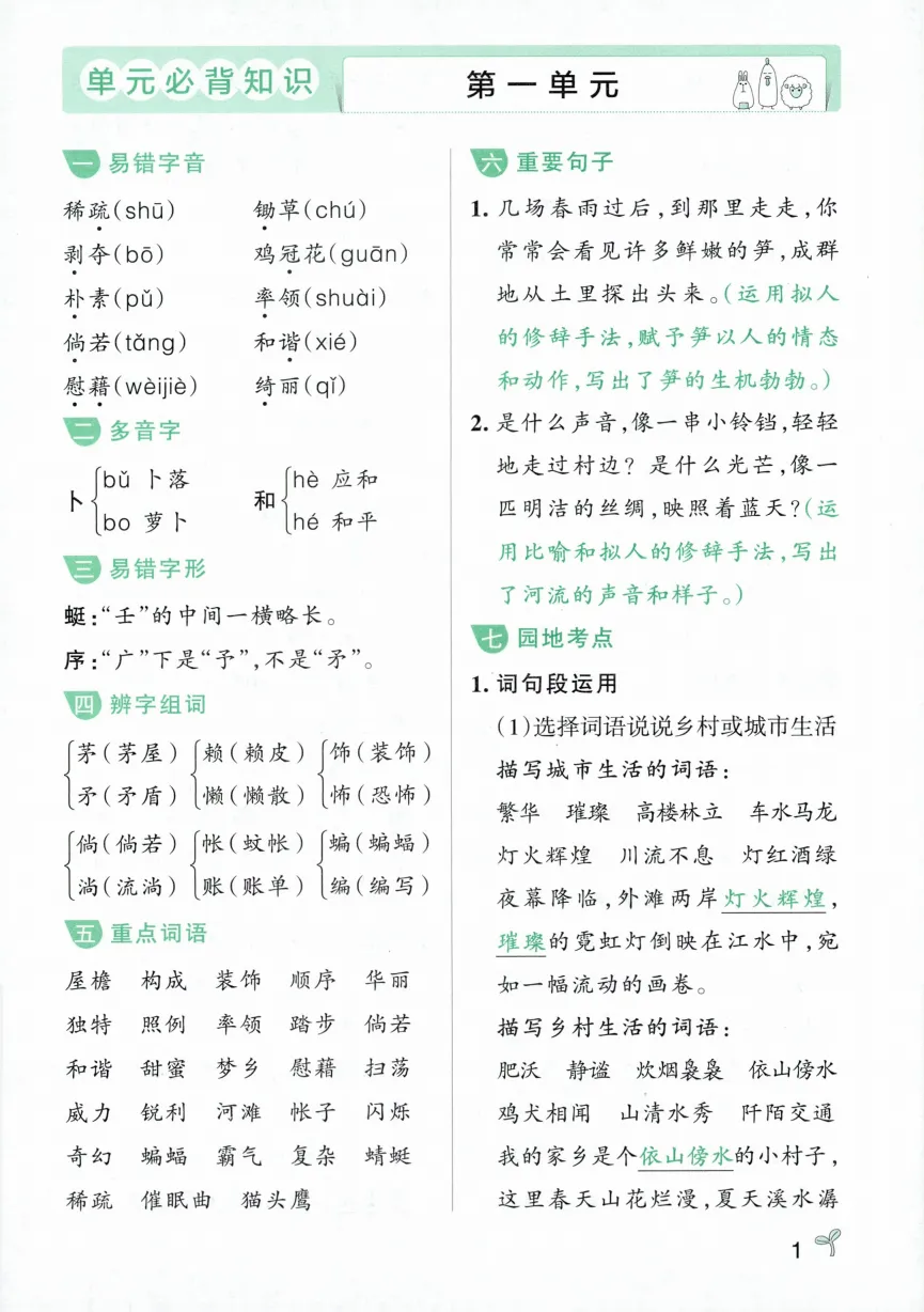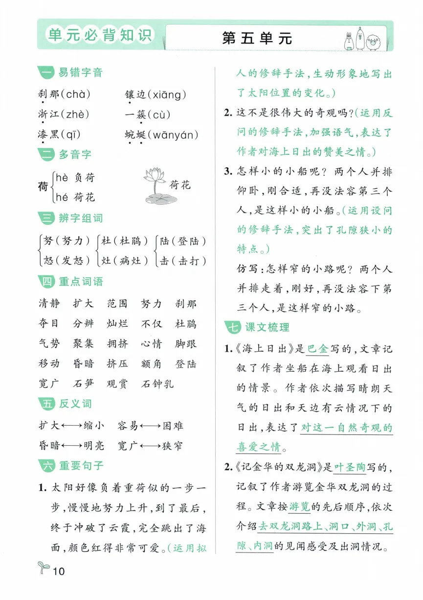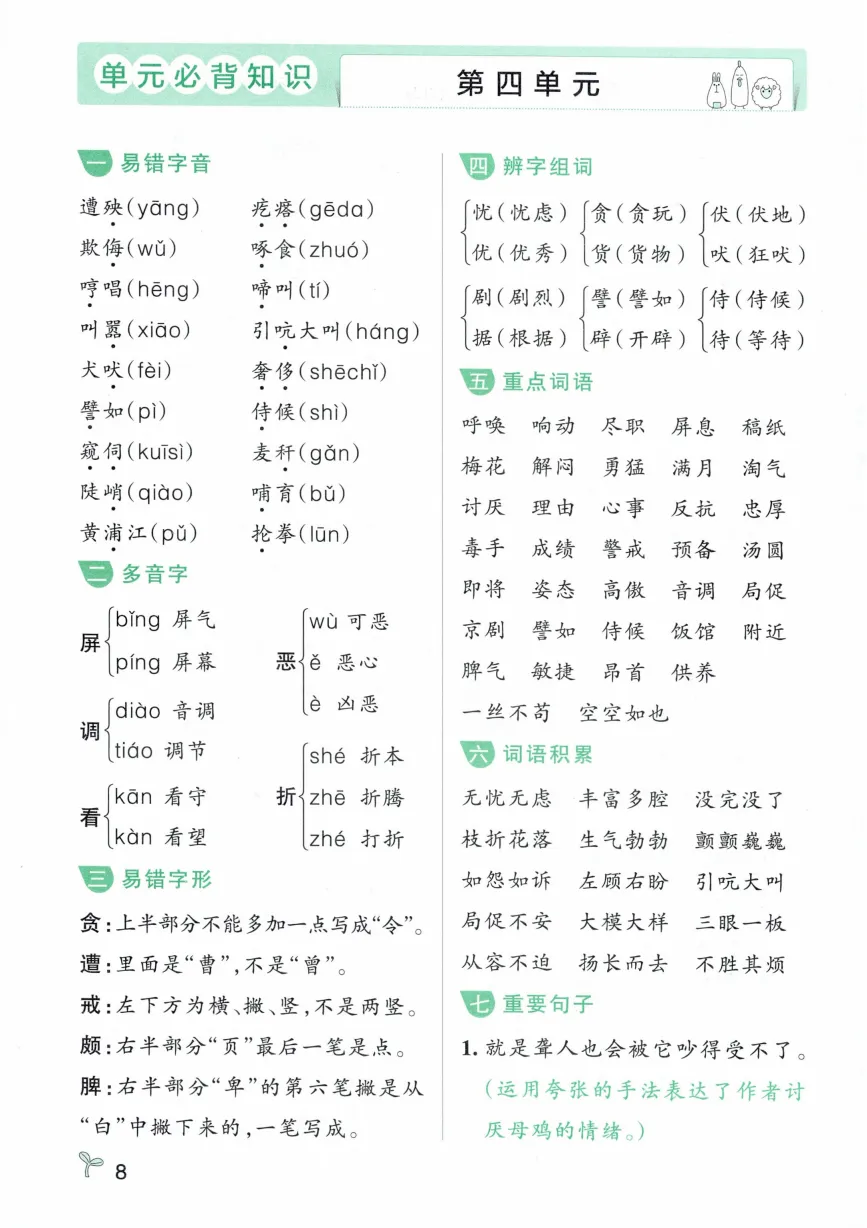 四年级下册语文常考知识速记卡|电子版可打印
