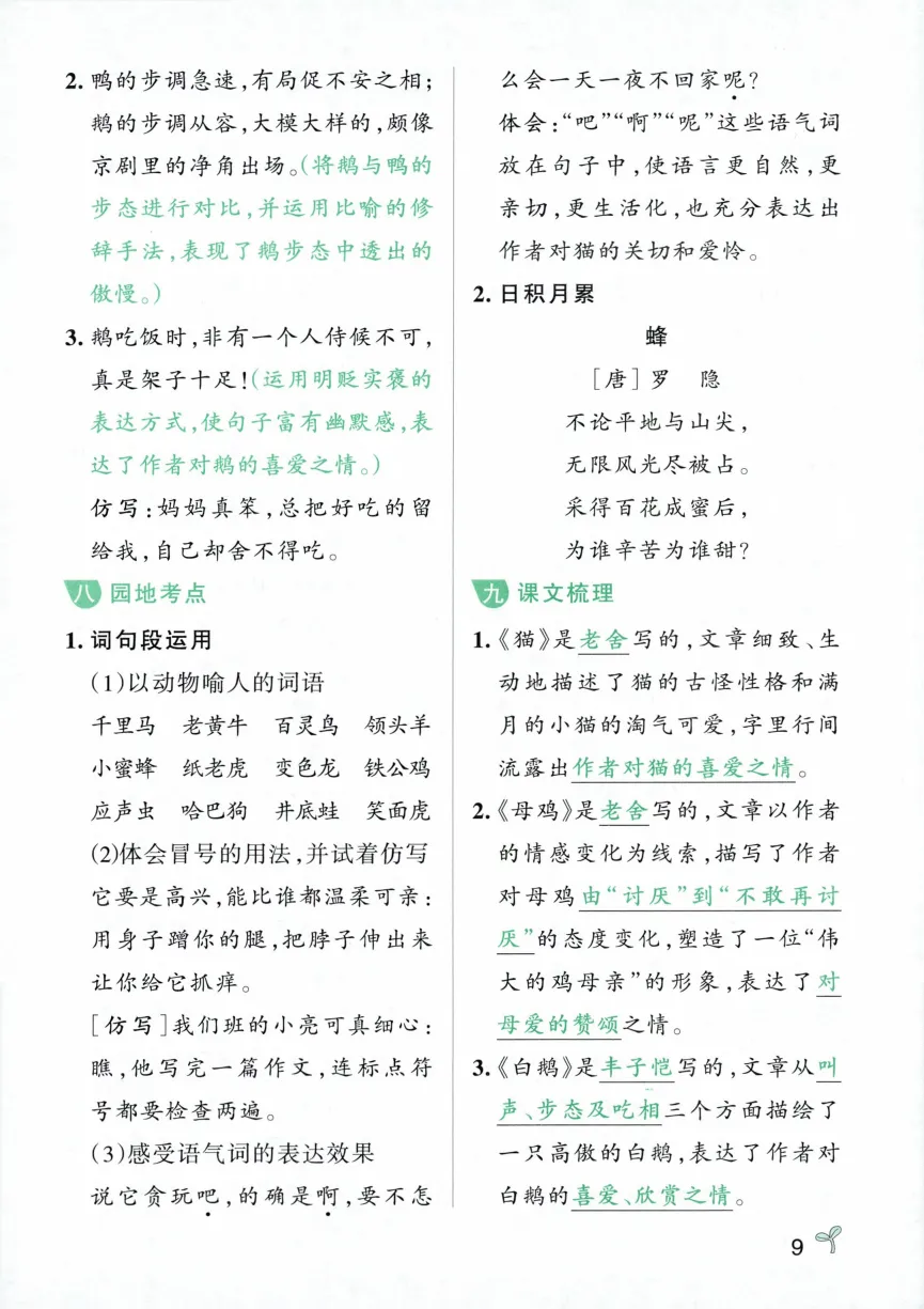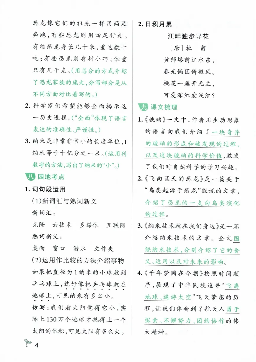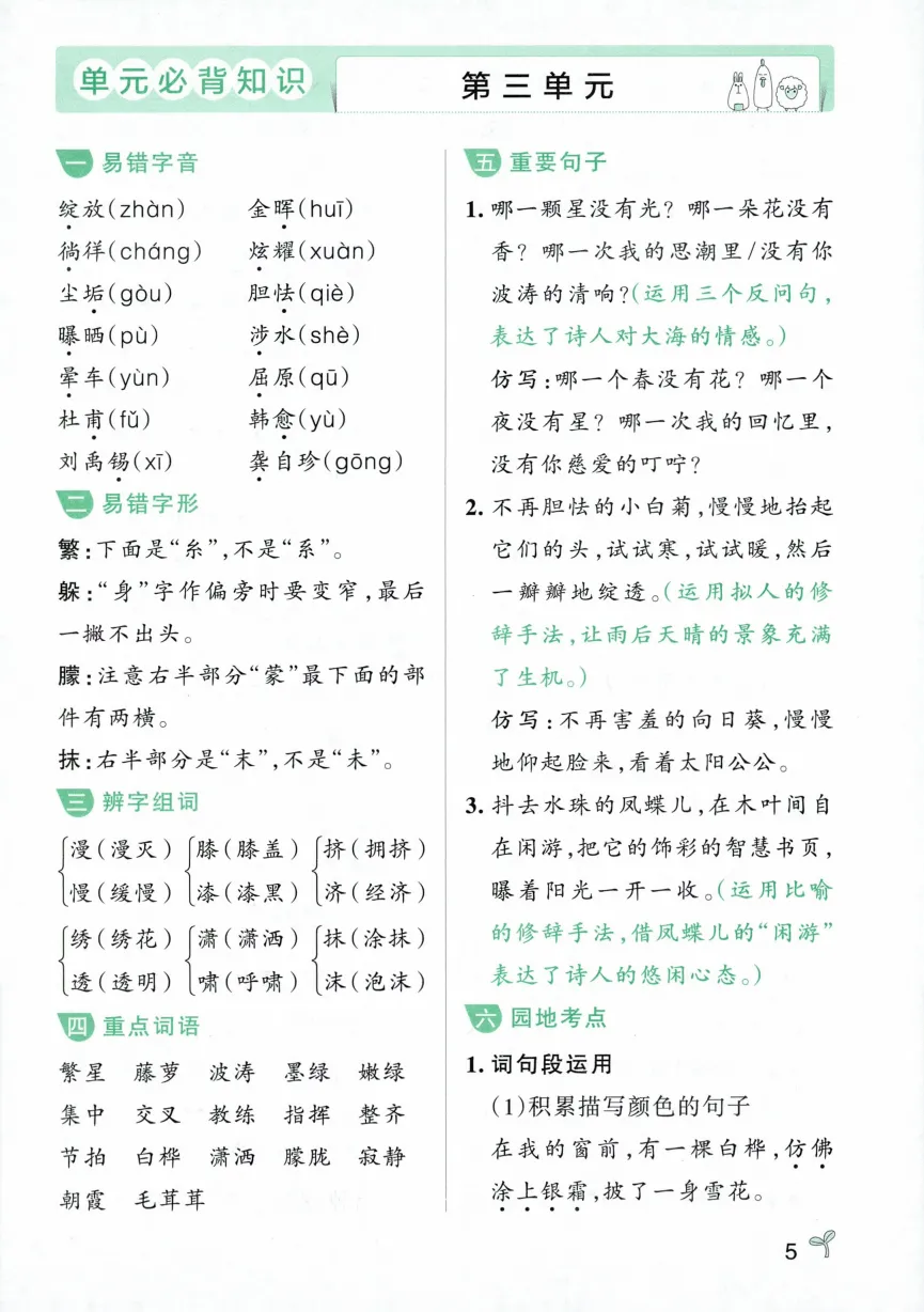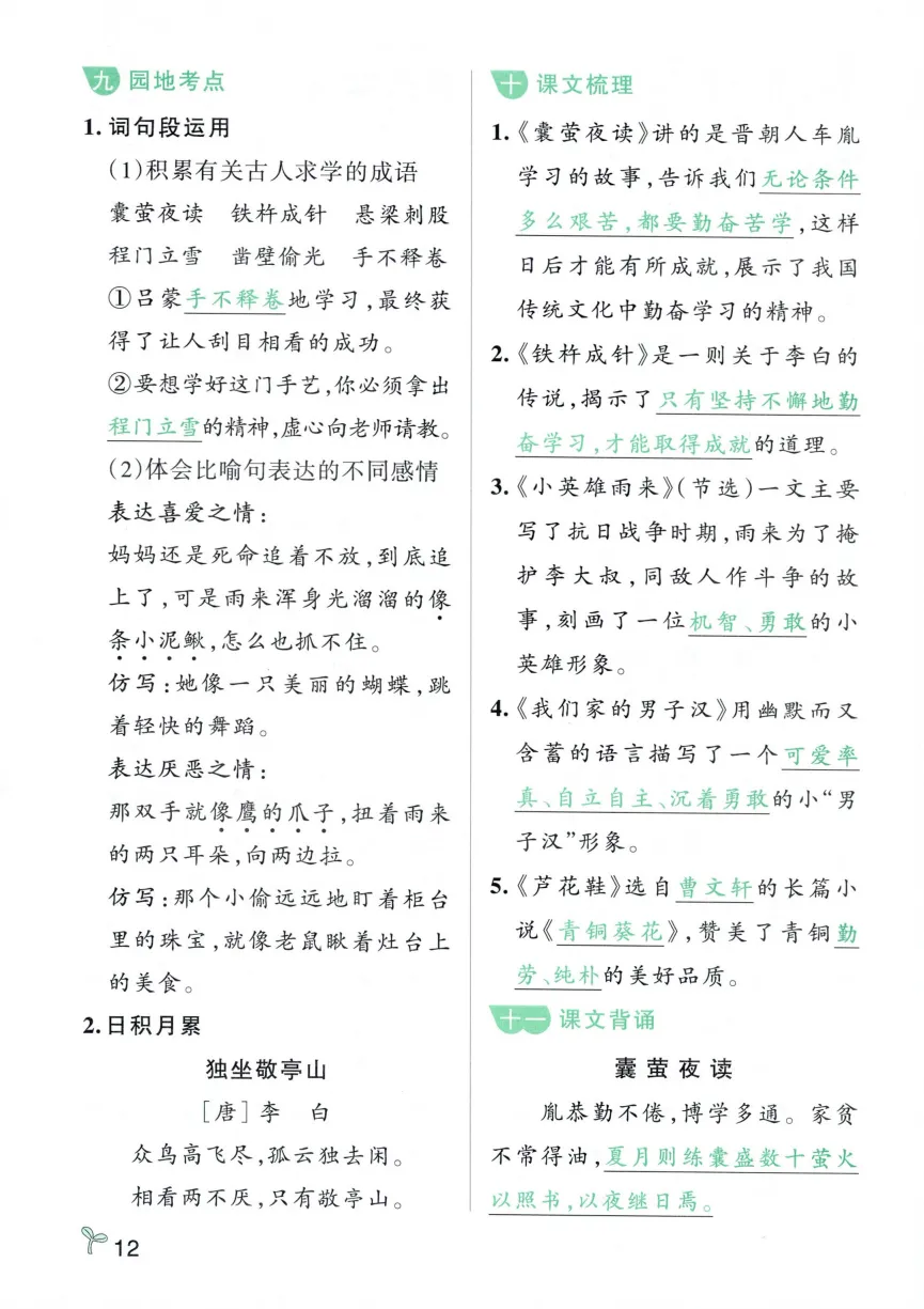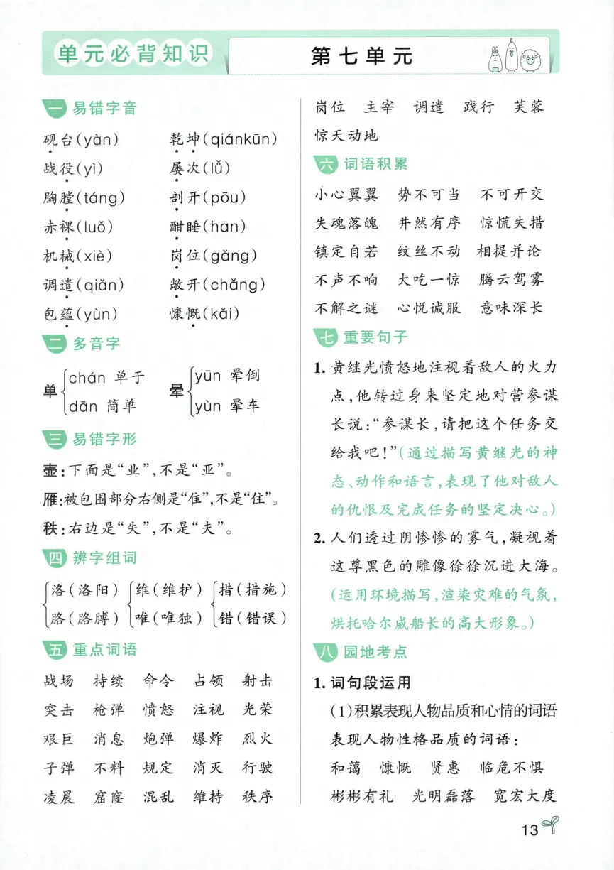 四年级下册语文常考知识速记卡|电子版可打印