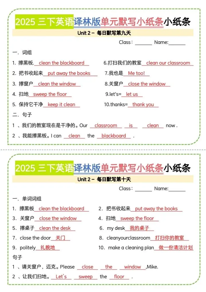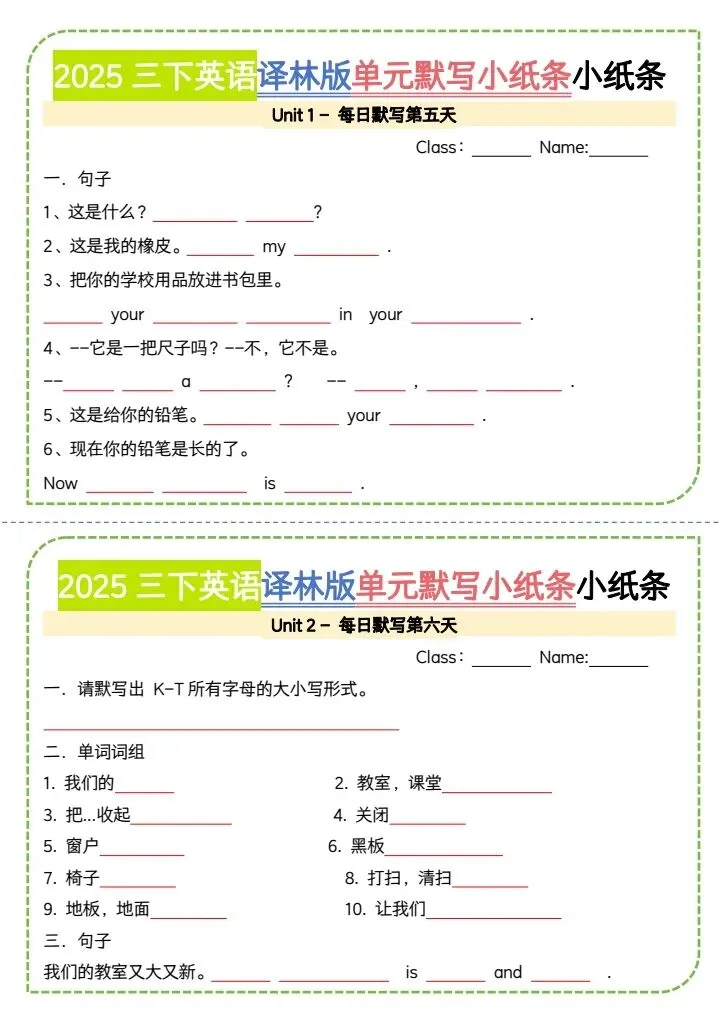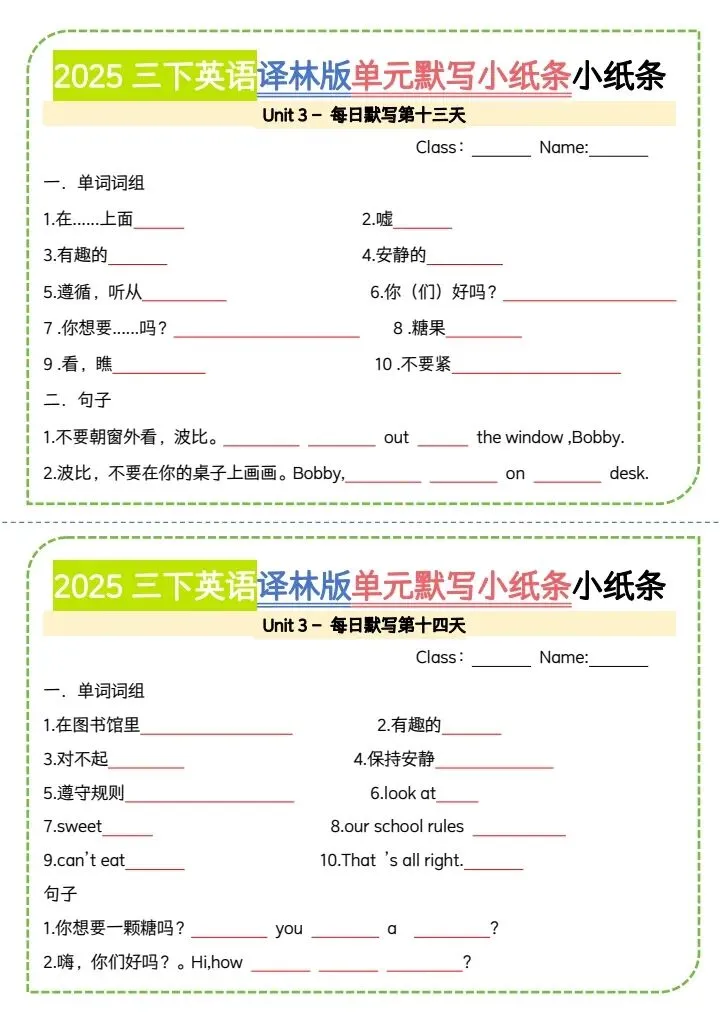 三年级下册(译林版)英语教材单词笔记+单词默写小纸条(完整电子版可打印)