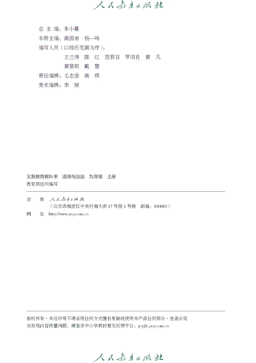 【道德与法治 电子课本(人教版 )】九年级上册,2018版(免下载,完整版) 人教版 道德与法治九年级上册 关注本公众号,可以查看7-9年级 道德与法治课本 人教版 道德与法治九年级上册 关注本公众号,可以查看7-9年级 道德与法治课本 (本文内容来源于网络,仅供学习交流,版权归原作者所有!如有侵权请后台联系,感恩您的包容和理解!)