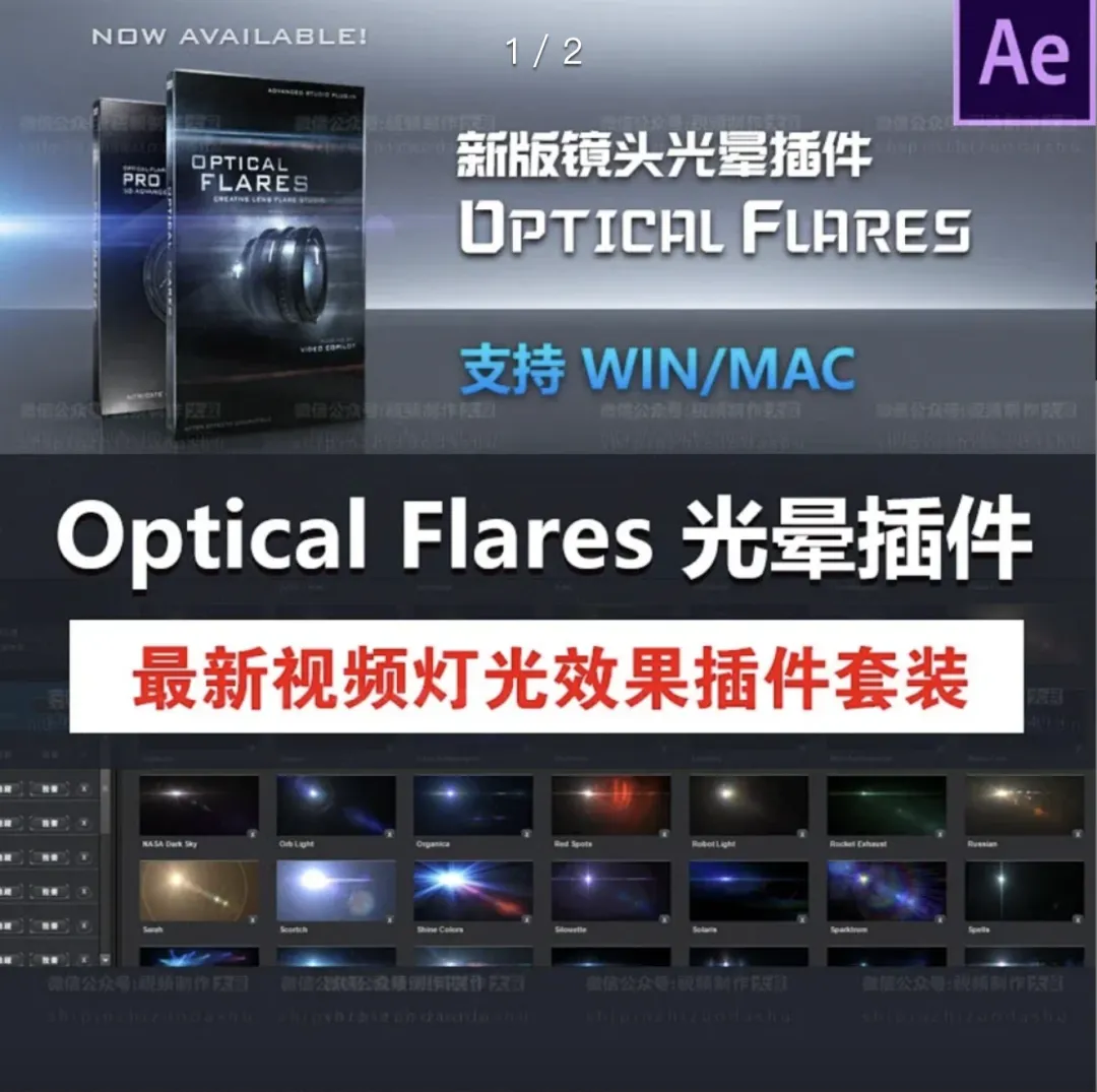 镜头光晕光效插件Optical Flaresv汉化版,支持Ae cc2026版本
